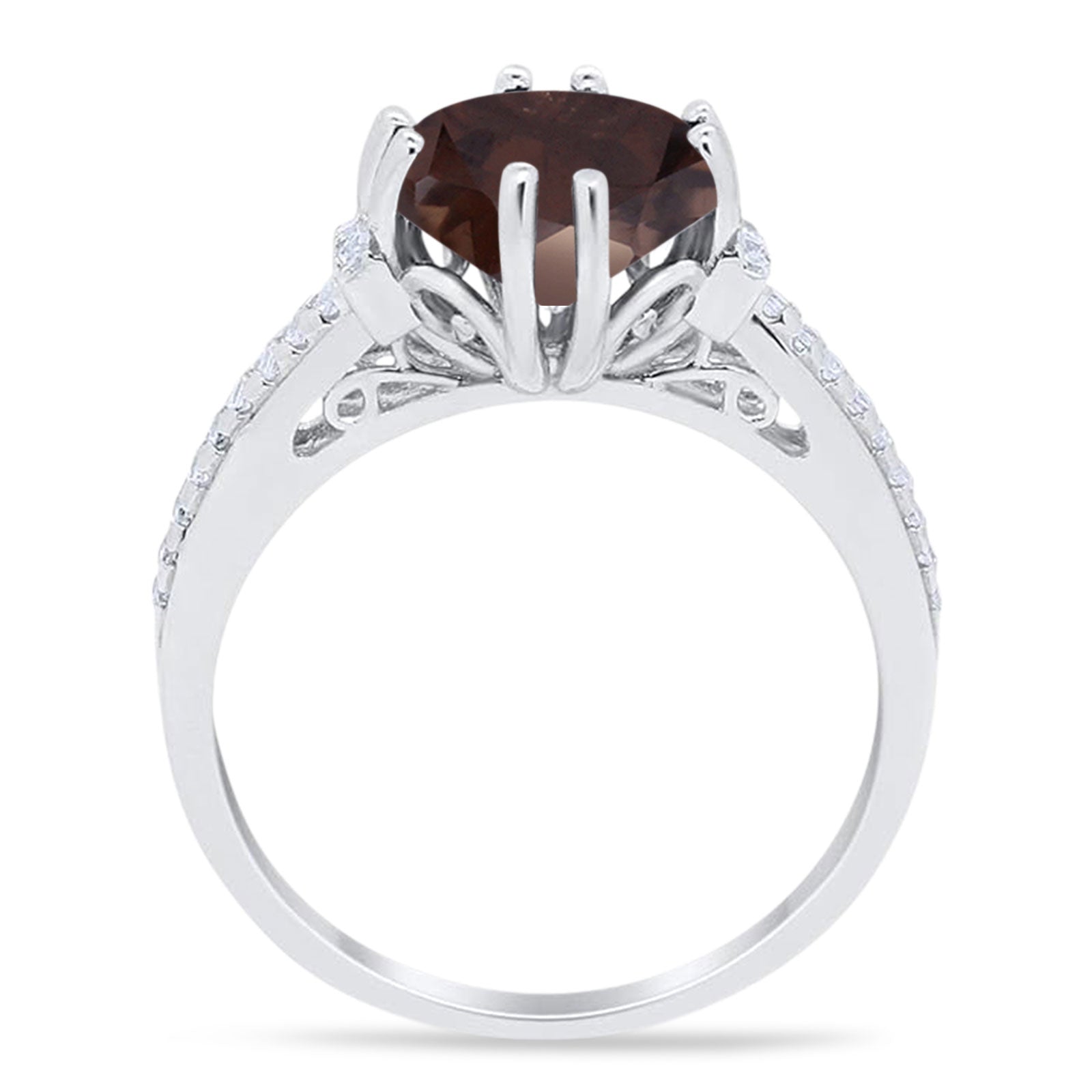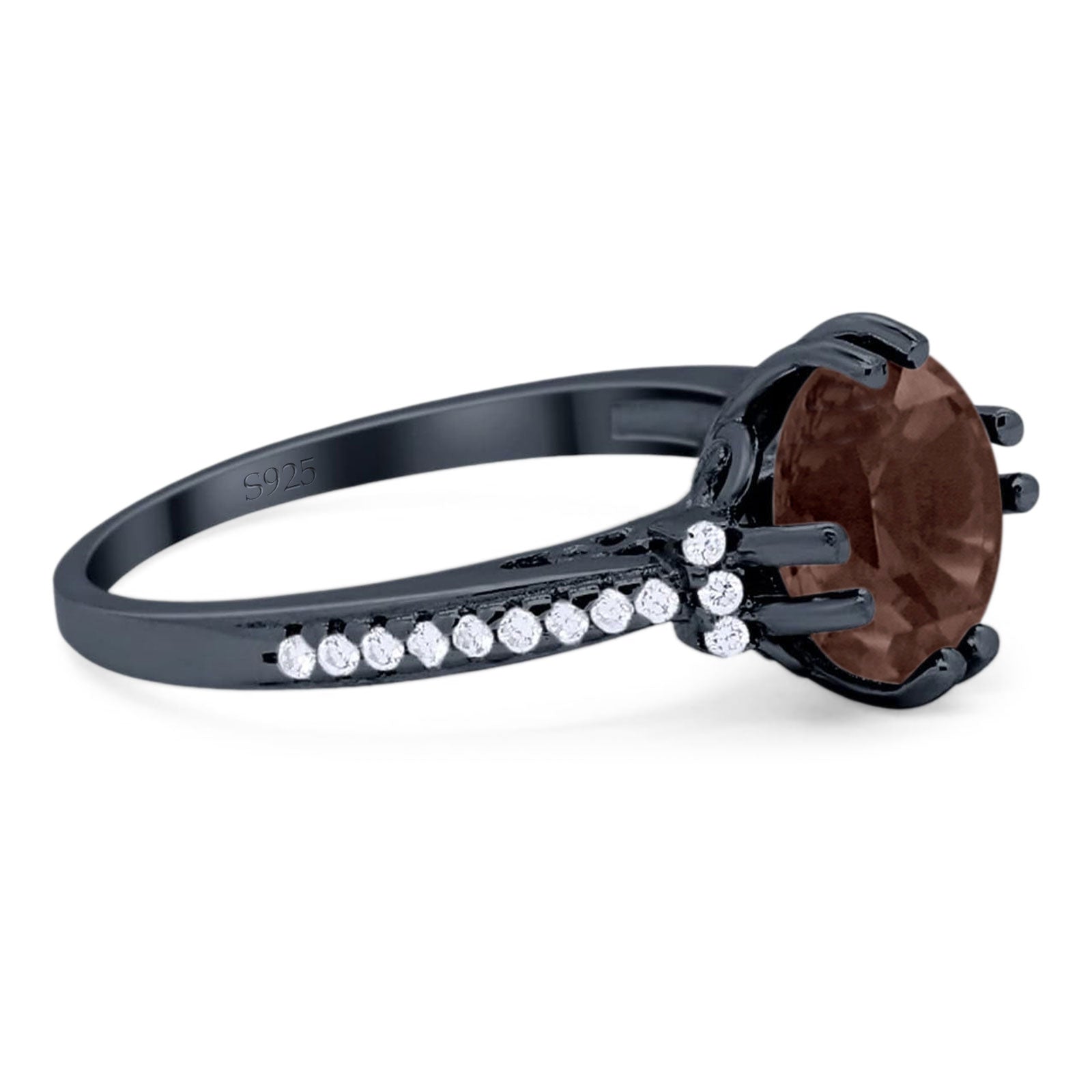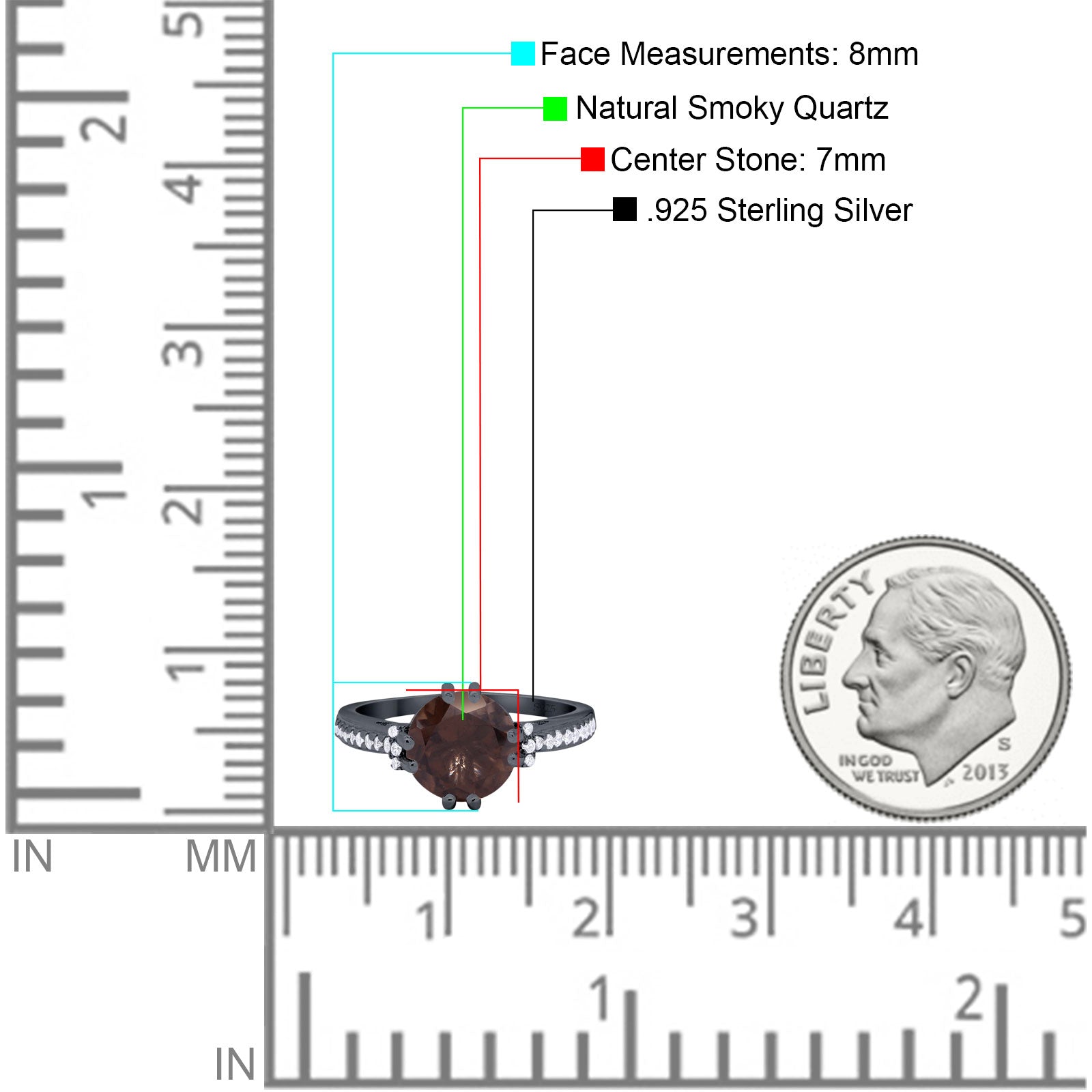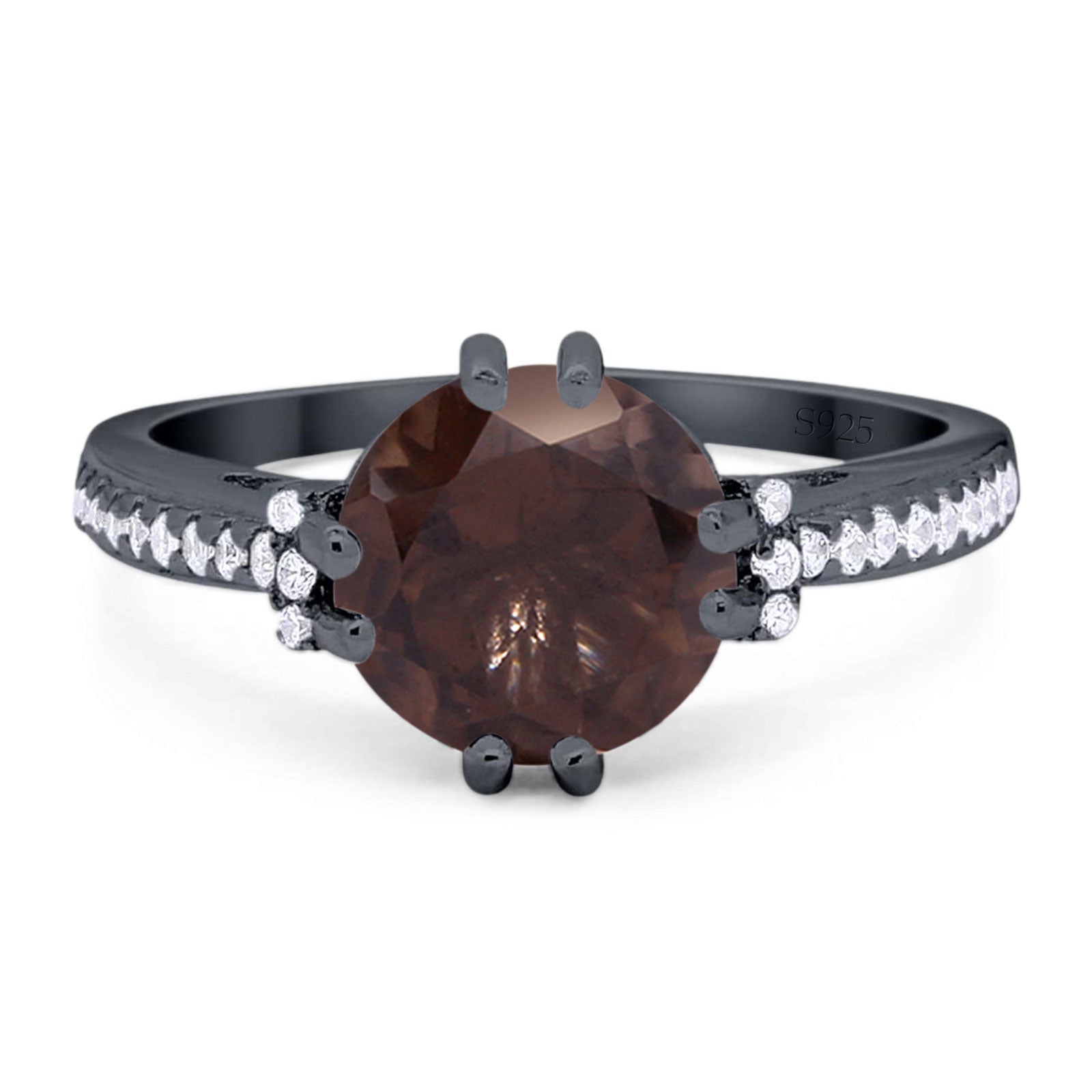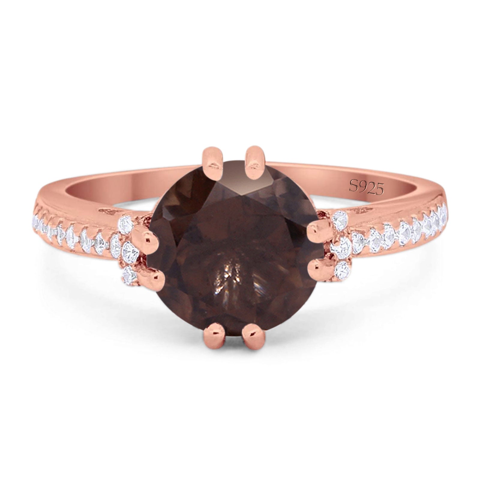 Vintage Style Round Natural Chocolate Smoky Quartz Solitaire Ring 925 Sterling Silver