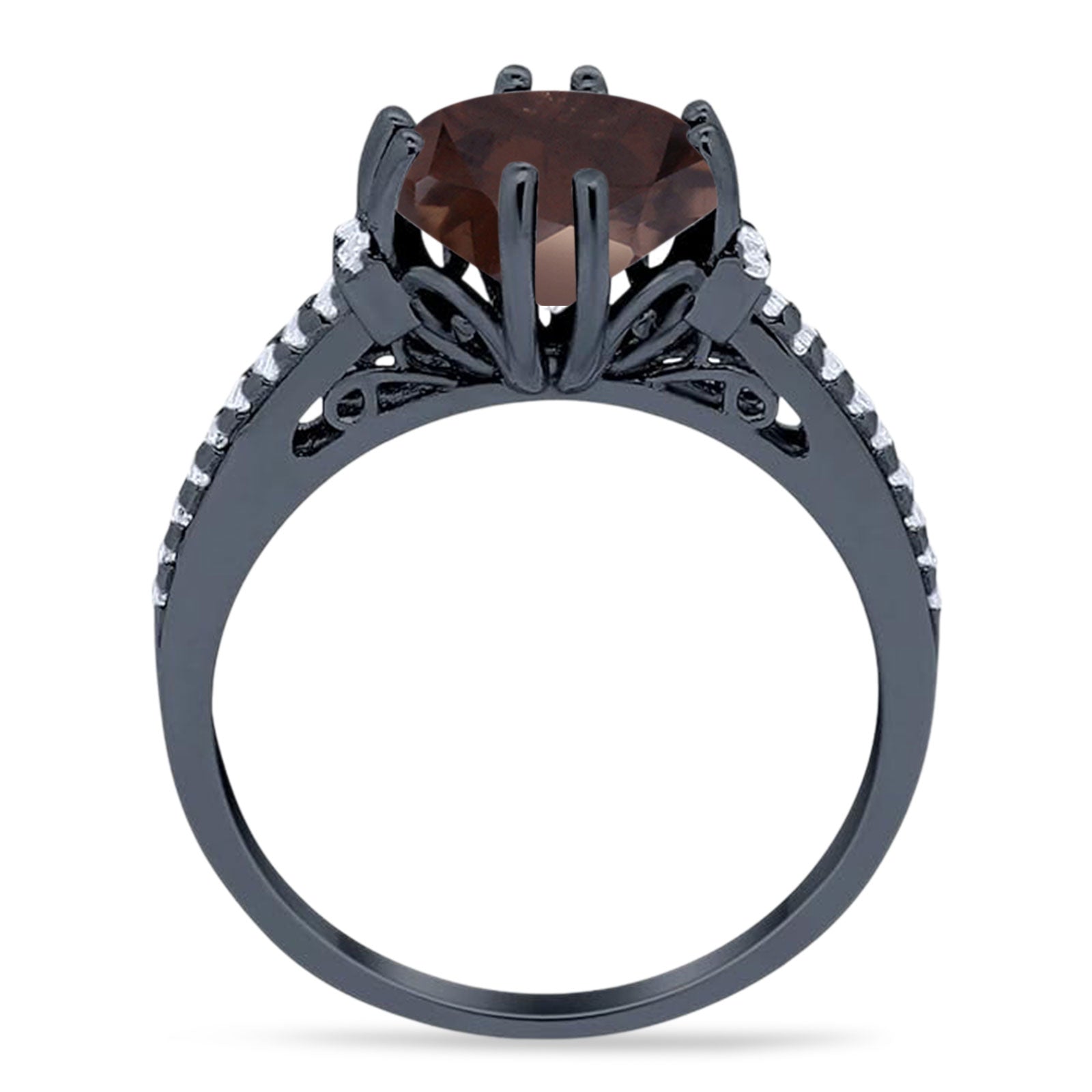 Natural Chocolate Smoky Quartz Black Tone Silver