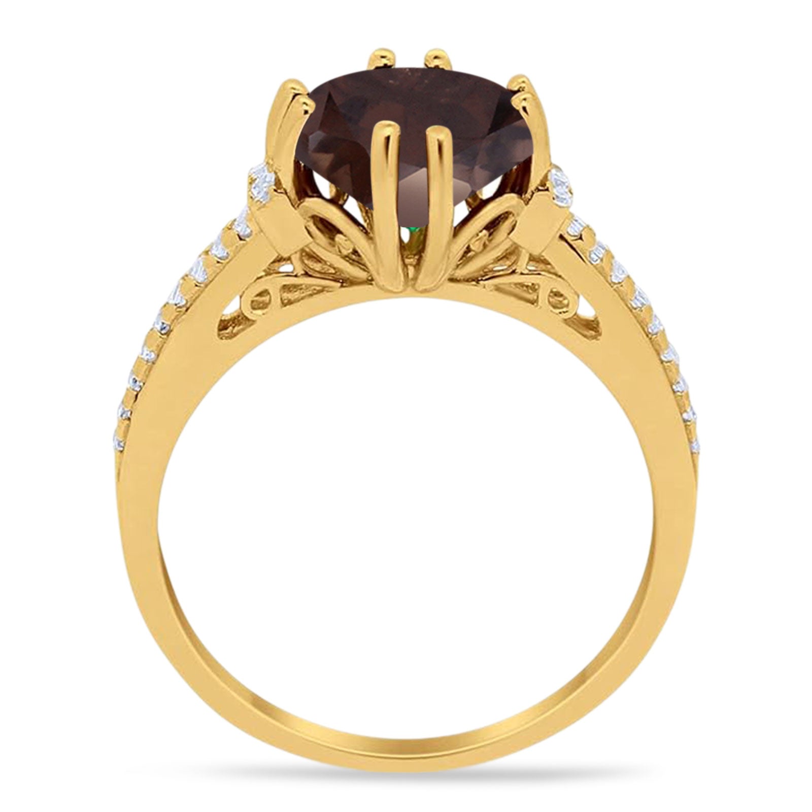 Natural Chocolate Smoky Quartz Yellow Tone Silver