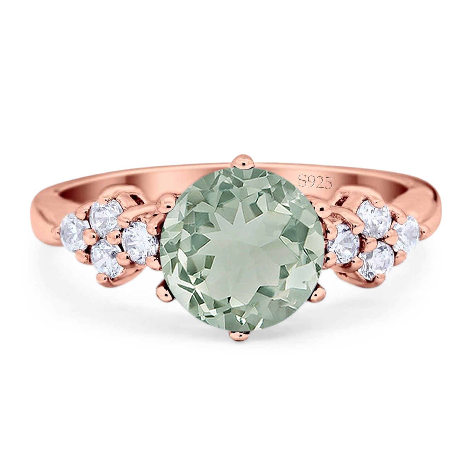 Natural Green Amethyst Prasiolite Rose Tone Silver