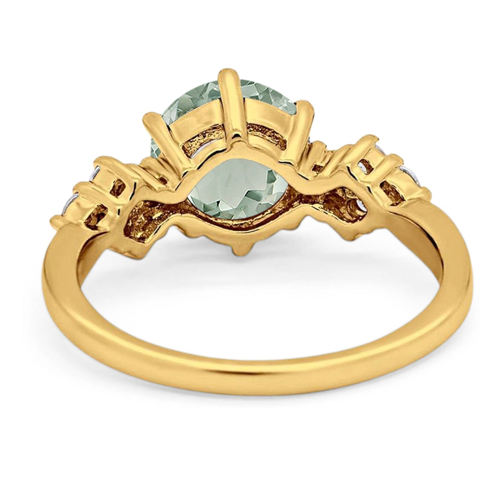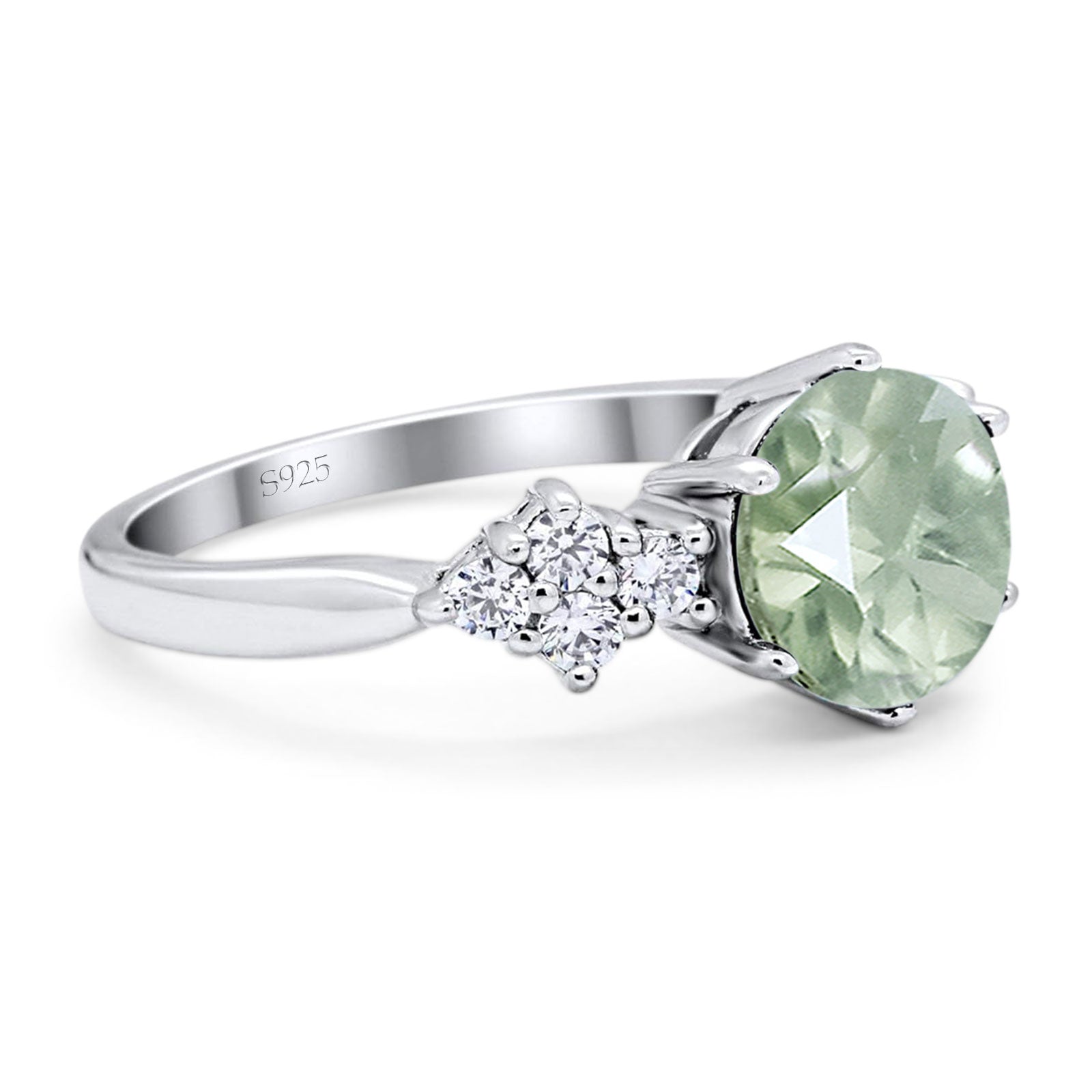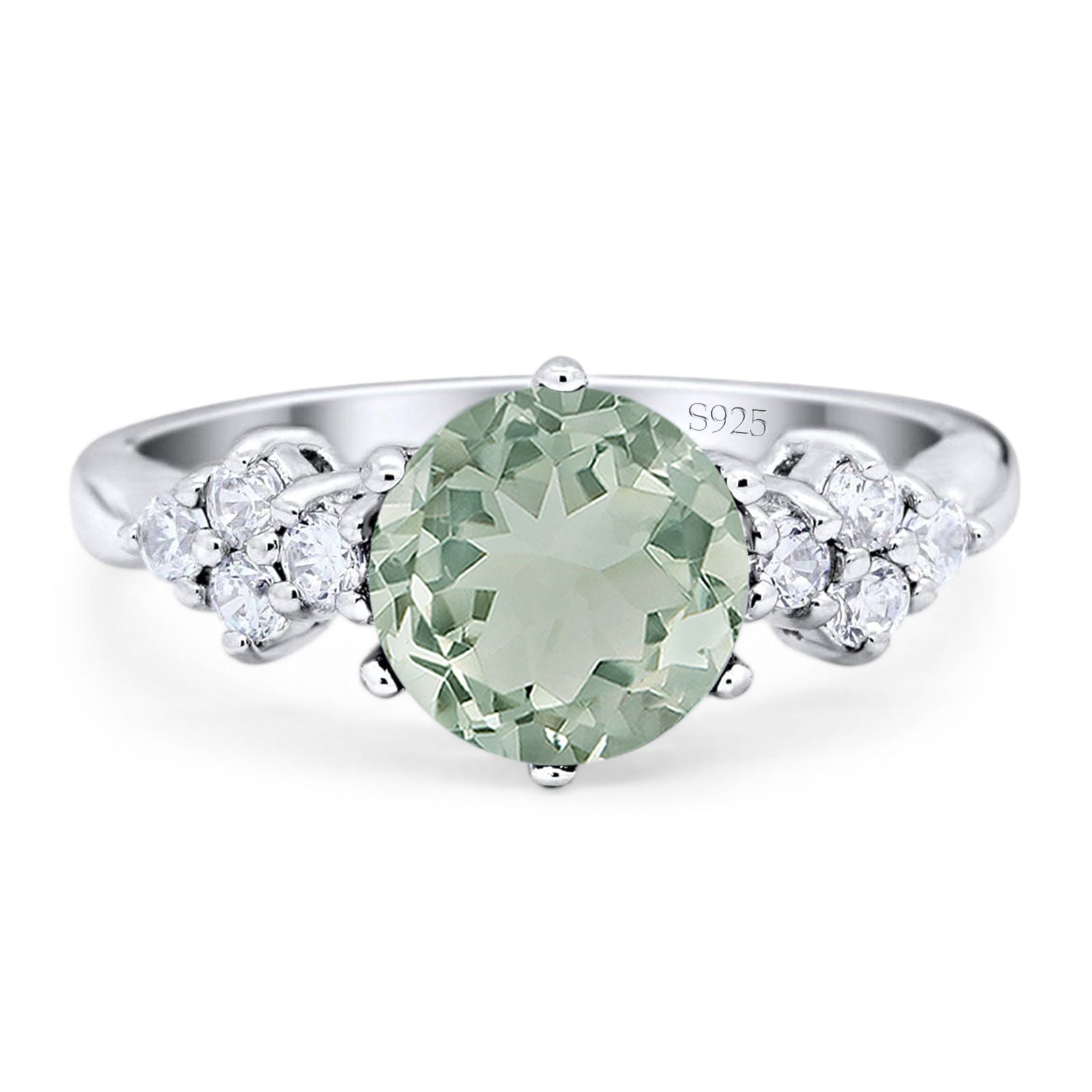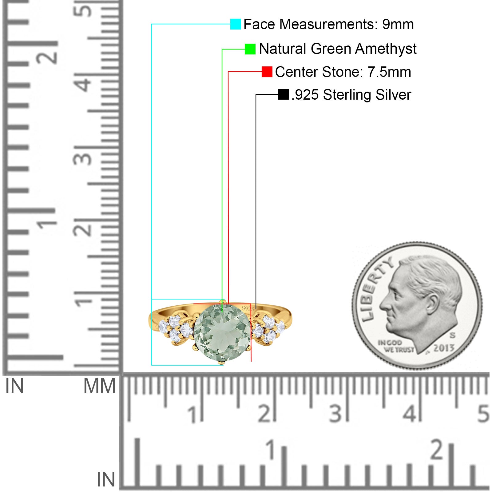 Vintage Style Round Natural Green Amethyst Prasiolite Cluster Ring 925 Sterling Silver