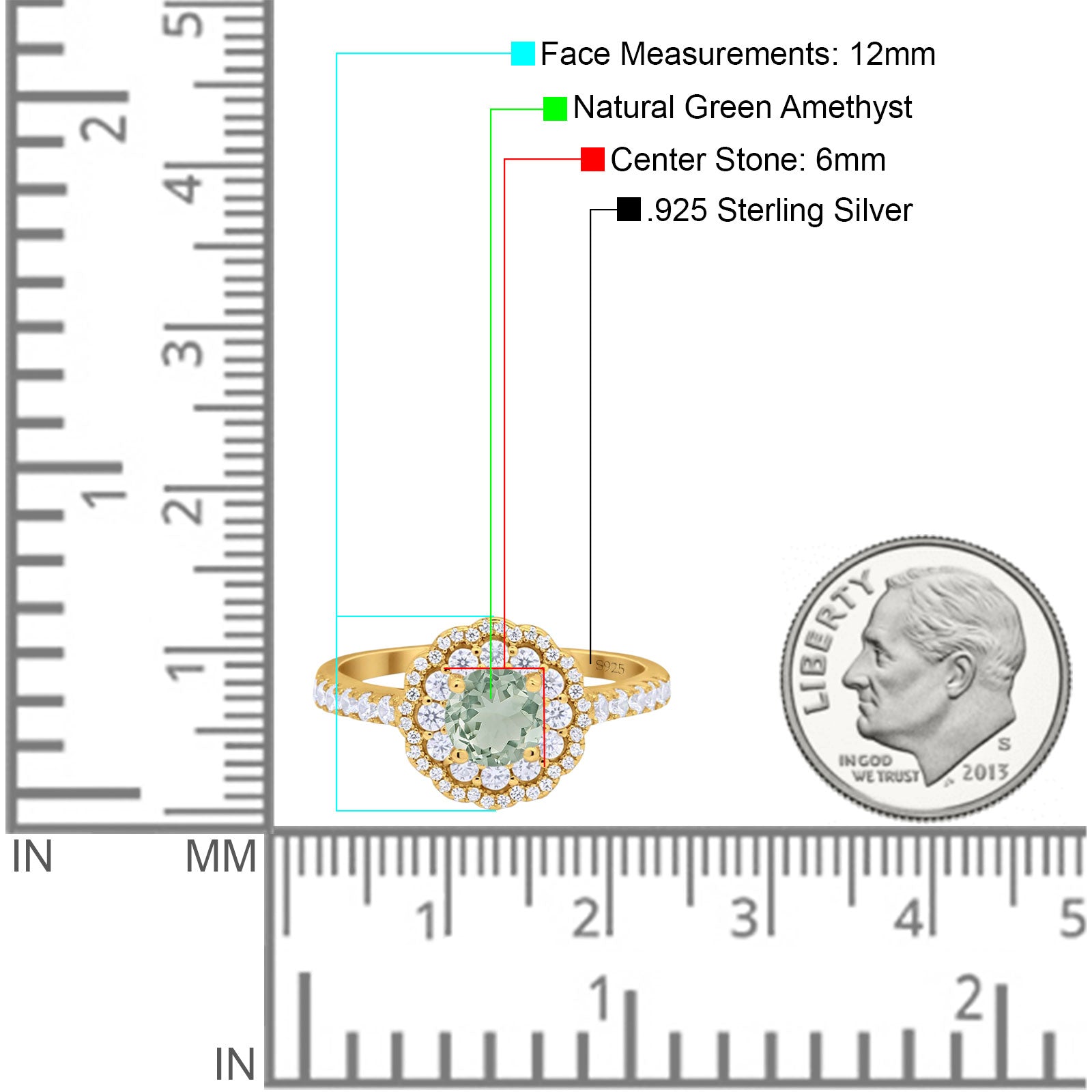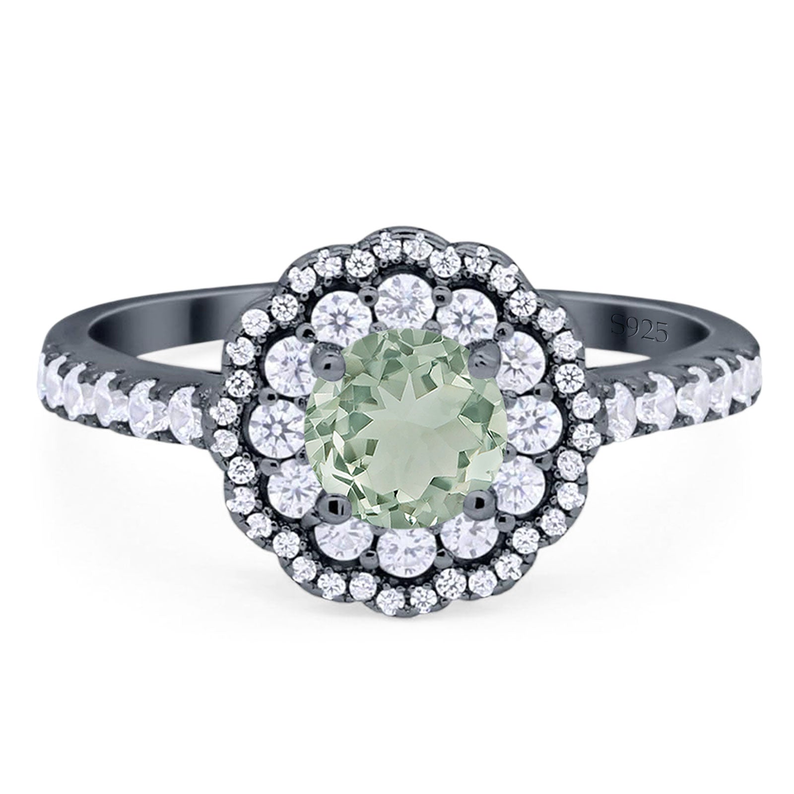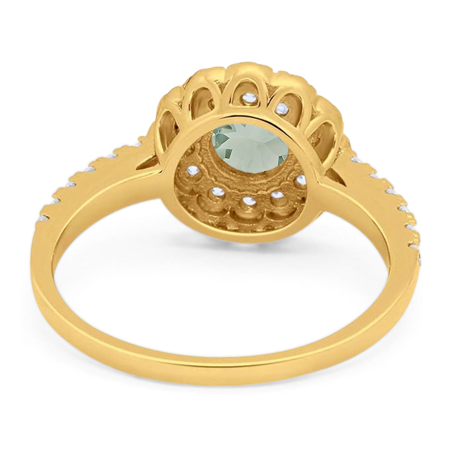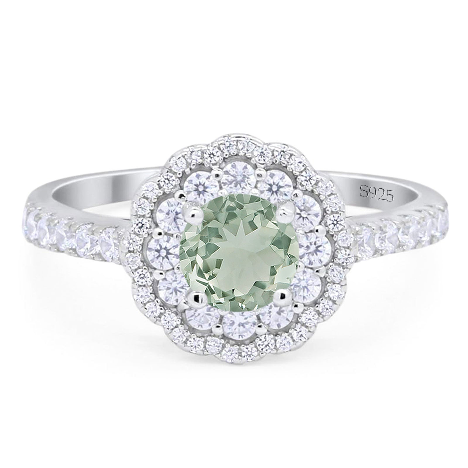 Vintage Style Round Natural Green Amethyst Prasiolite Halo Flower Ring 925 Sterling Silver