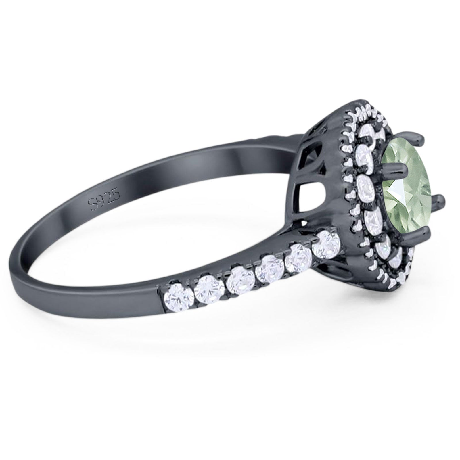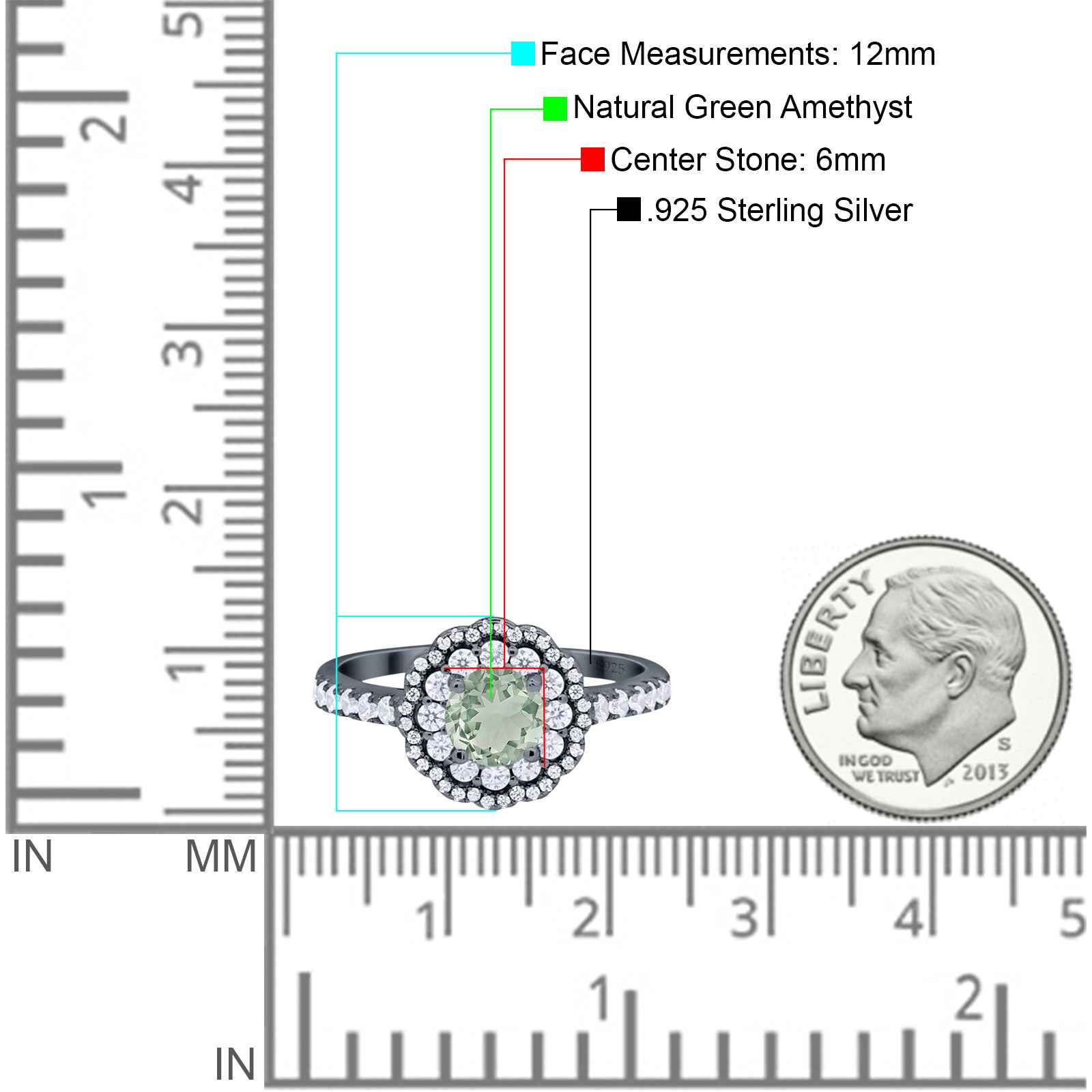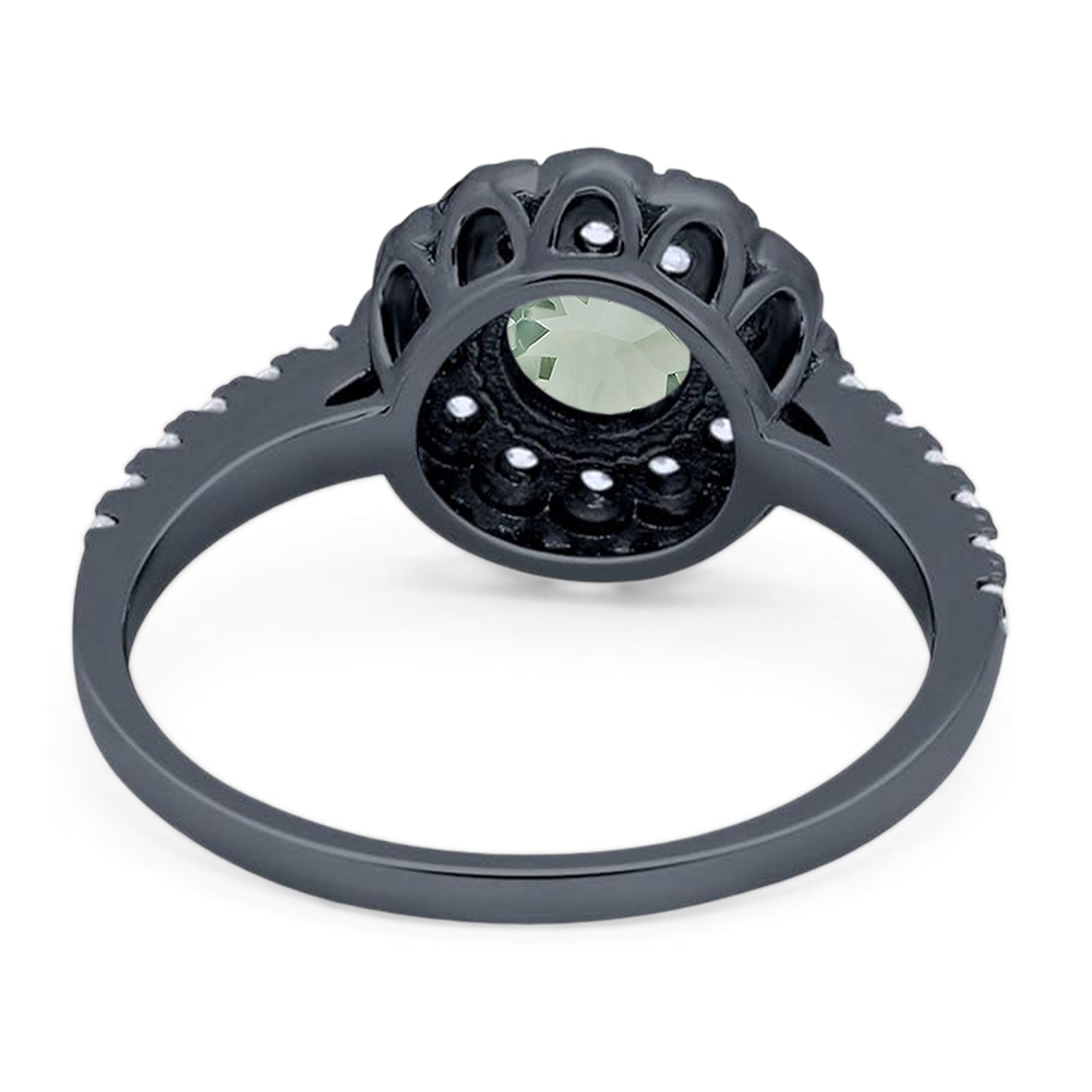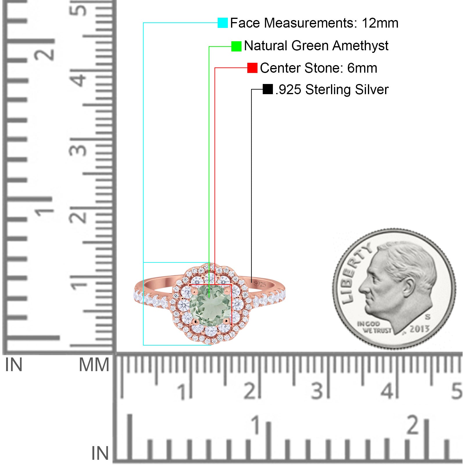 Vintage Style Round Natural Green Amethyst Prasiolite Halo Flower Ring 925 Sterling Silver