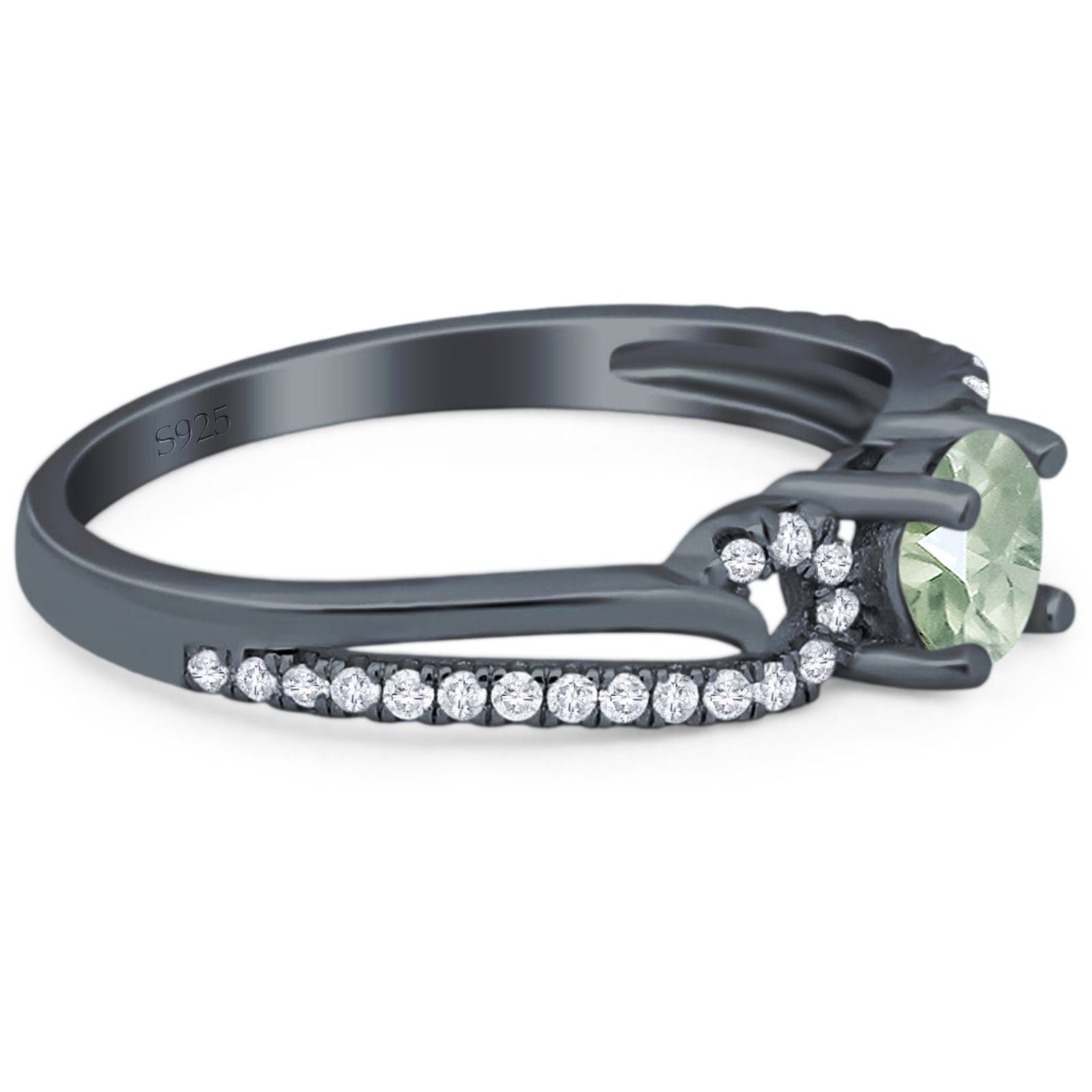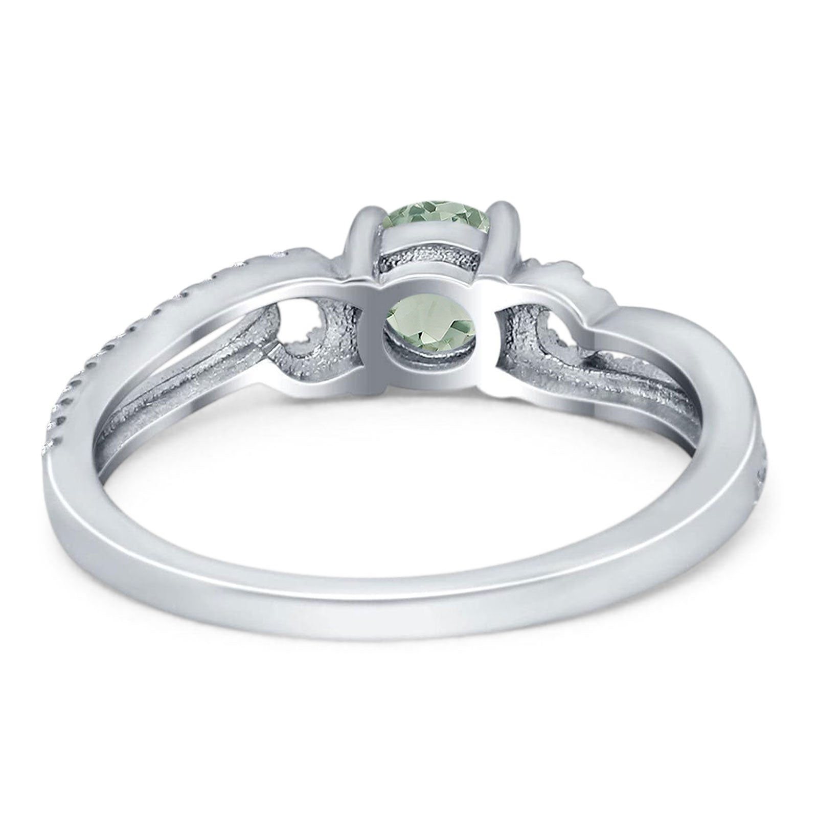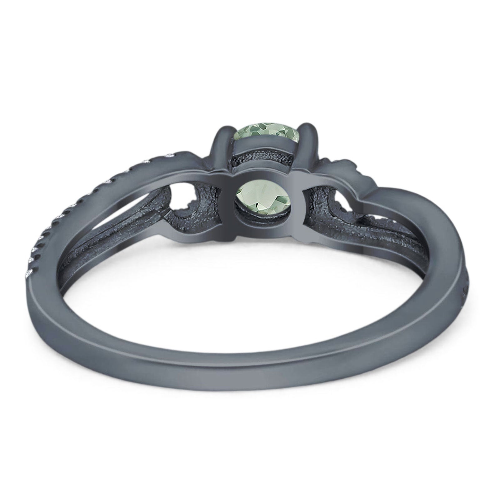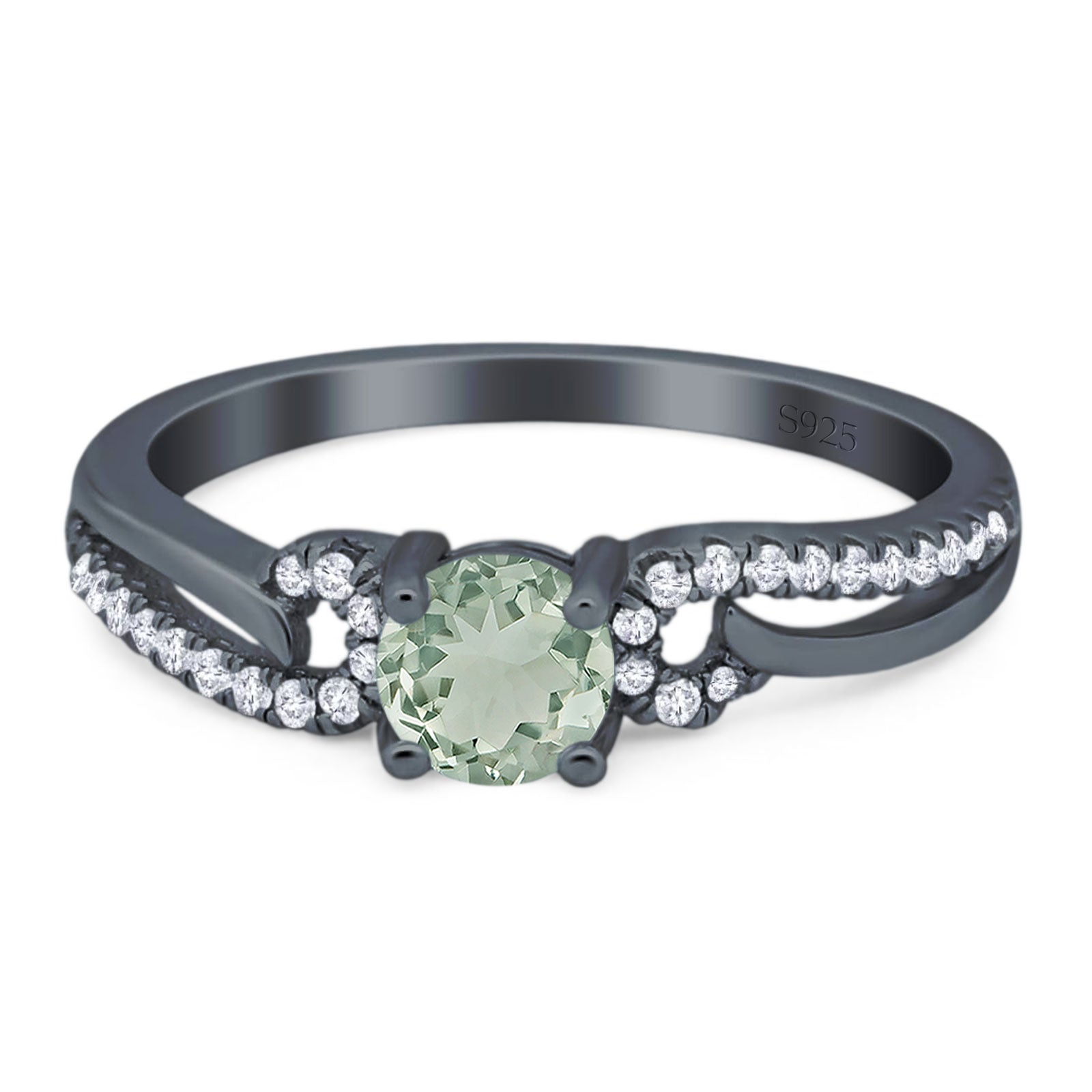 Vintage Style Round Natural Green Amethyst Prasiolite Wedding Ring 925 Sterling Silver