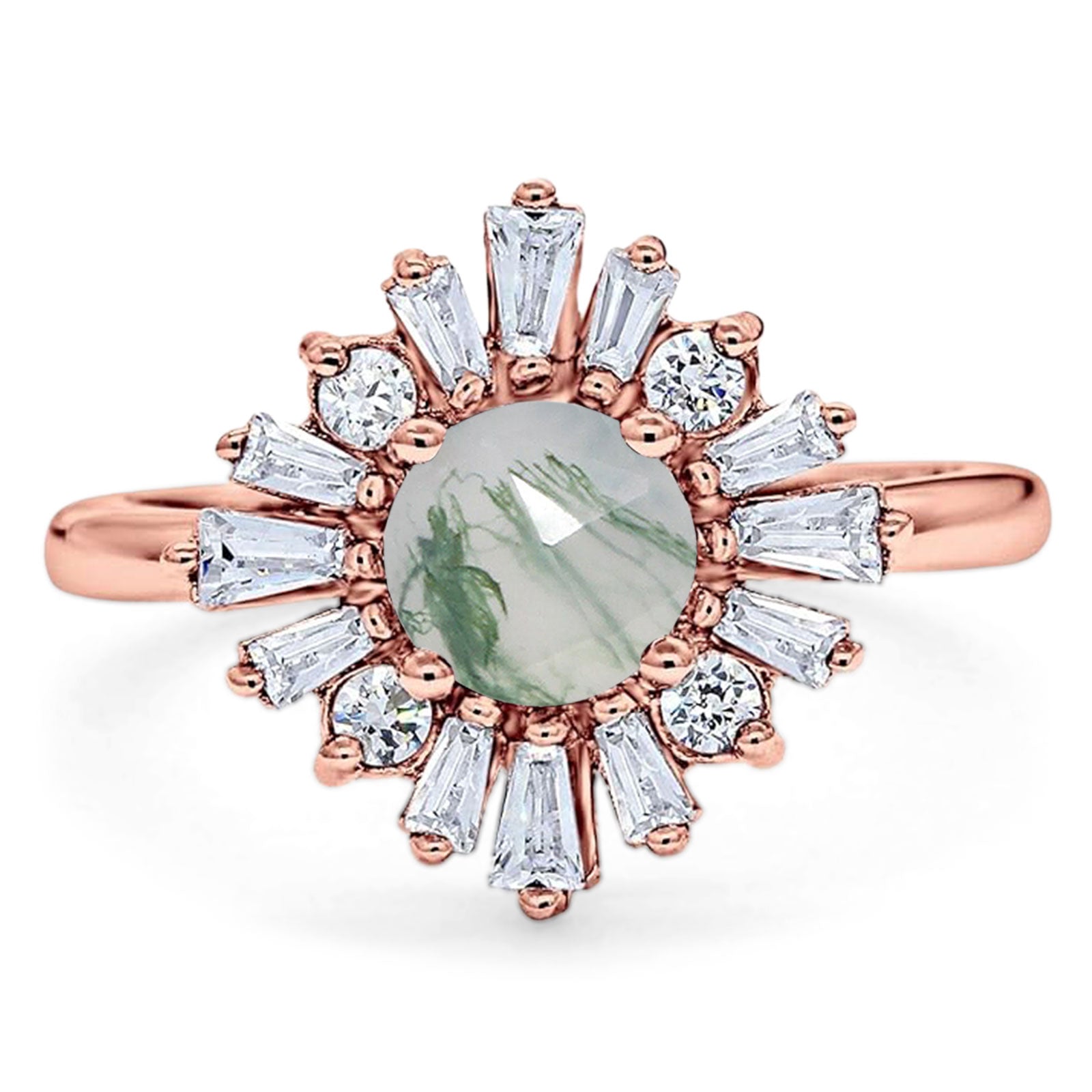 Natural Green Moss Agate Engagement Ring