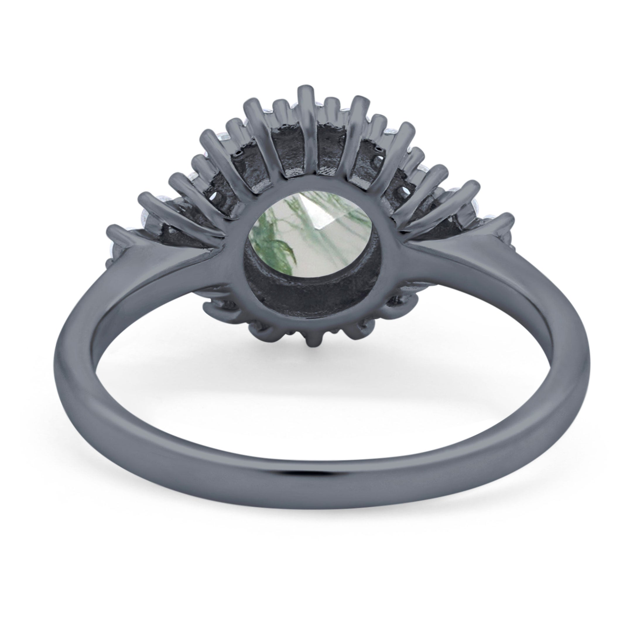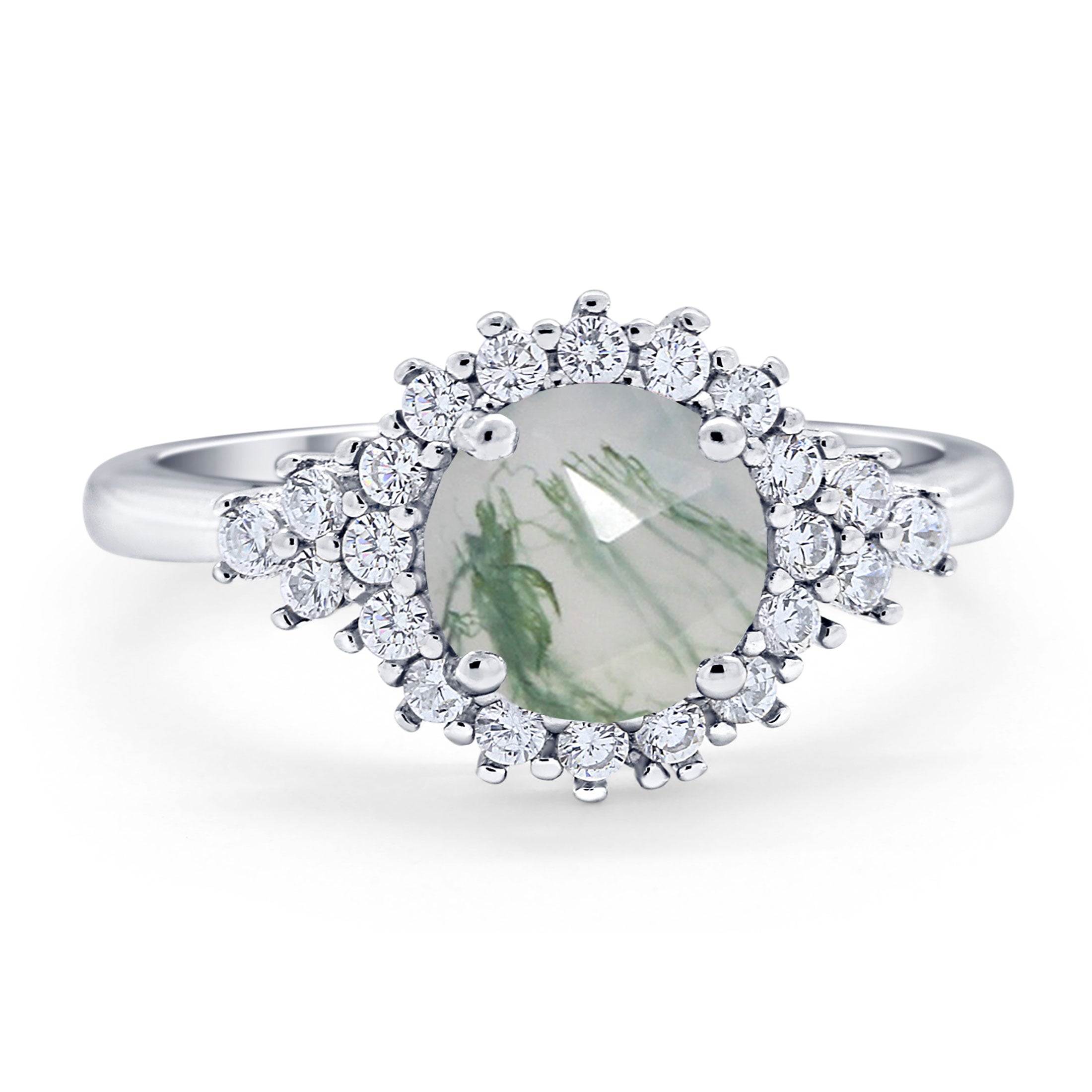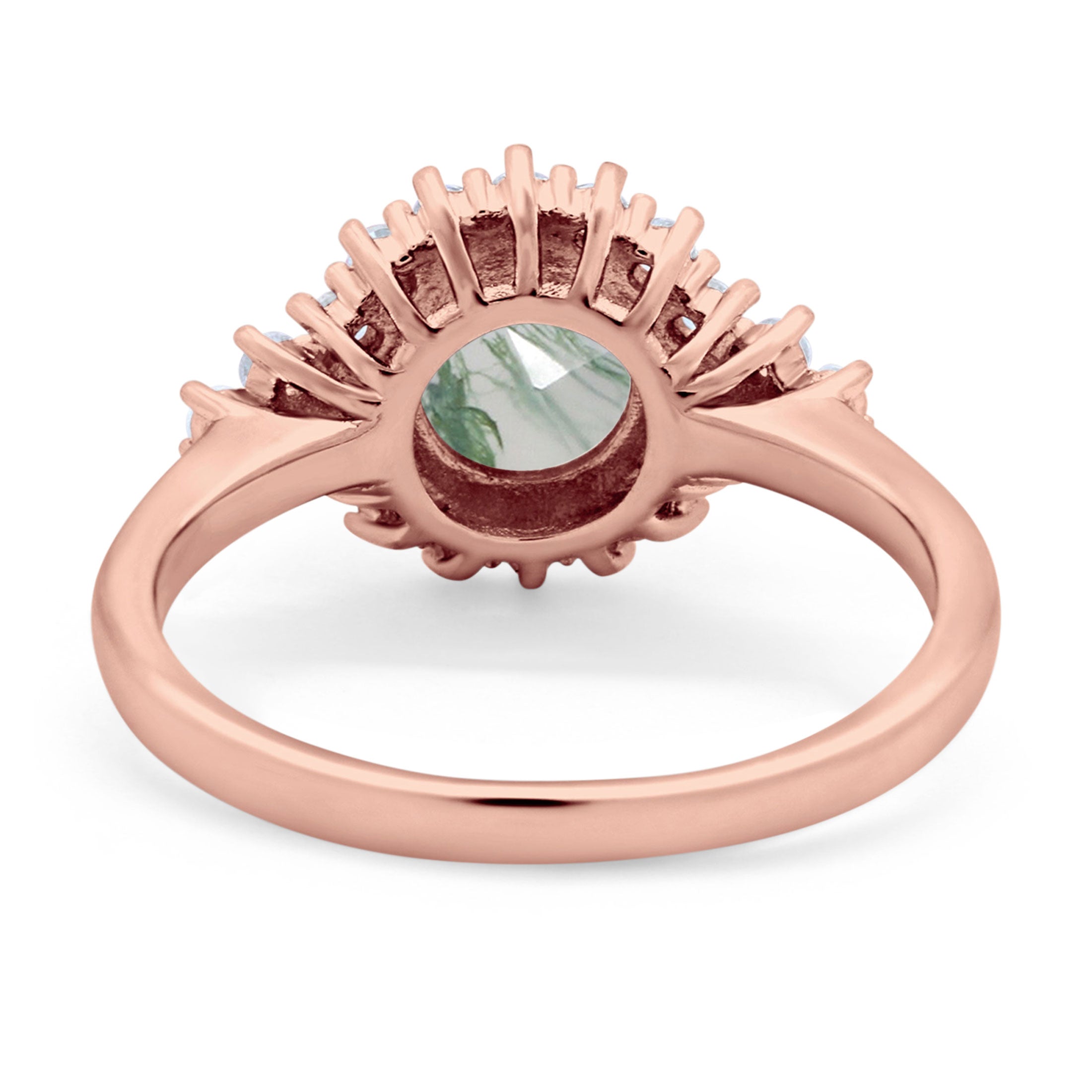 Vintage Style Round Natural Green Moss Agate Flower Ring 925 Sterling Silver