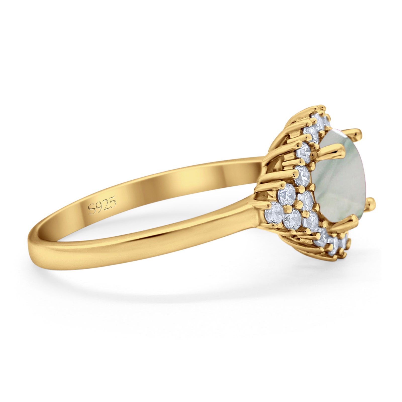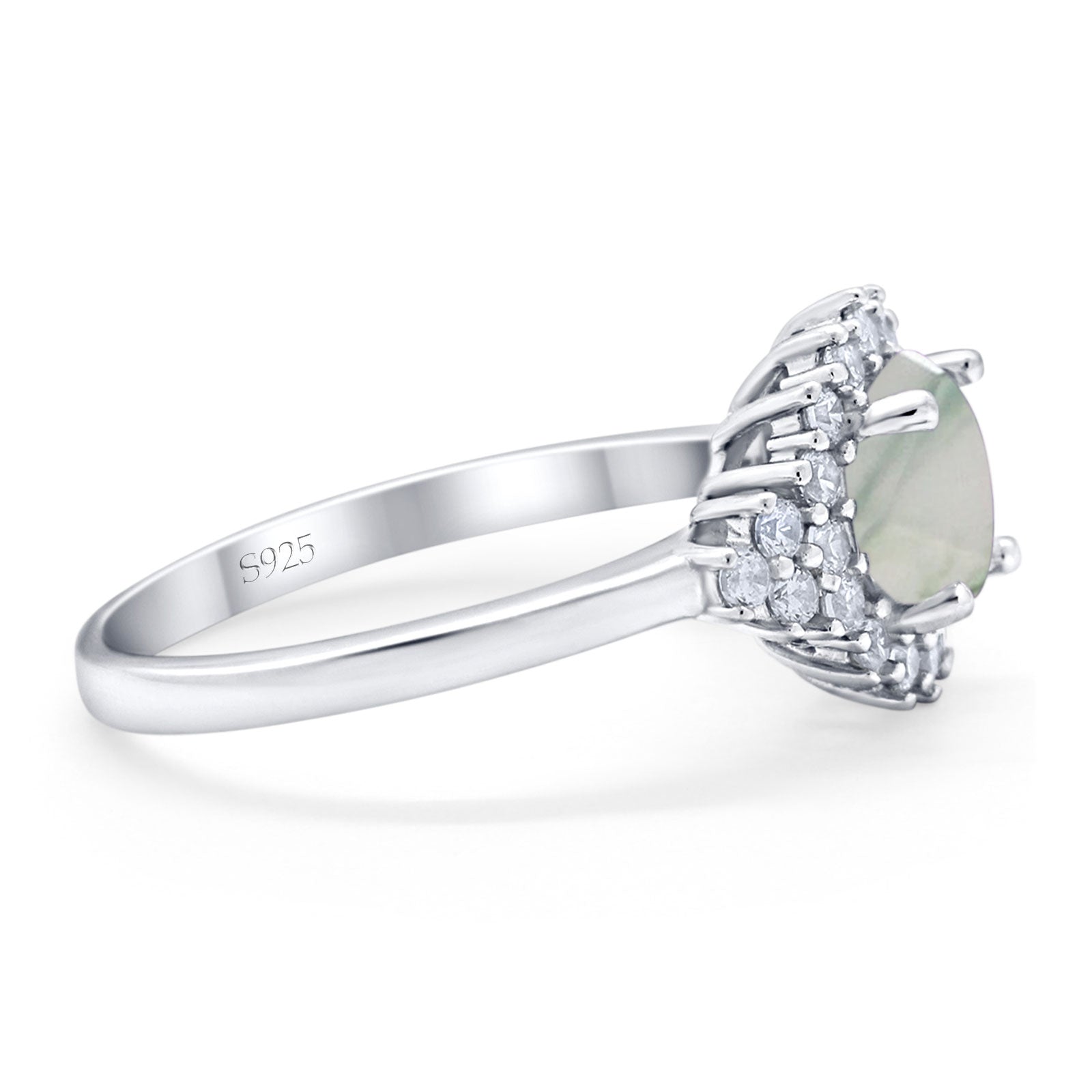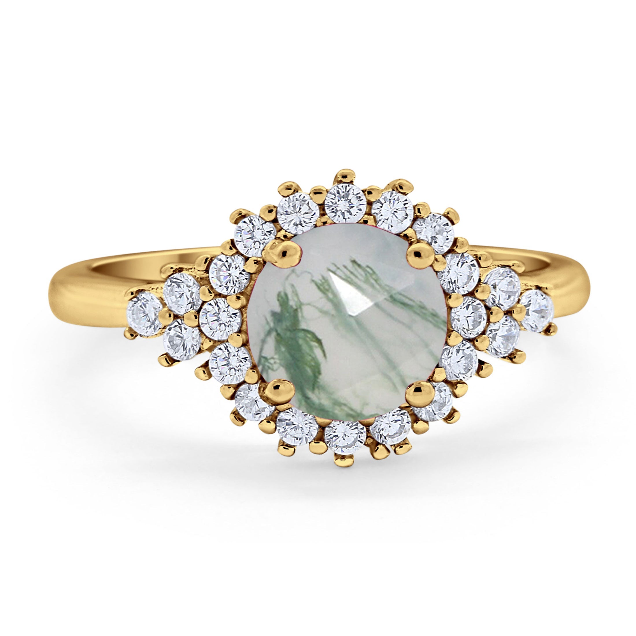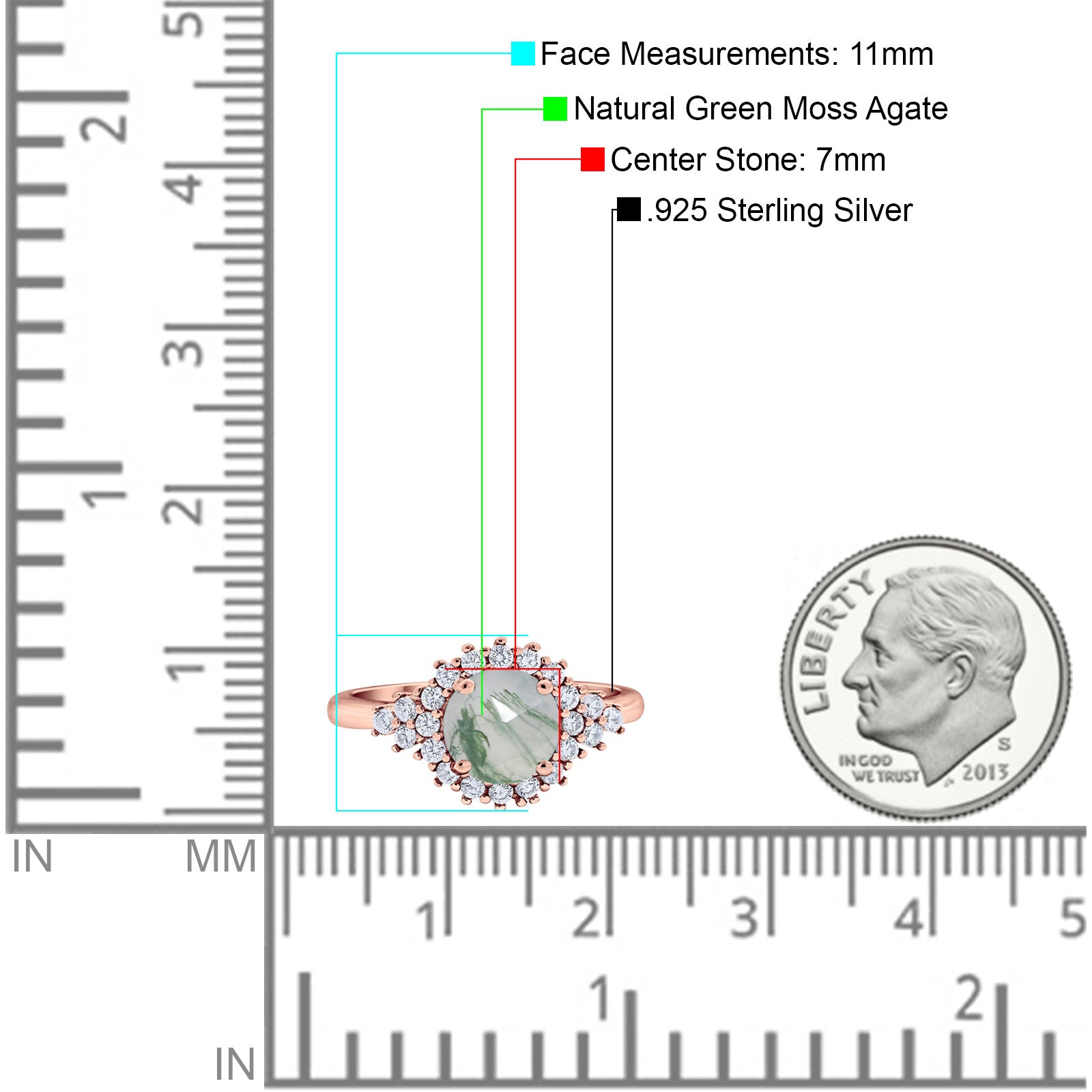 Vintage Style Round Natural Green Moss Agate Flower Ring 925 Sterling Silver