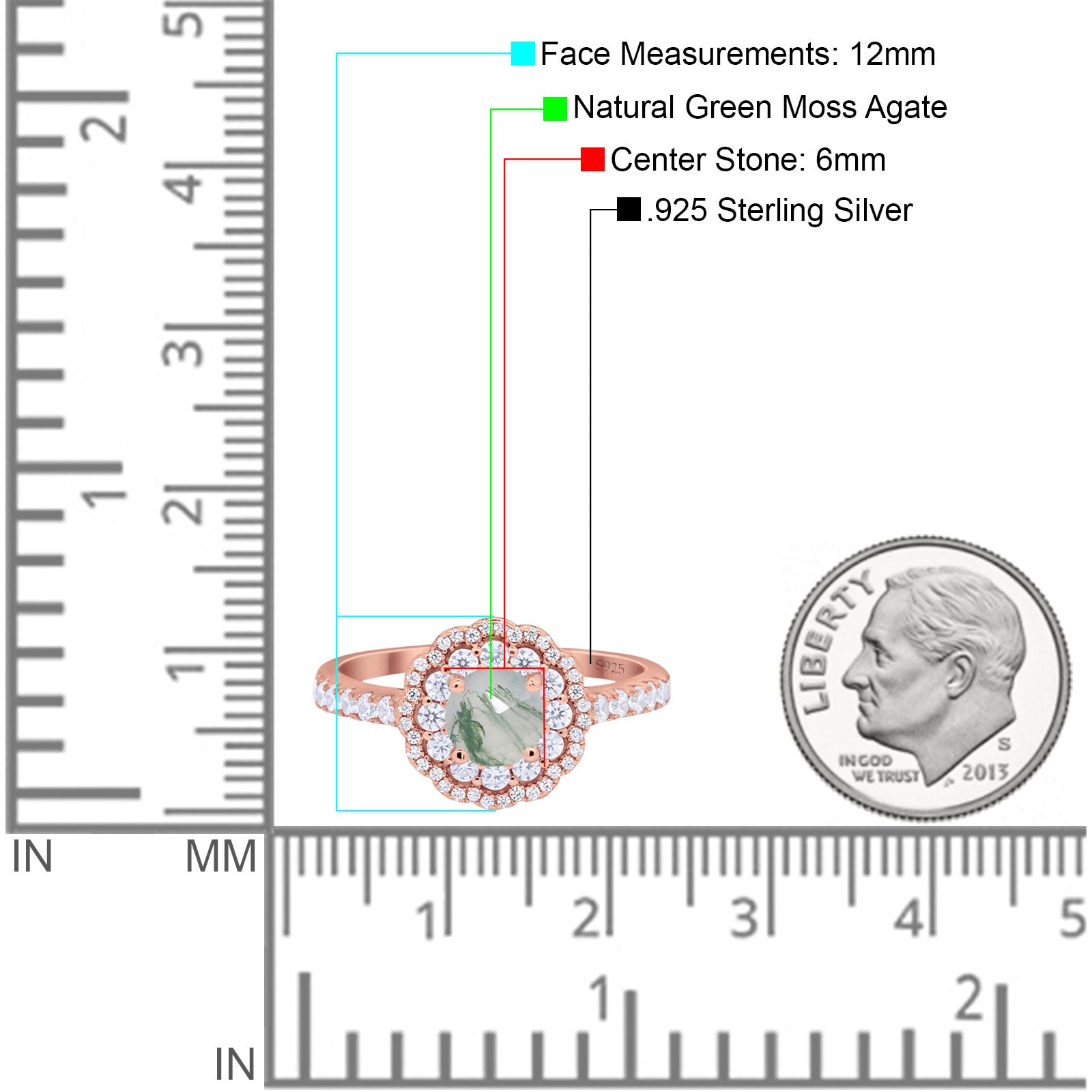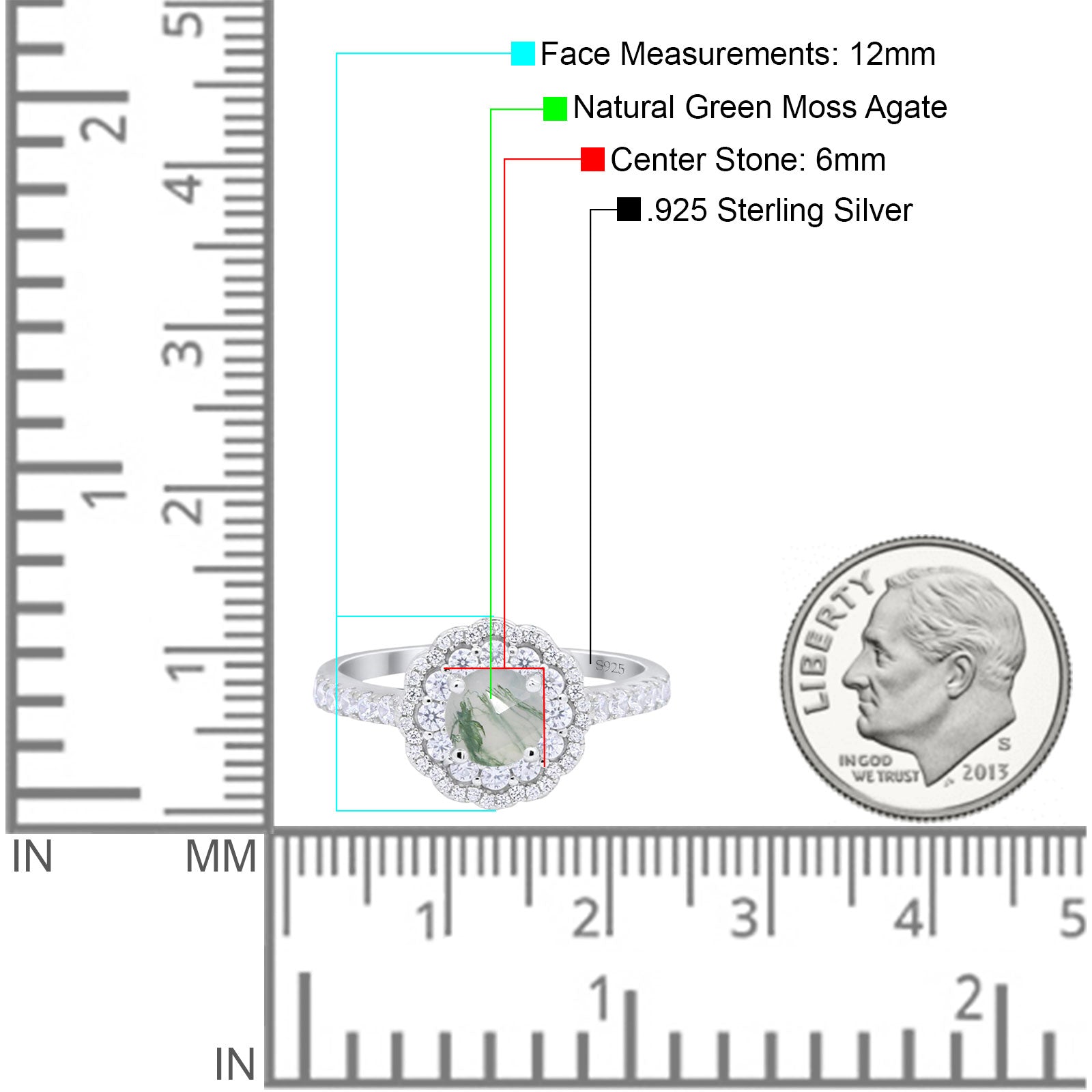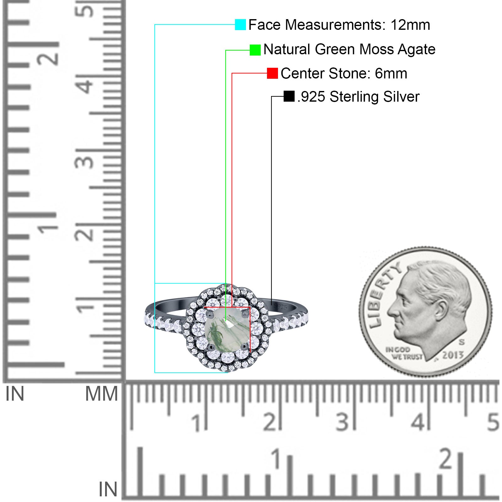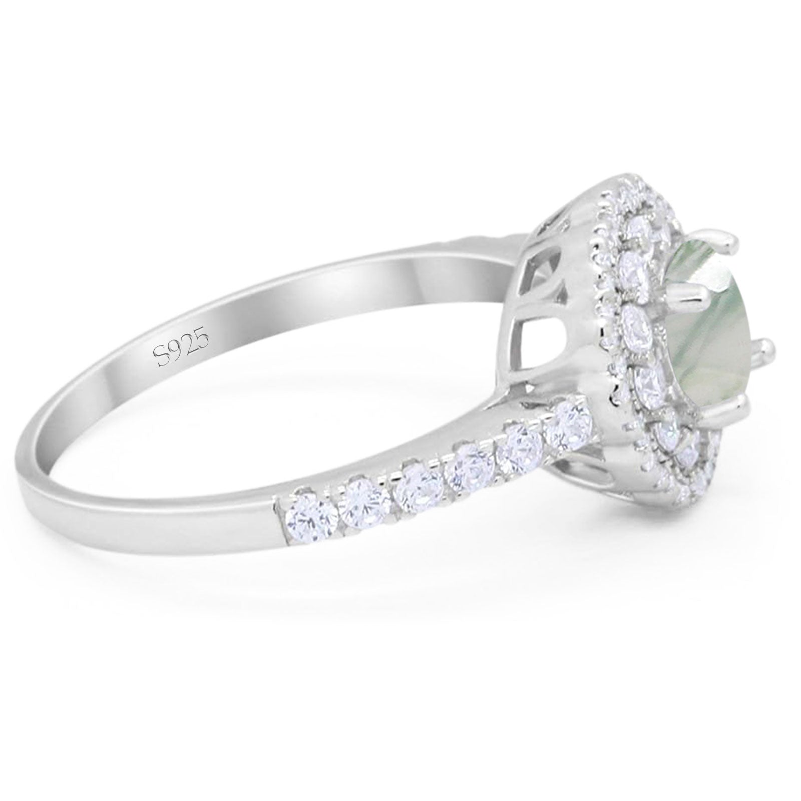 Vintage Style Round Natural Green Moss Agate Halo Flower Ring 925 Sterling Silver