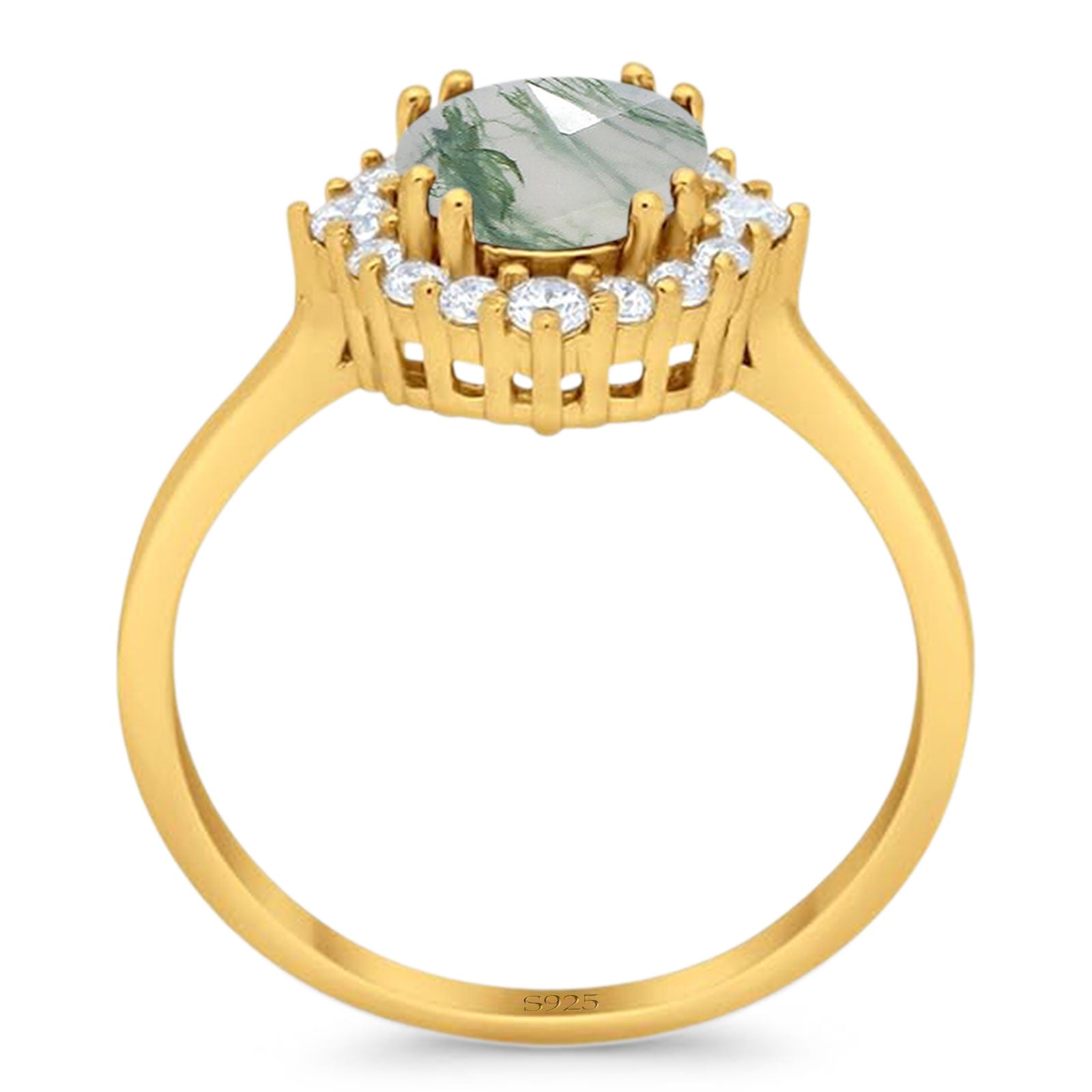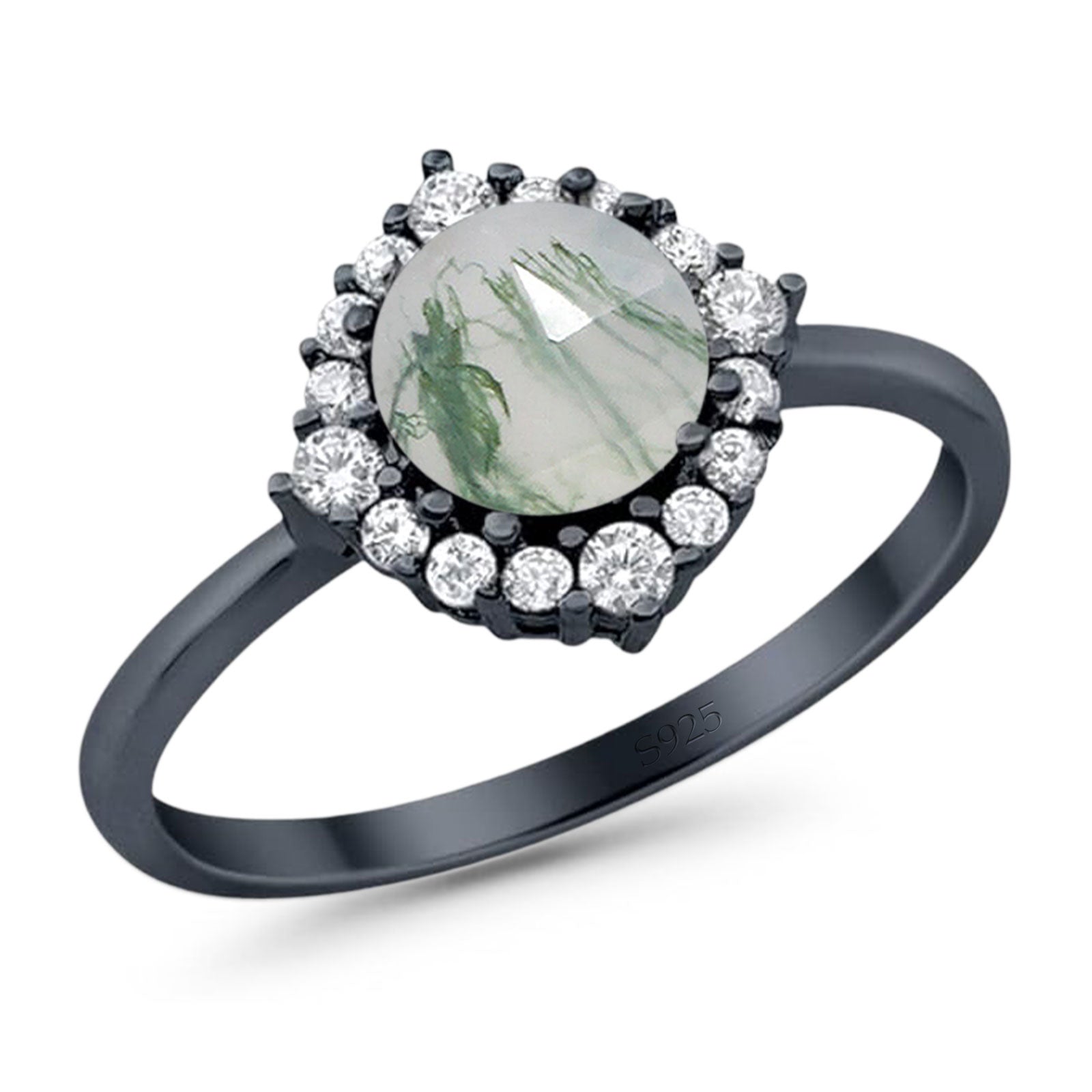 Vintage Style Round Natural Green Moss Agate Halo Ring 925 Sterling Silver