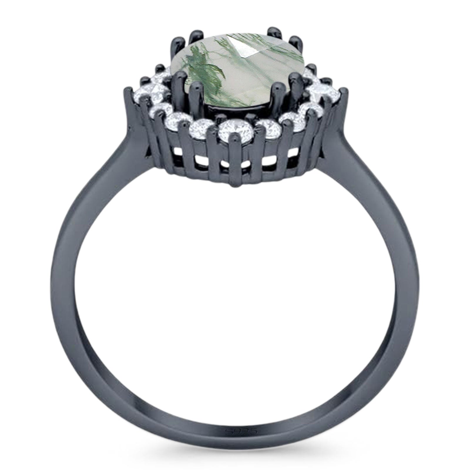 Natural Green Moss Agate Black Tone Silver