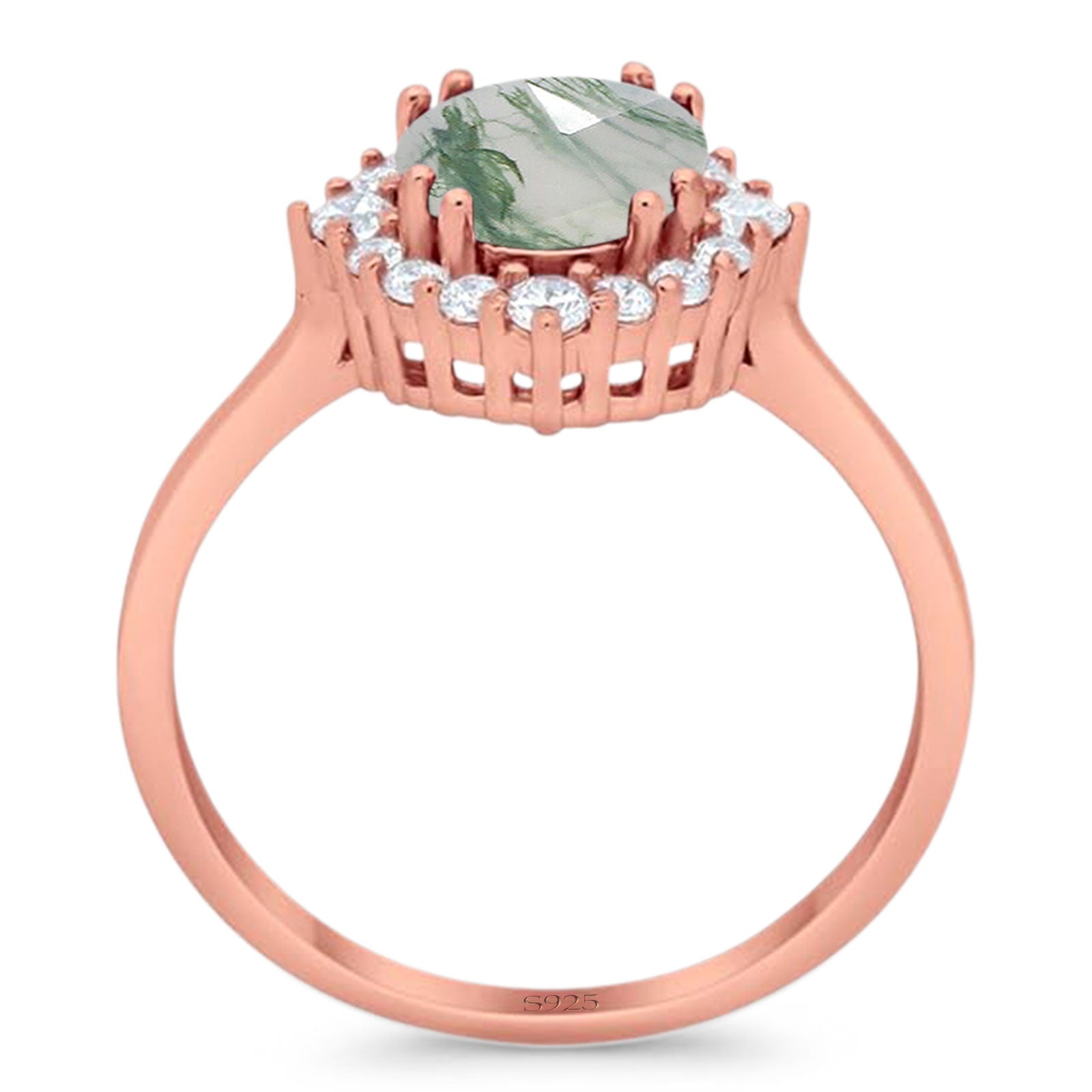 Natural Green Moss Agate Rose Tone Silver