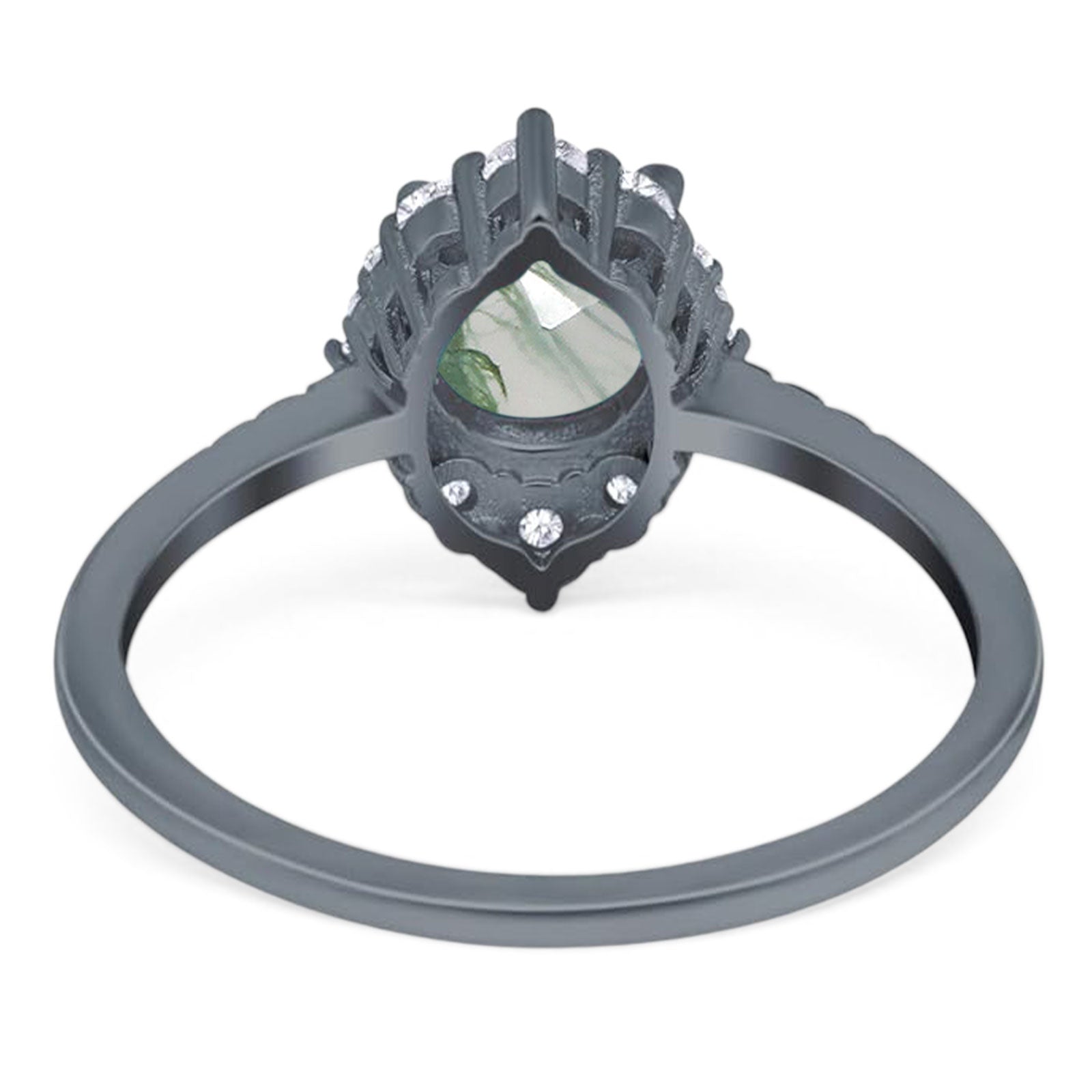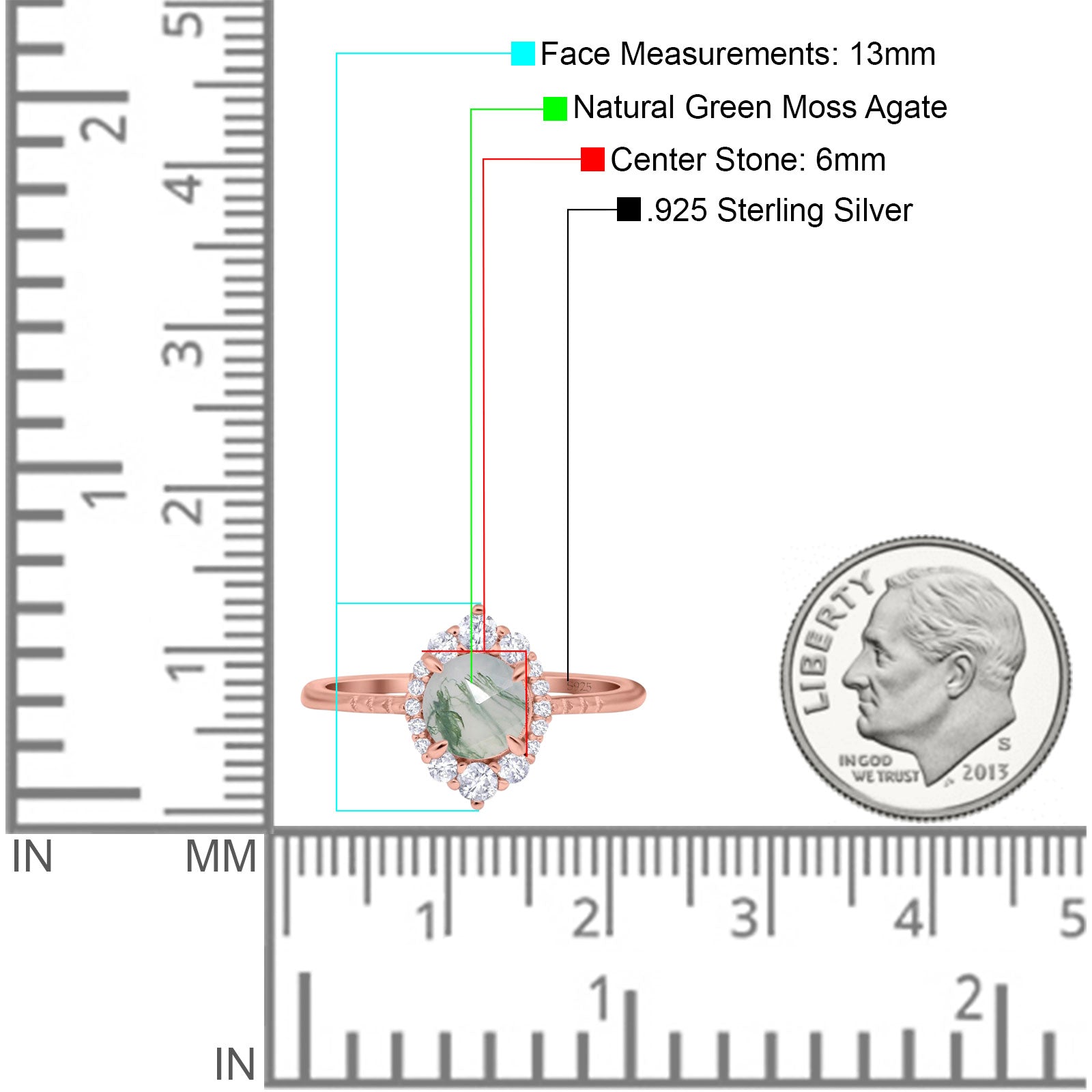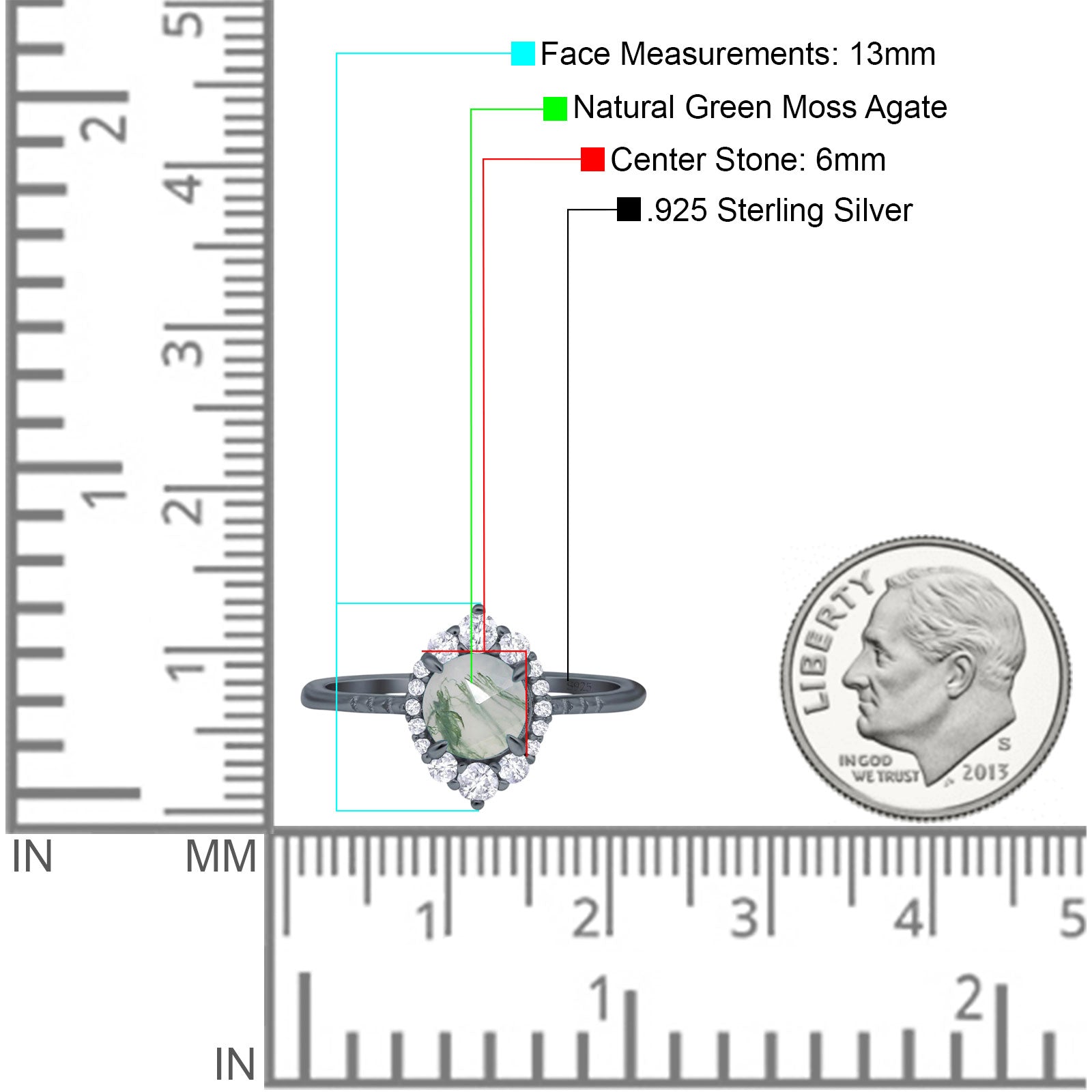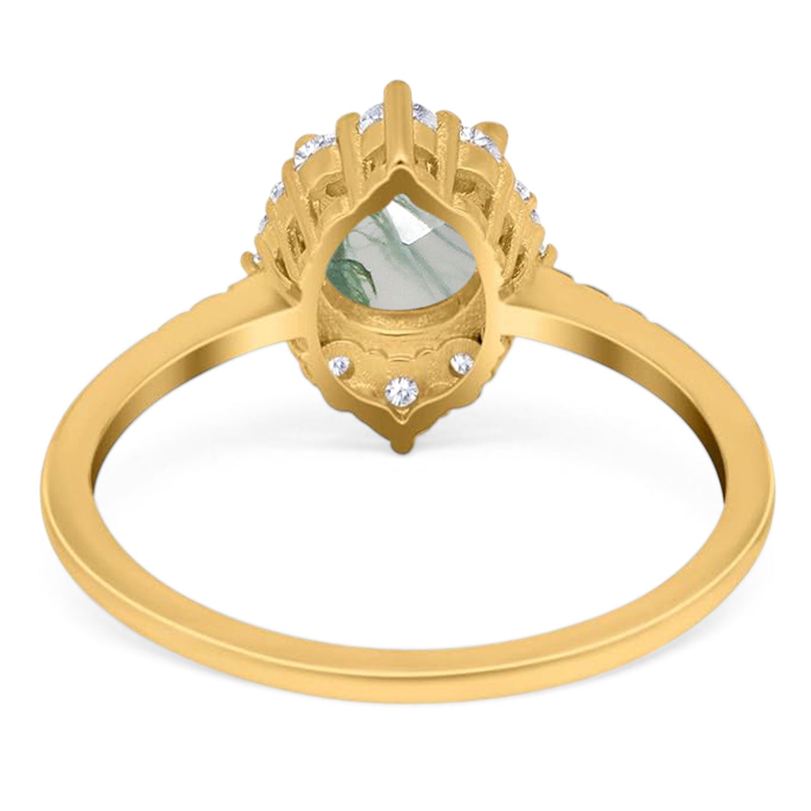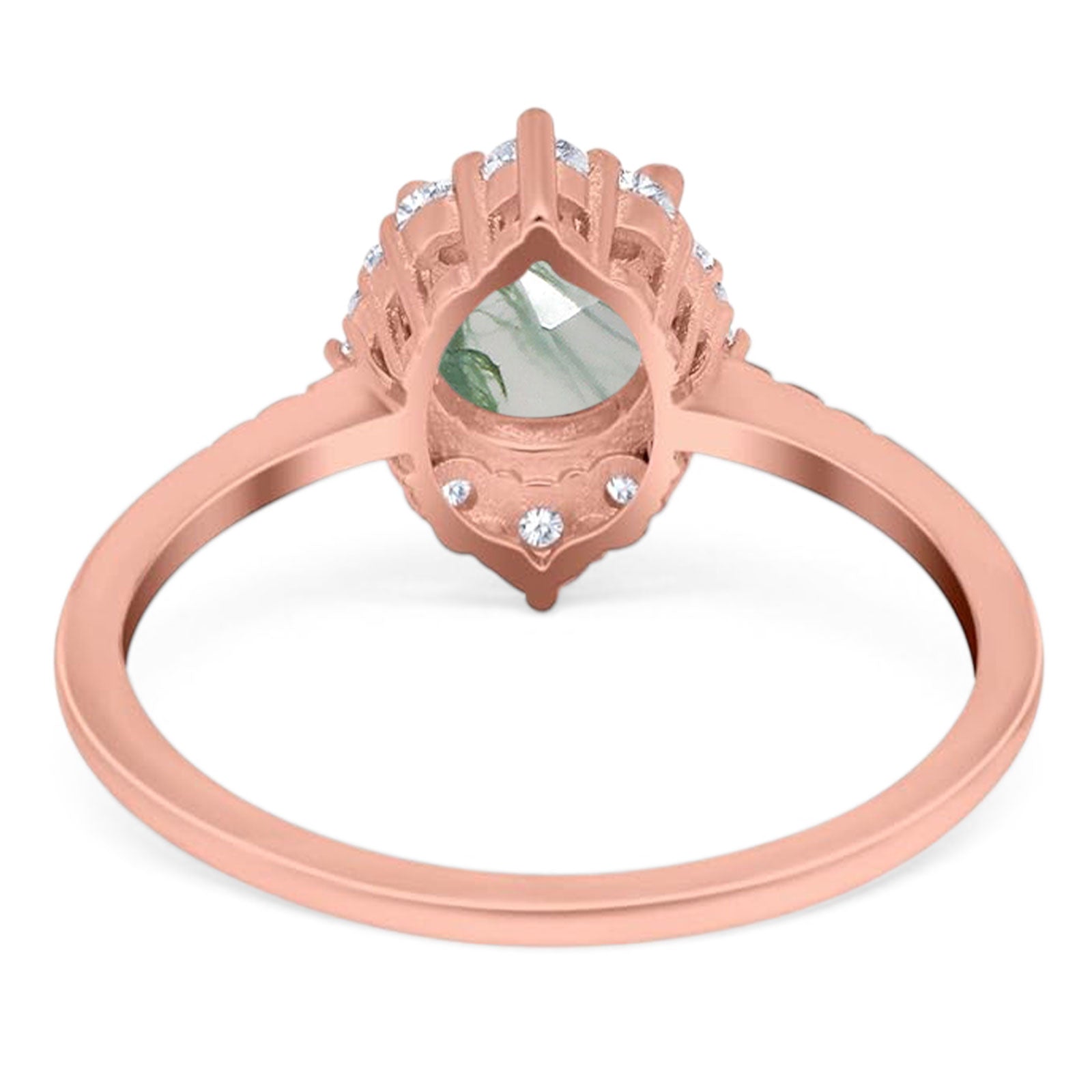 Vintage Style Round Natural Green Moss Agate Halo Wedding Ring 925 Sterling Silver