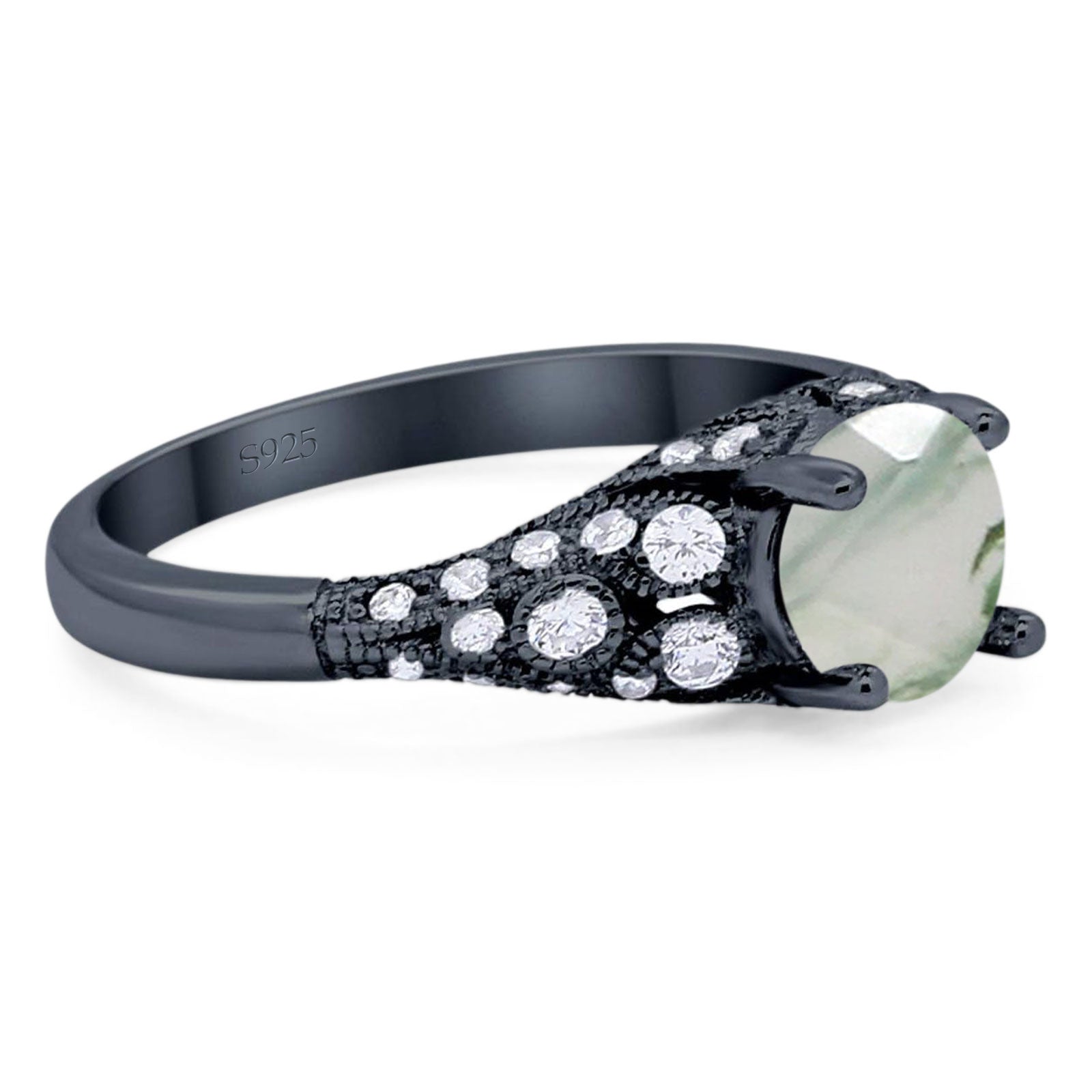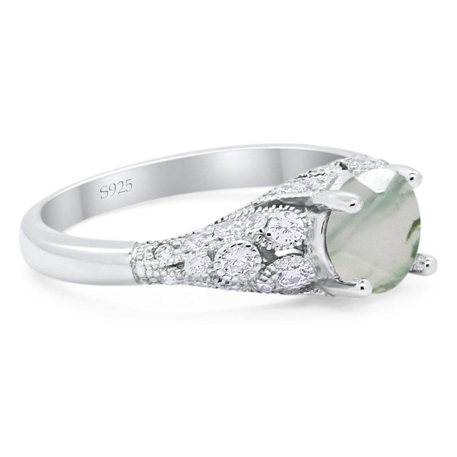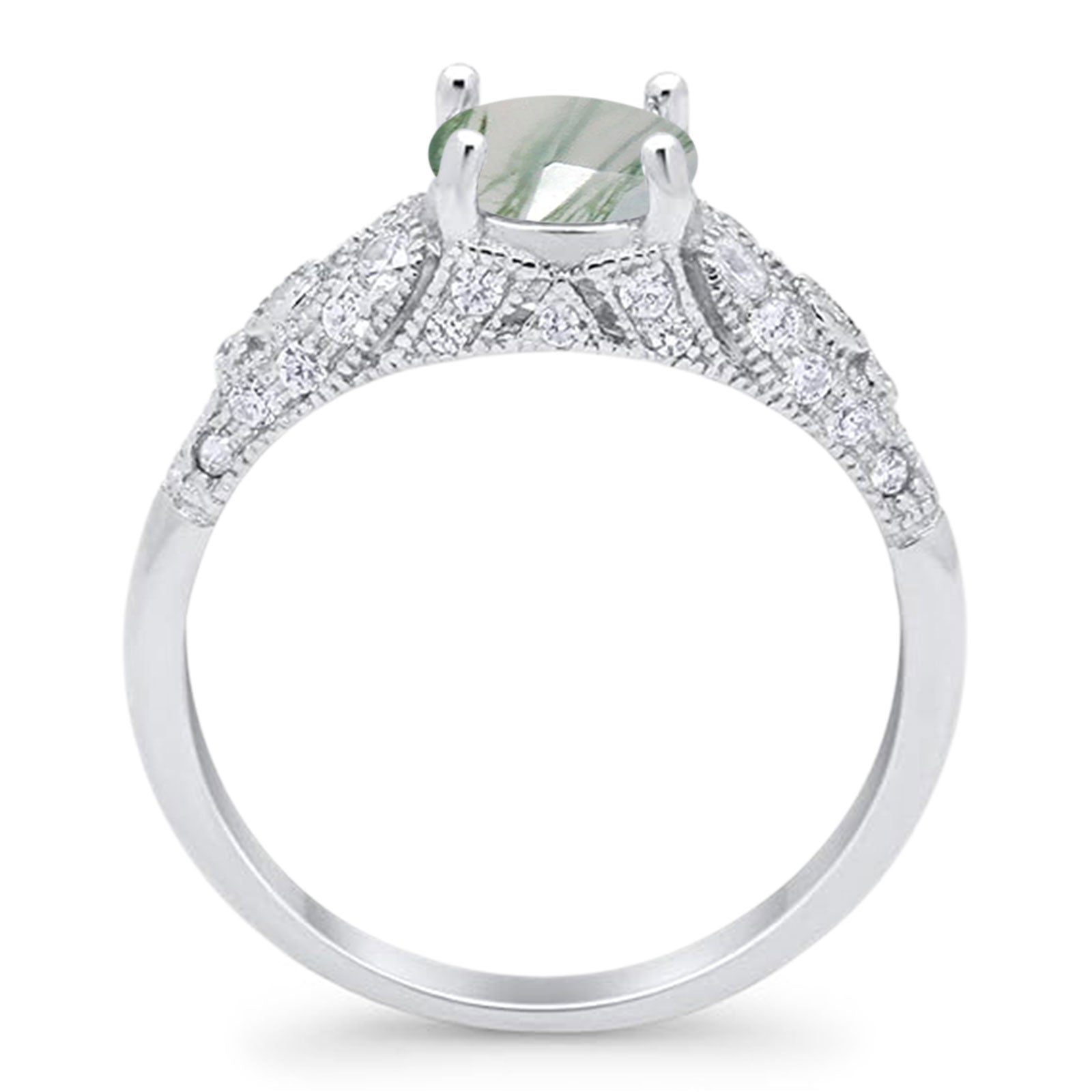 Natural Green Moss Agate Engagement Ring