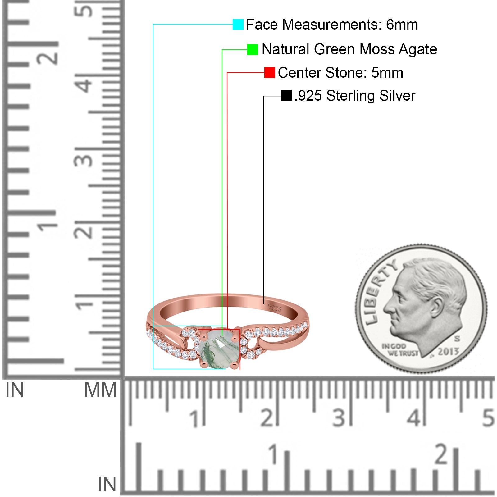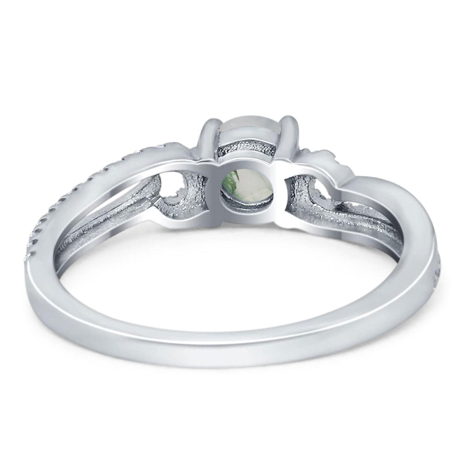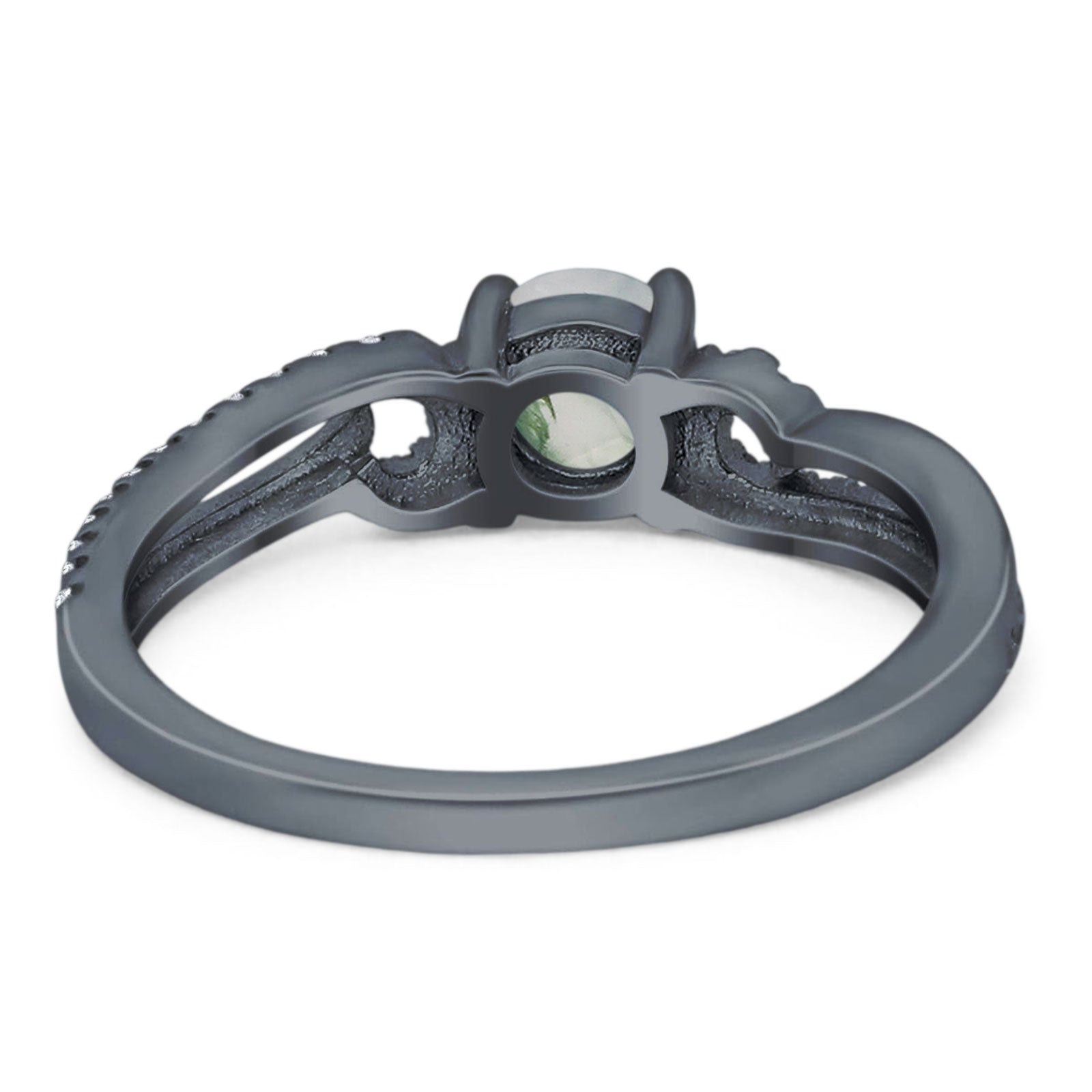 Vintage Style Round Natural Green Moss Agate Wedding Ring 925 Sterling Silver