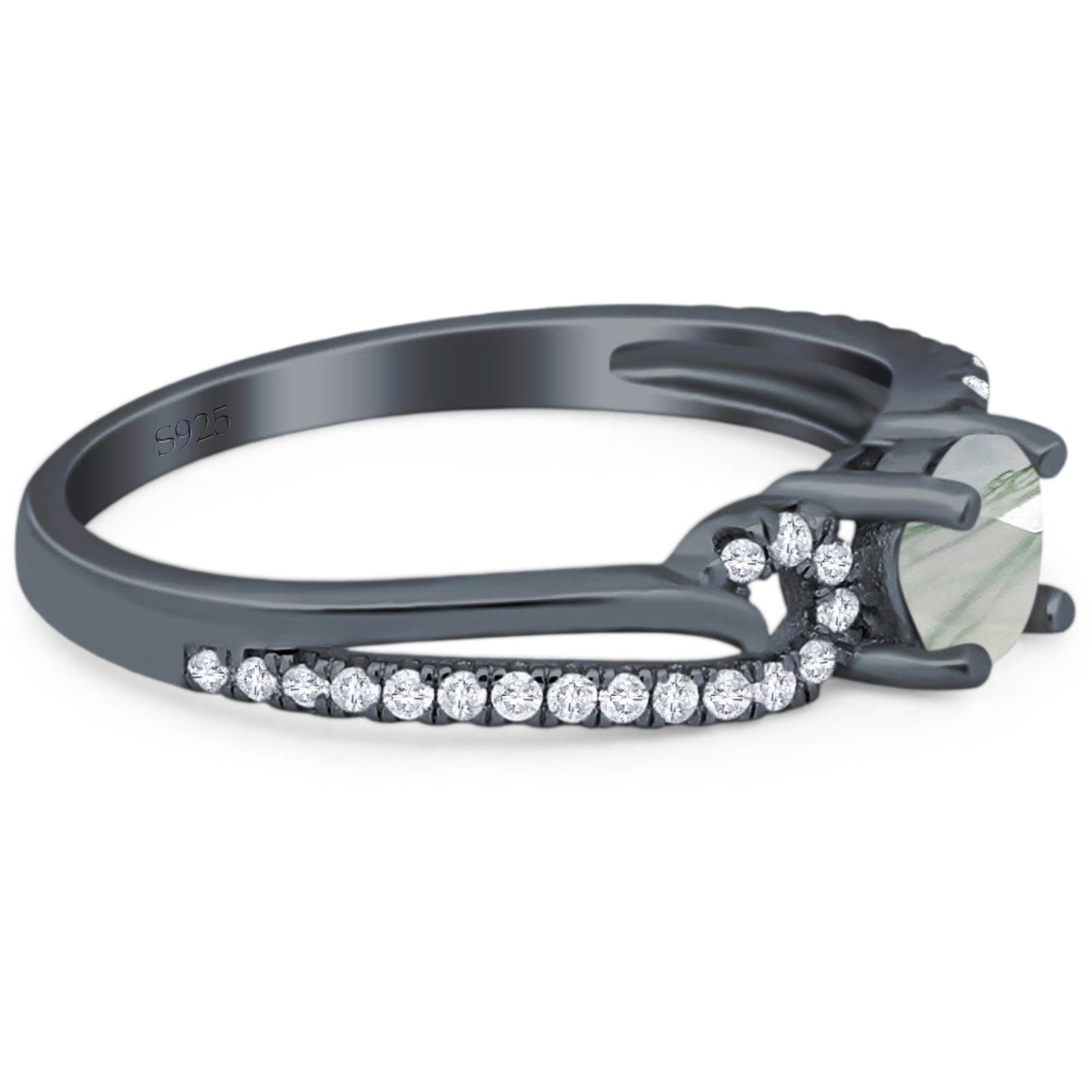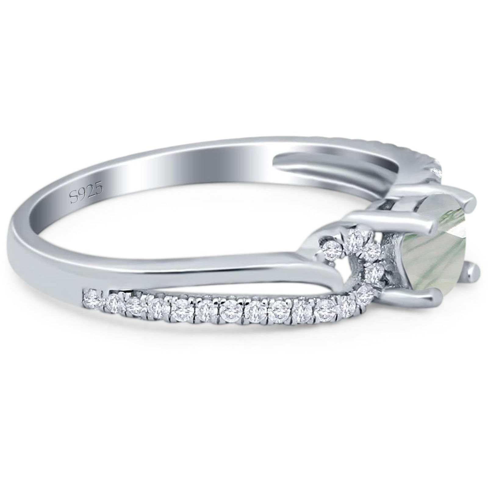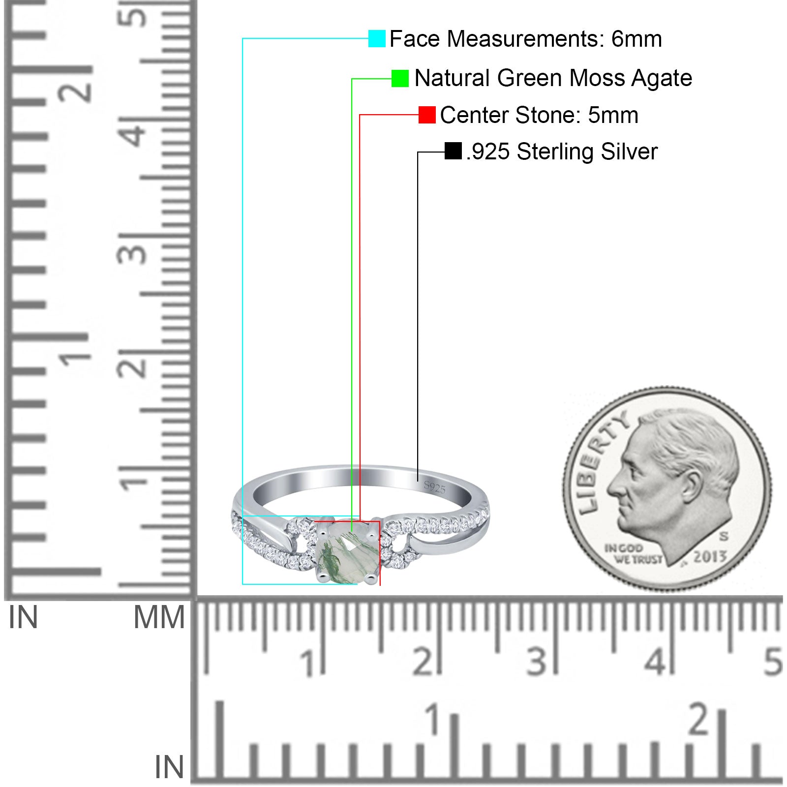 Vintage Style Round Natural Green Moss Agate Wedding Ring 925 Sterling Silver