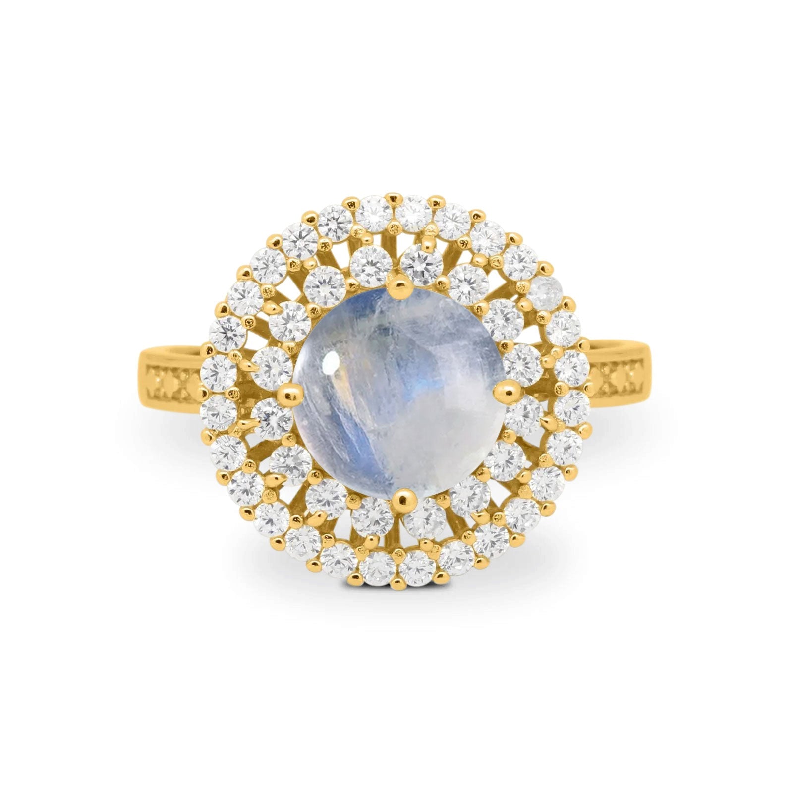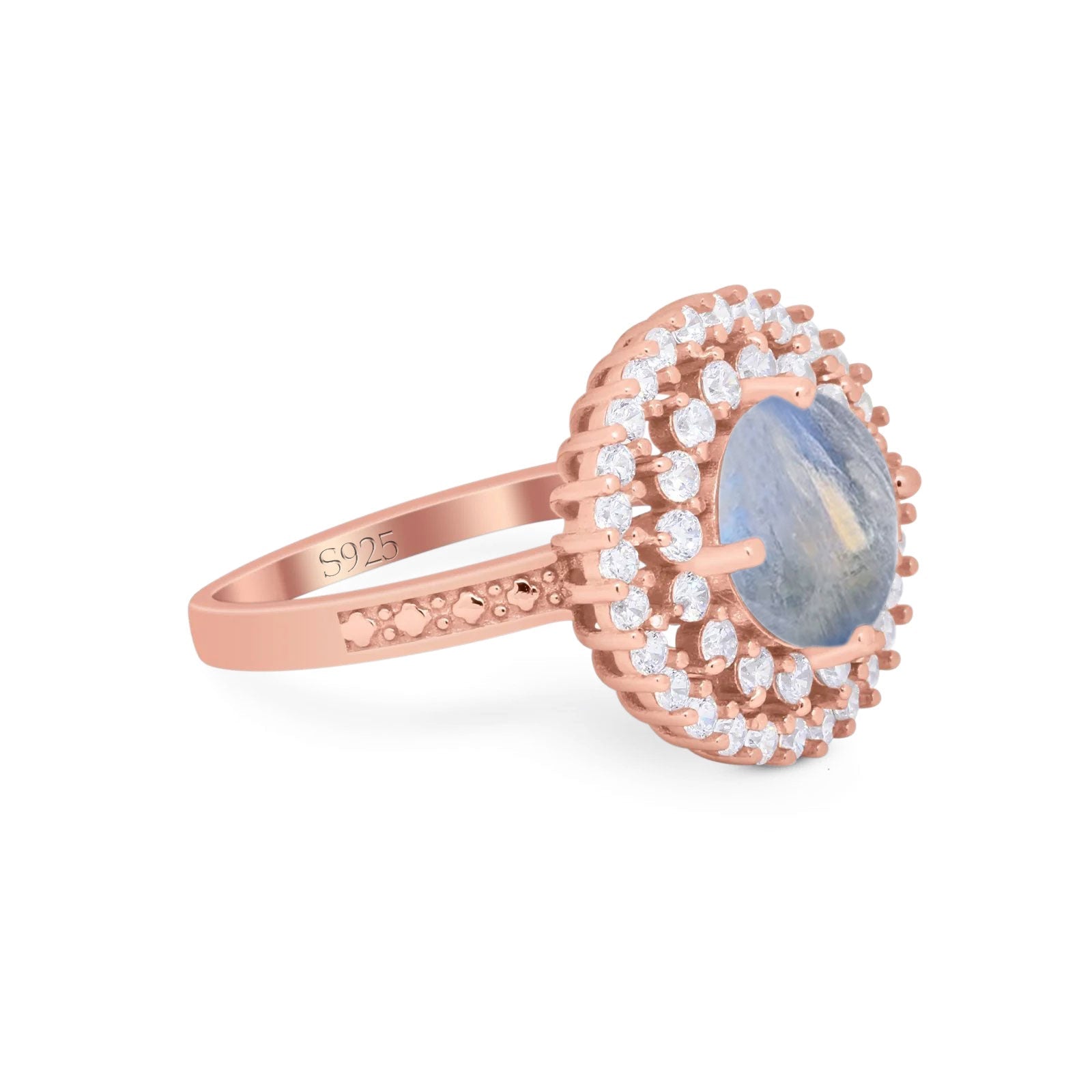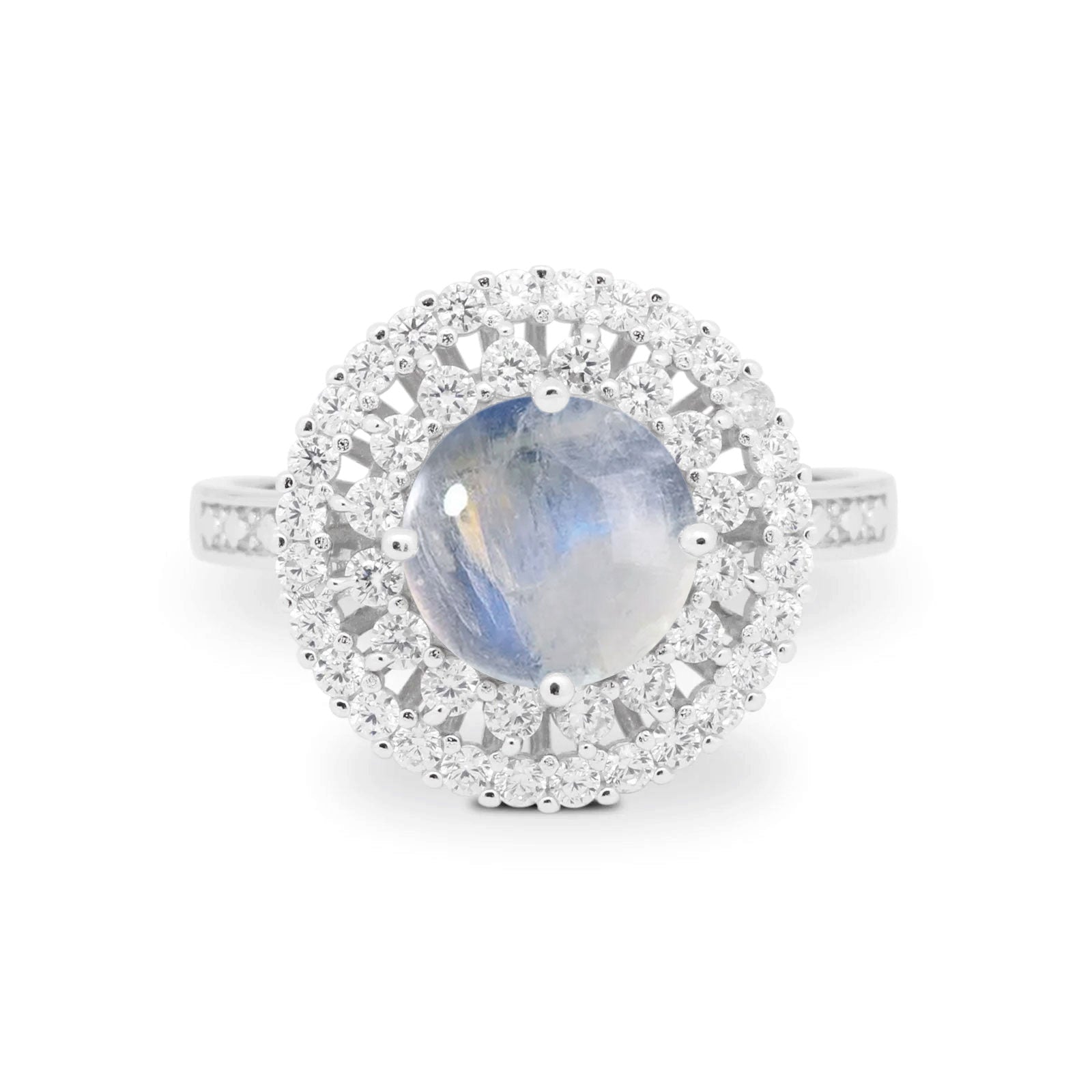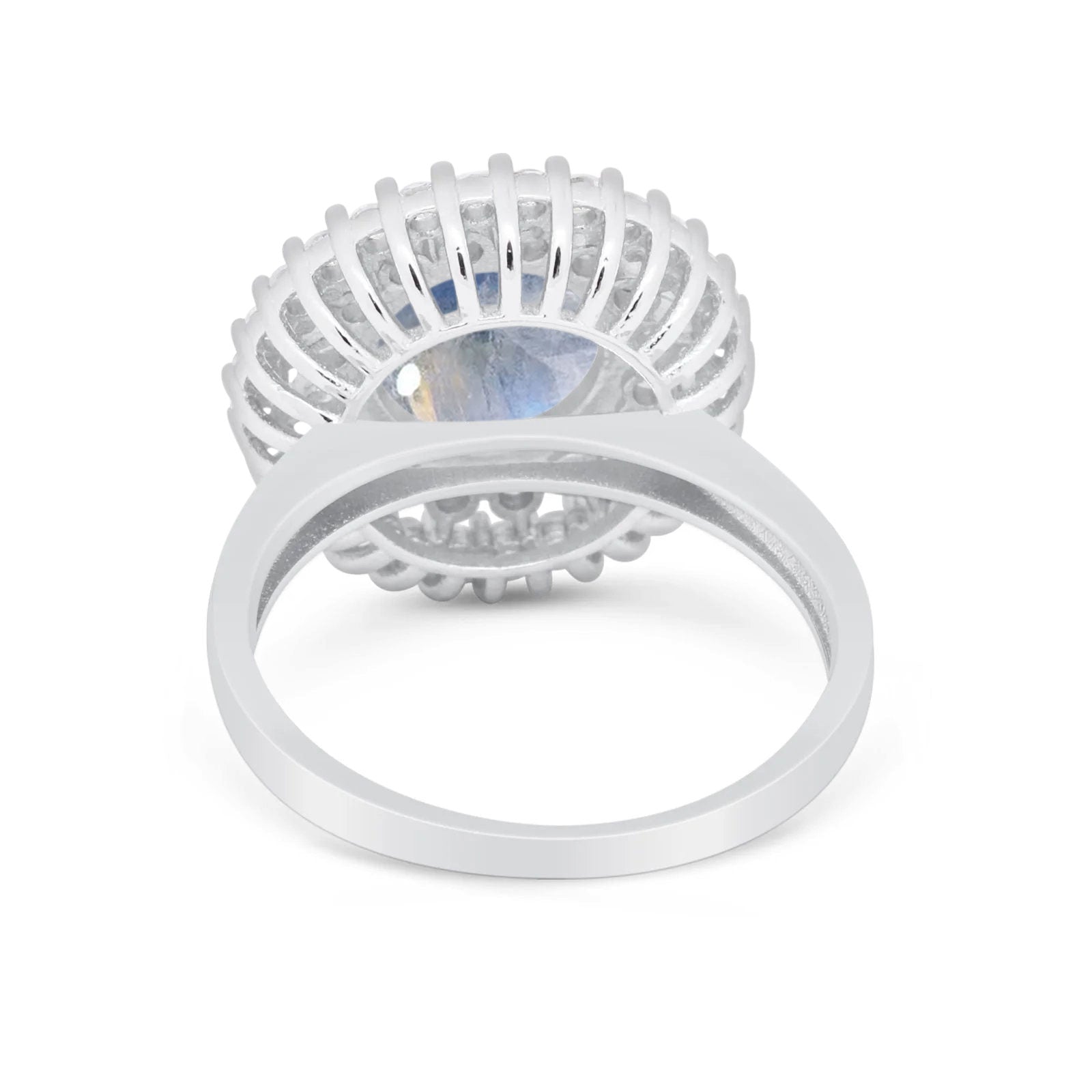 Vintage Style Round Natural Moonstone Cocktail Ring 925 Sterling Silver