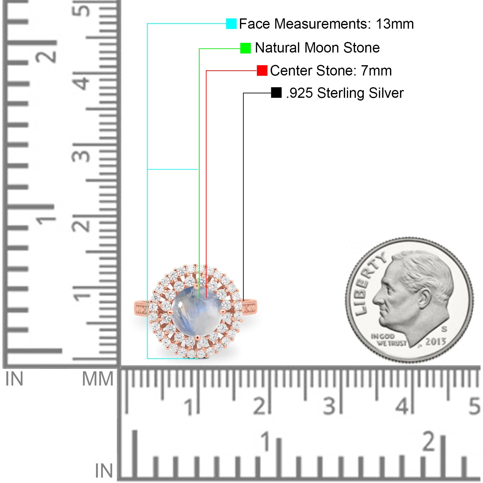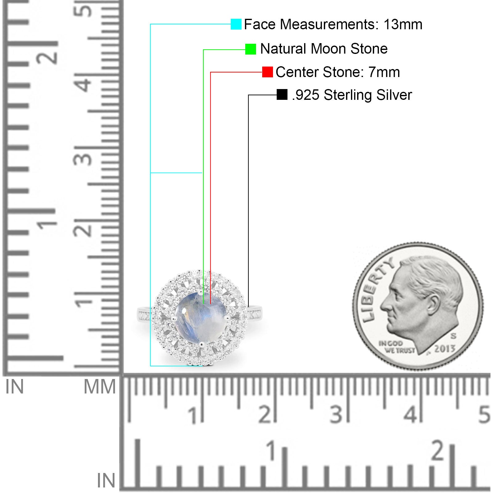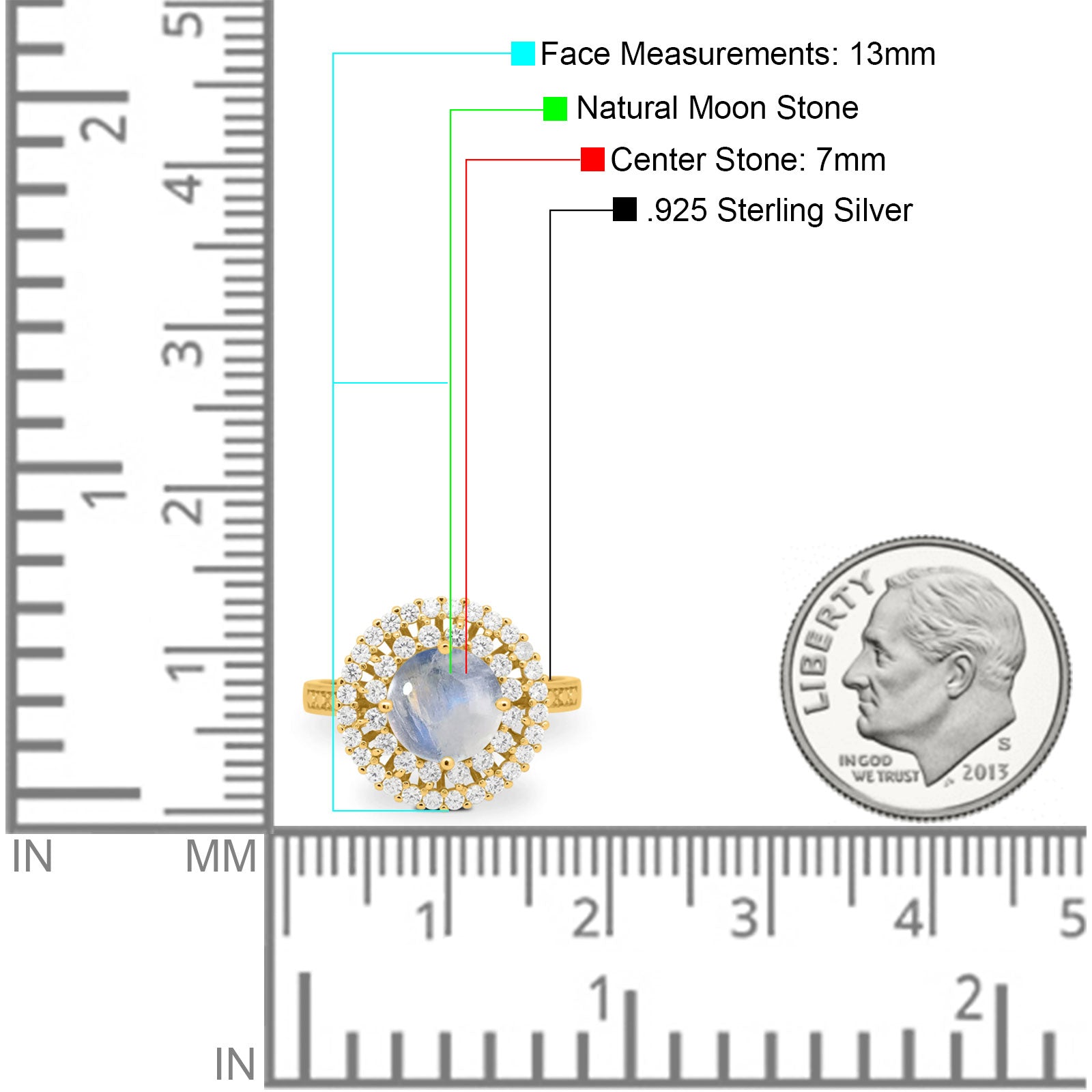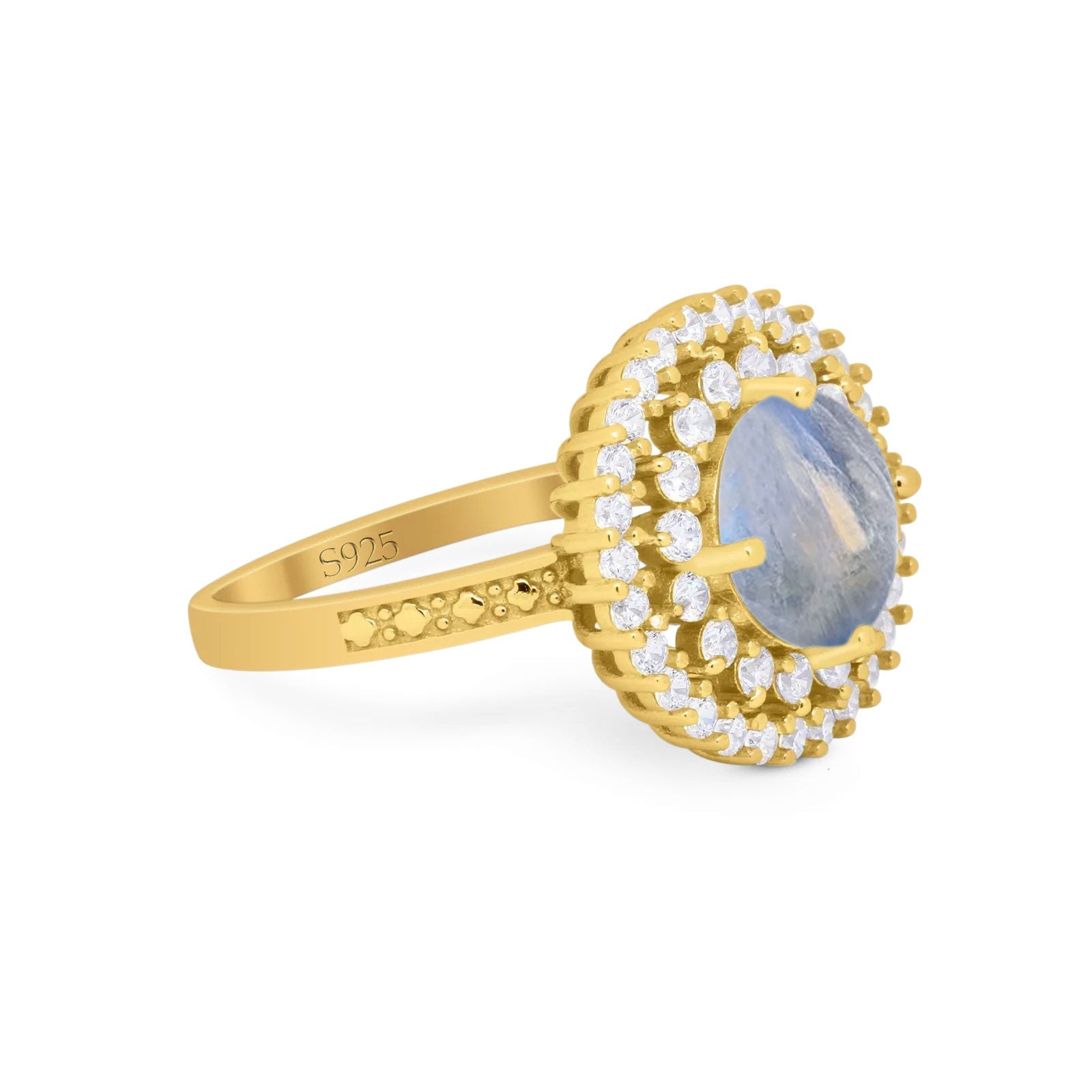 Vintage Style Round Natural Moonstone Cocktail Ring 925 Sterling Silver