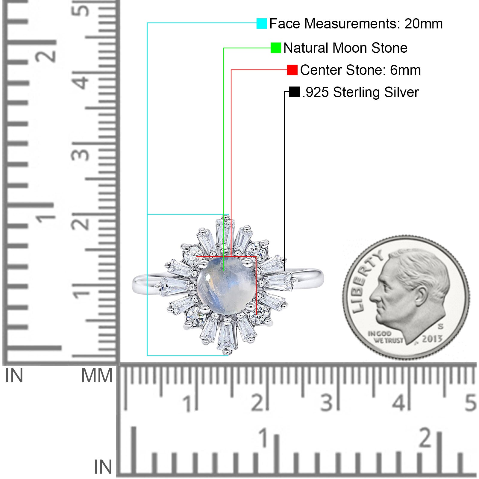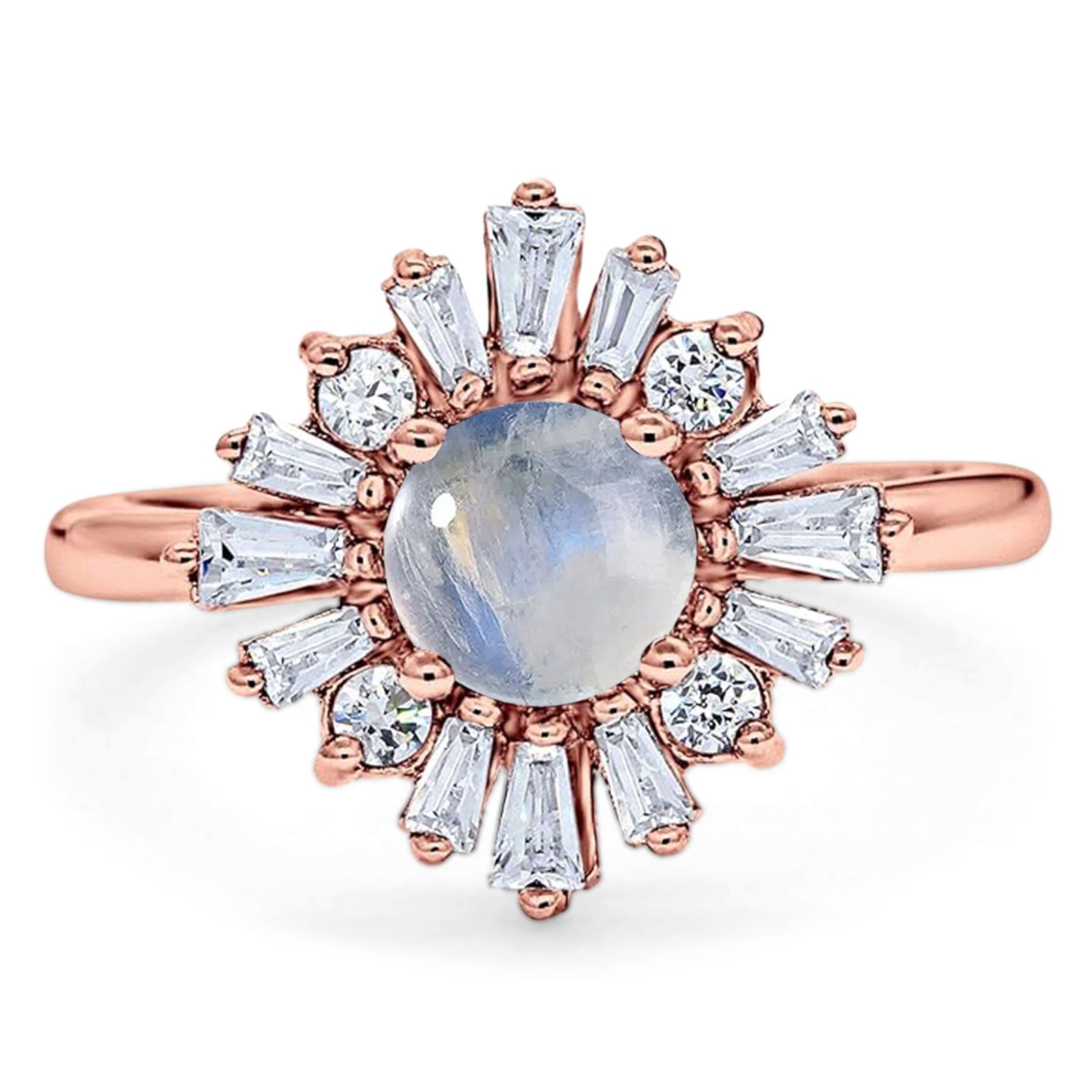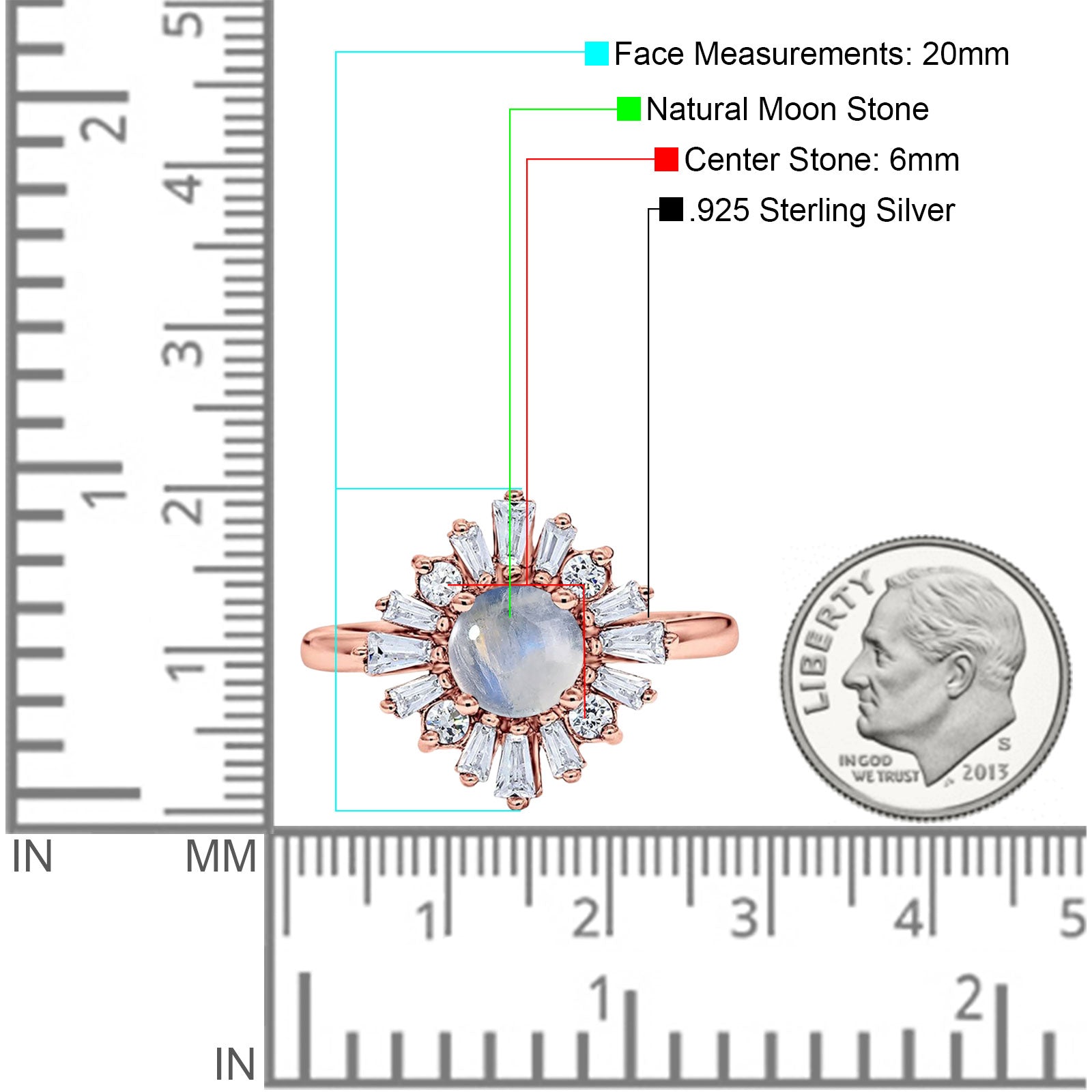 Vintage Style Round Natural Moonstone Floral Cocktail Ring 925 Sterling Silver