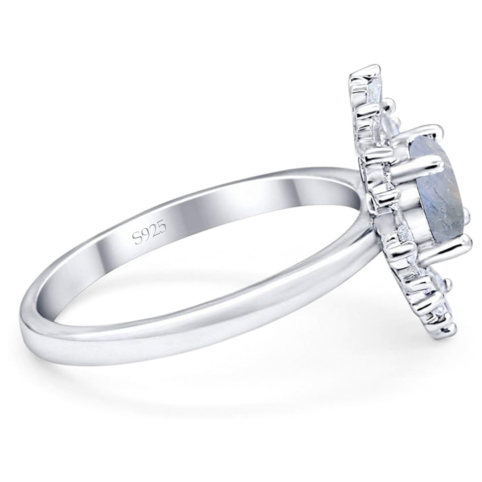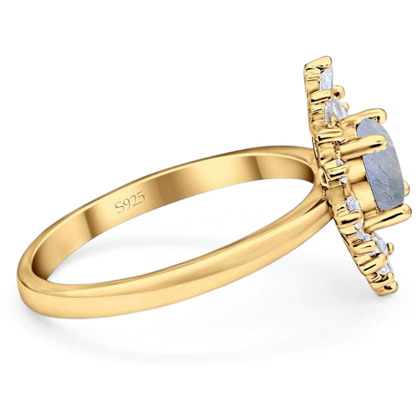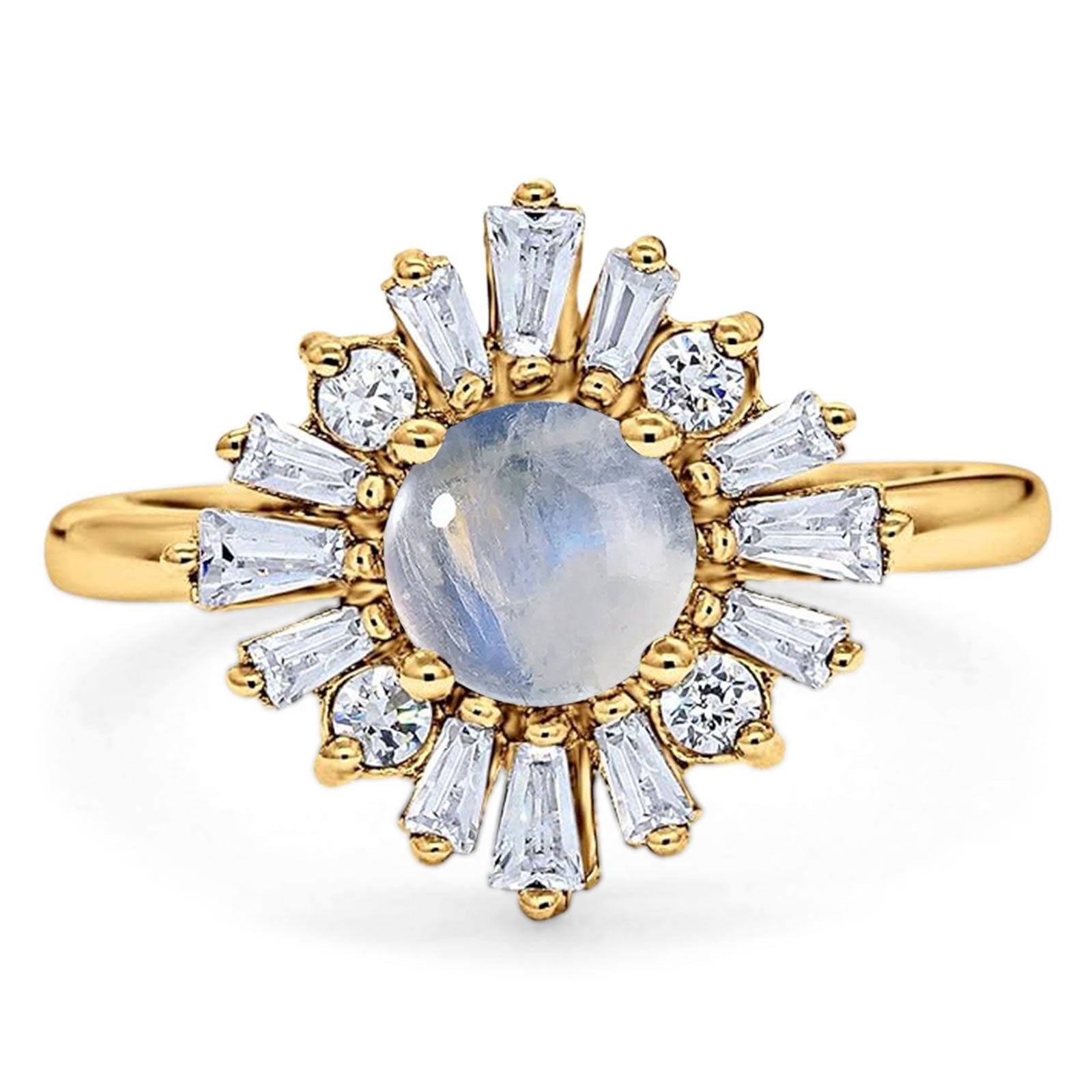 Vintage Style Round Natural Moonstone Floral Cocktail Ring 925 Sterling Silver