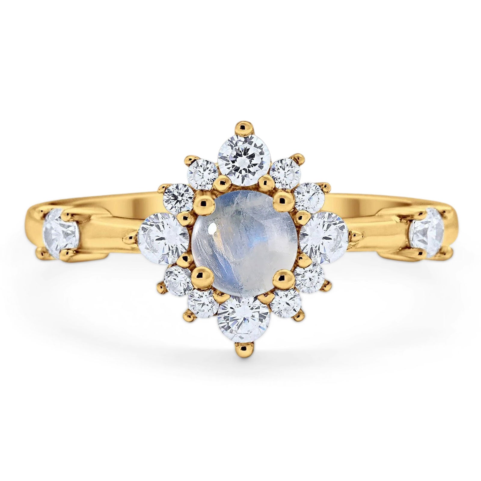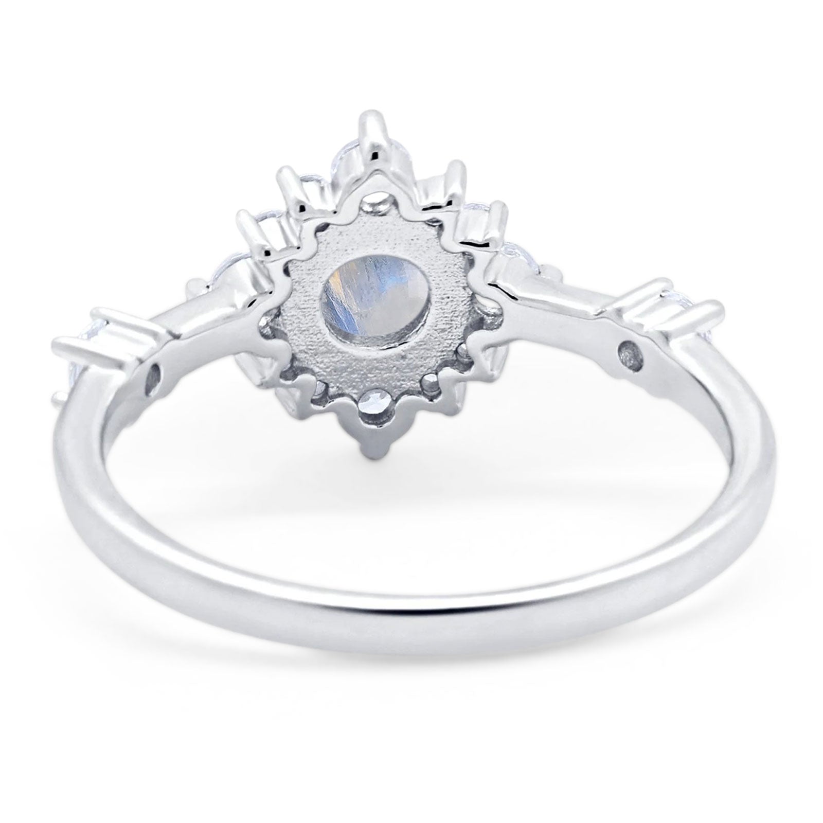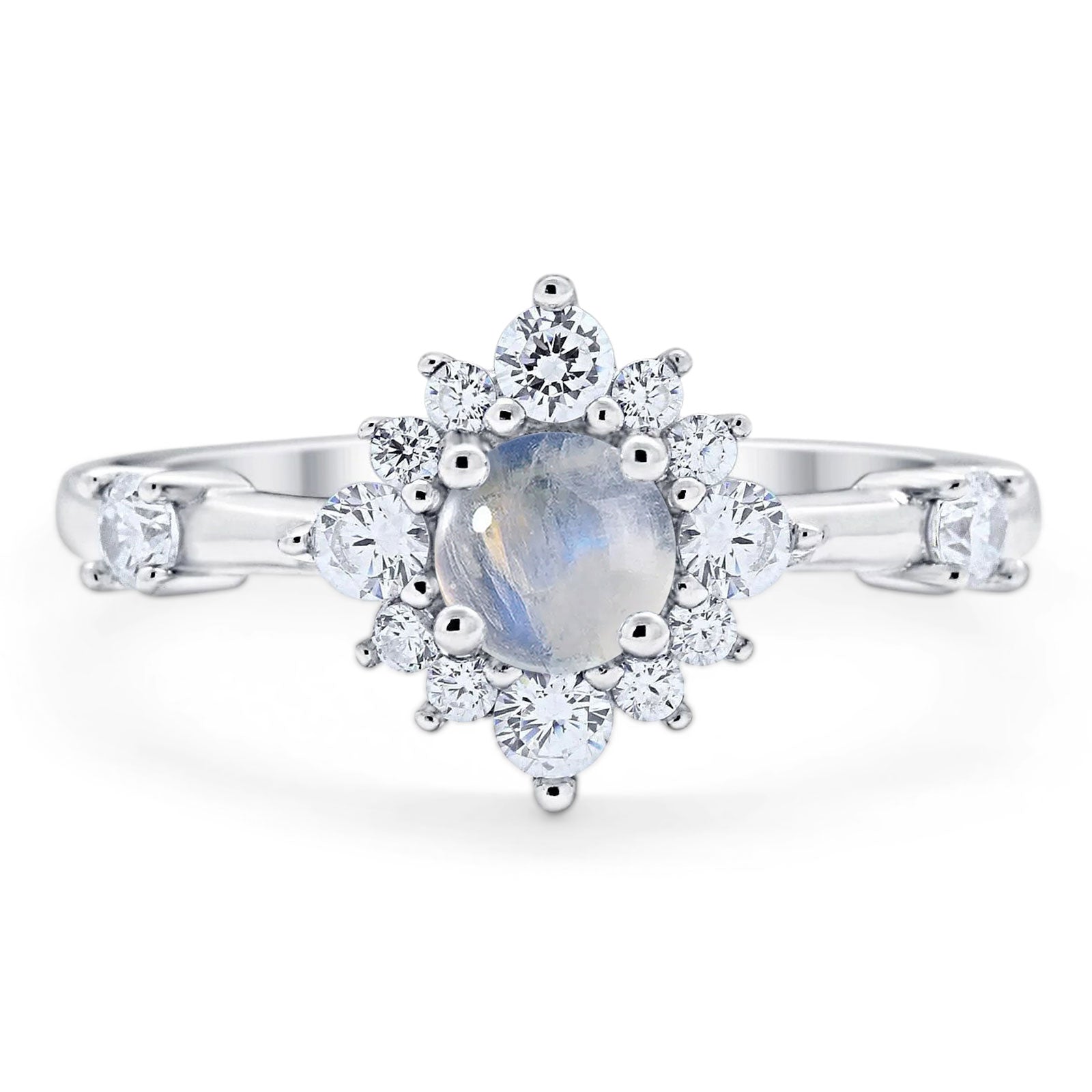 Vintage Style Round Natural Moonstone Flower Ring 925 Sterling Silver