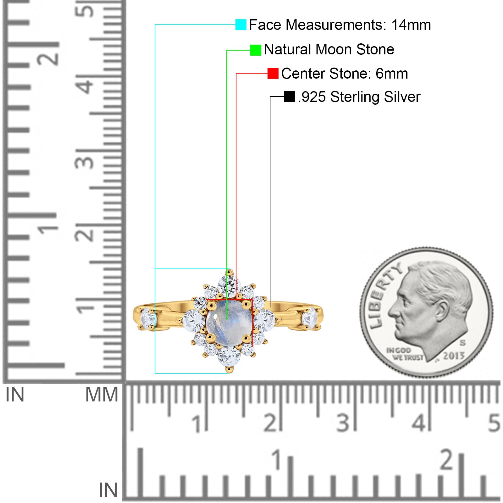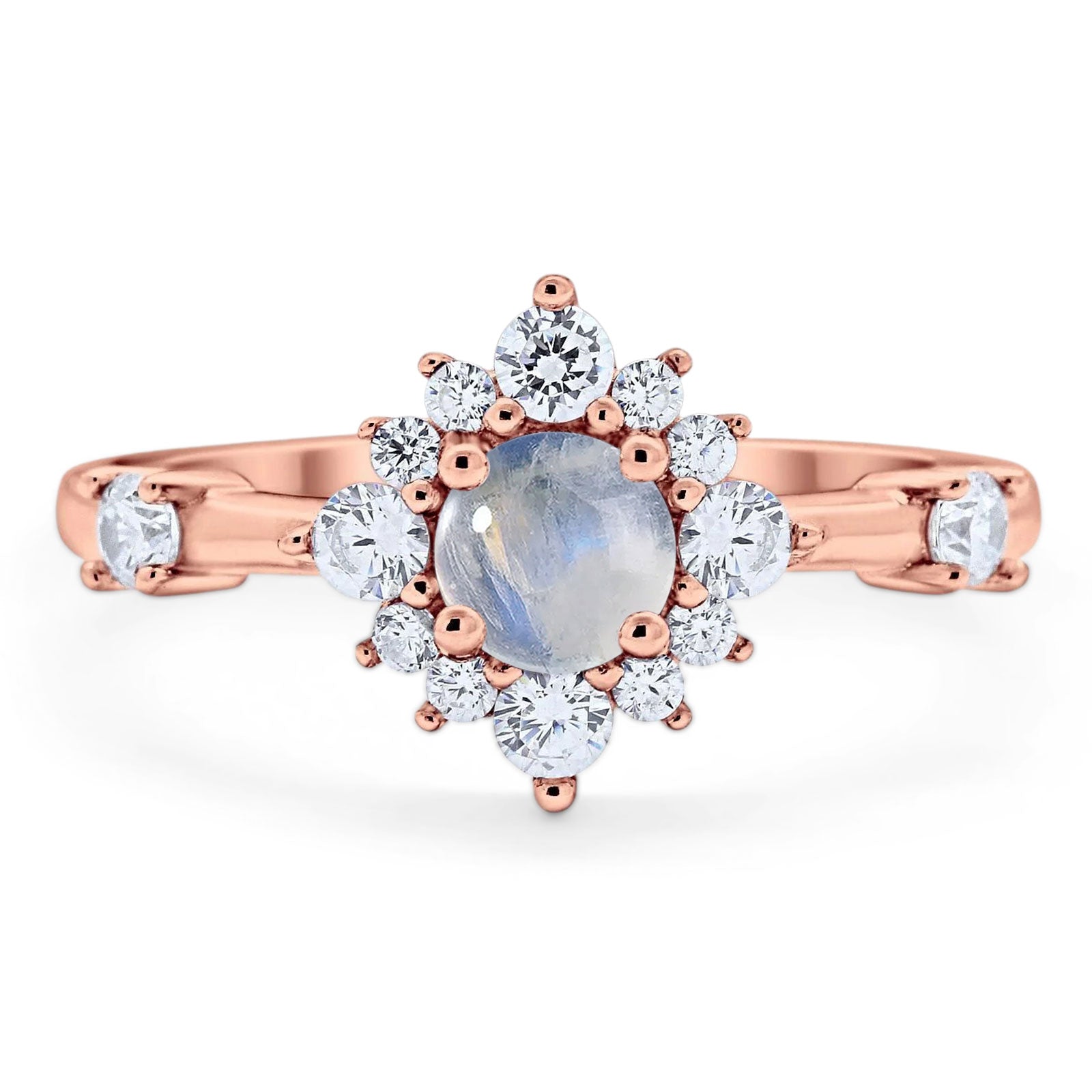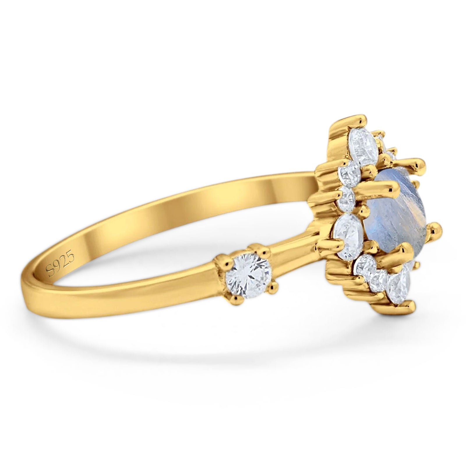 Vintage Style Round Natural Moonstone Flower Ring 925 Sterling Silver