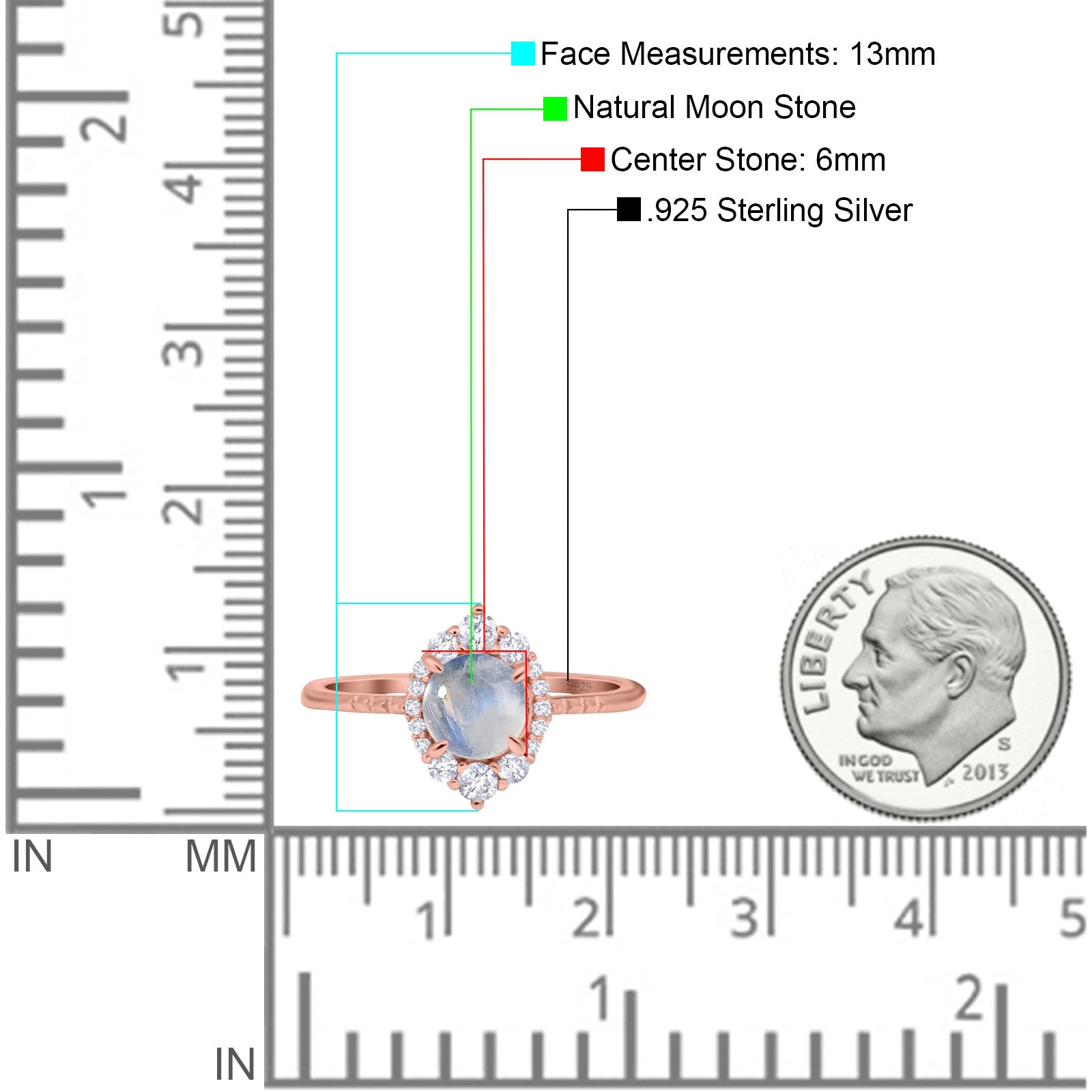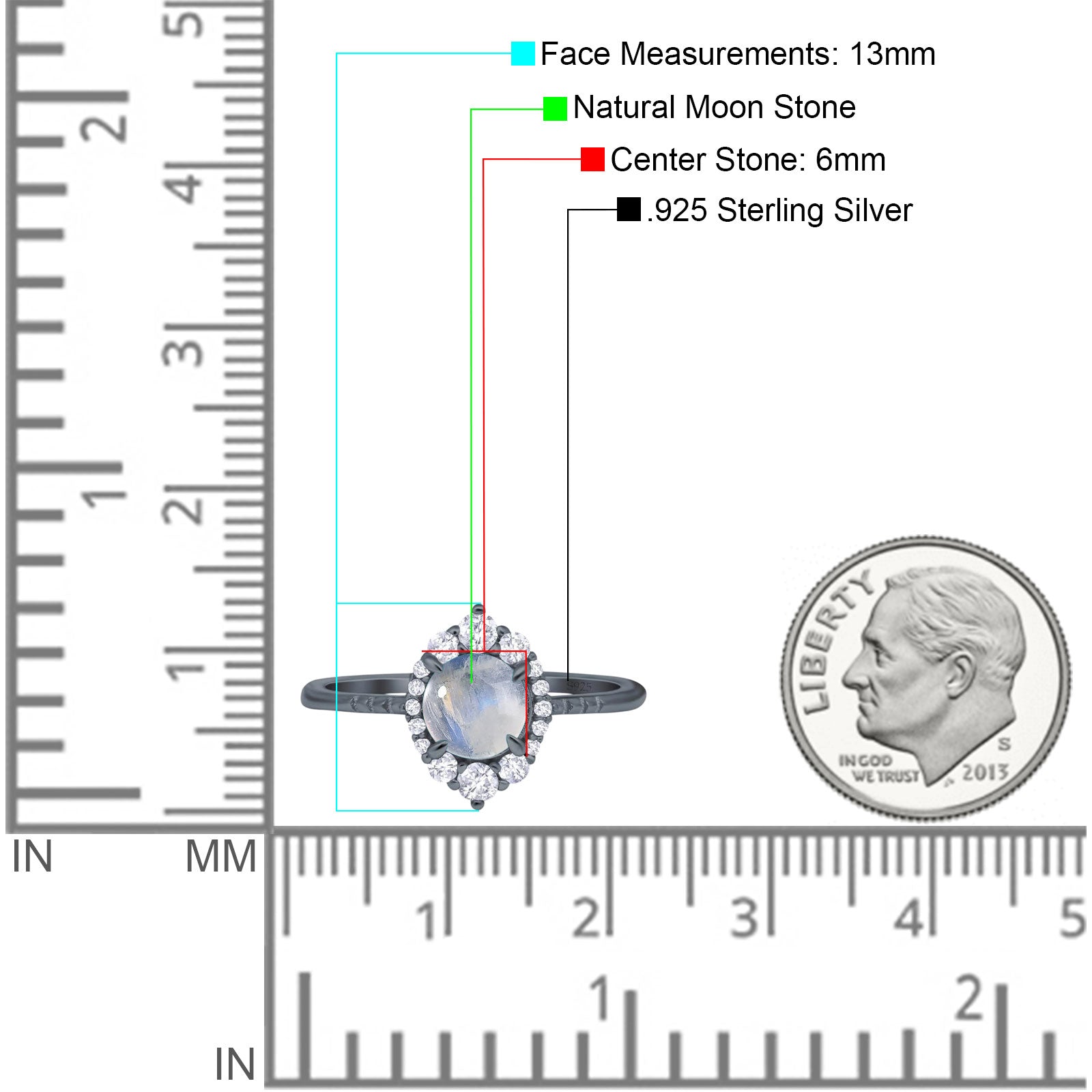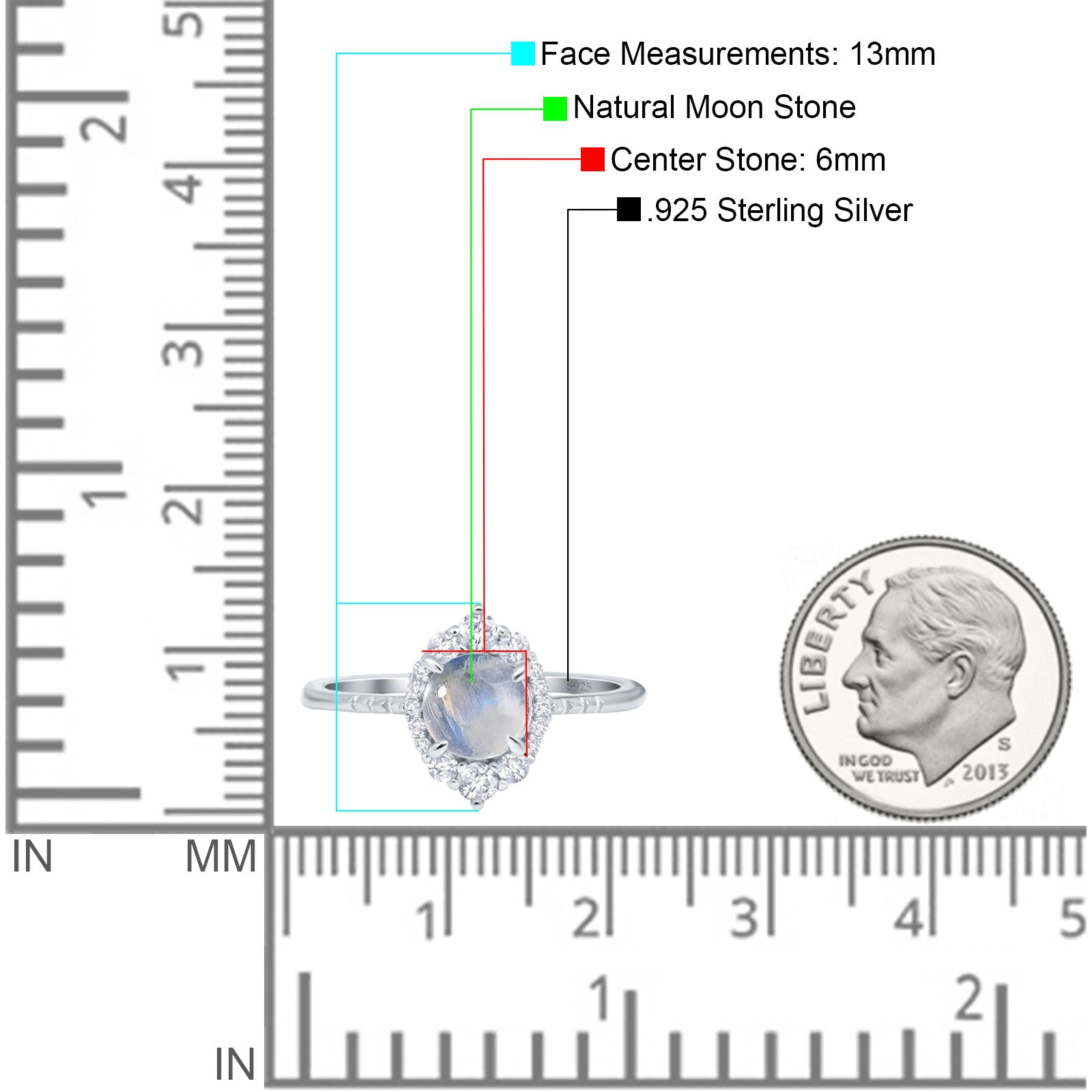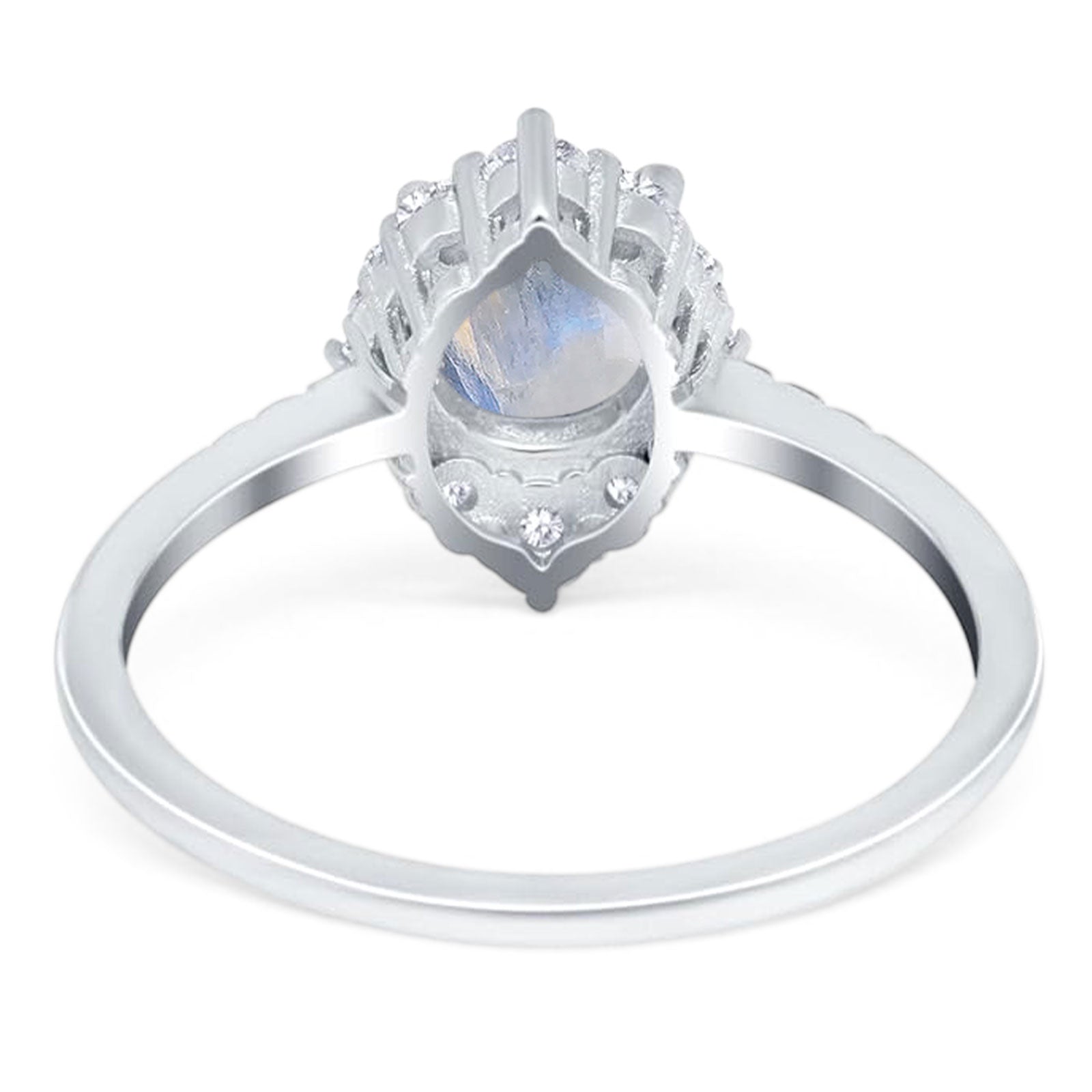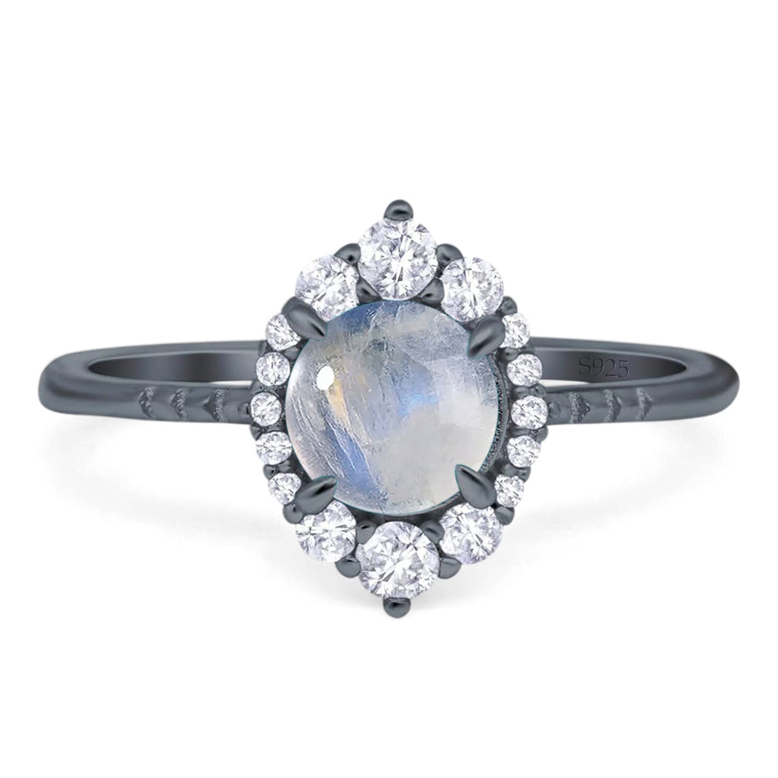Vintage Style Round Natural Moonstone Halo Wedding Ring 925 Sterling Silver