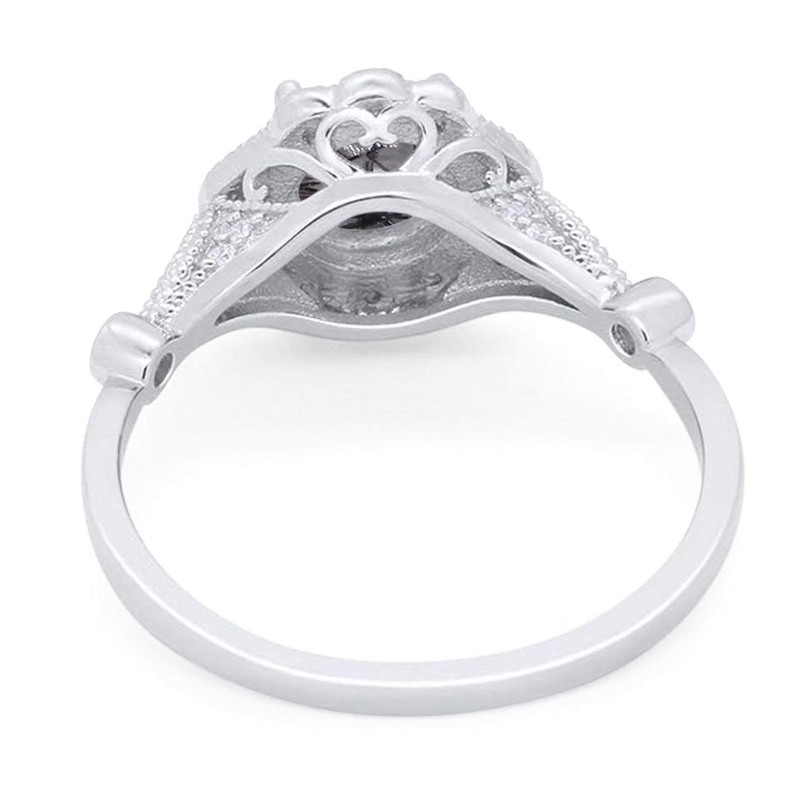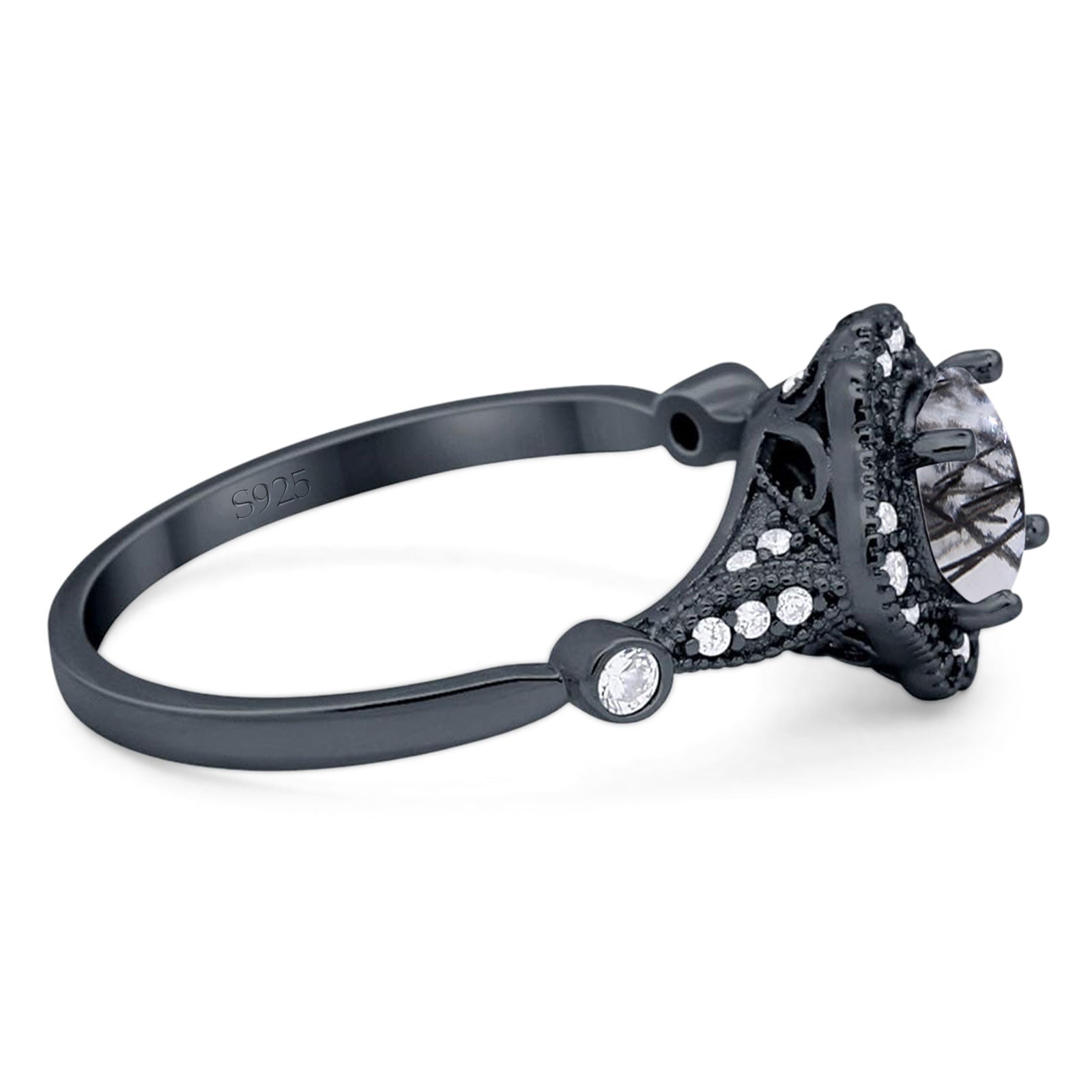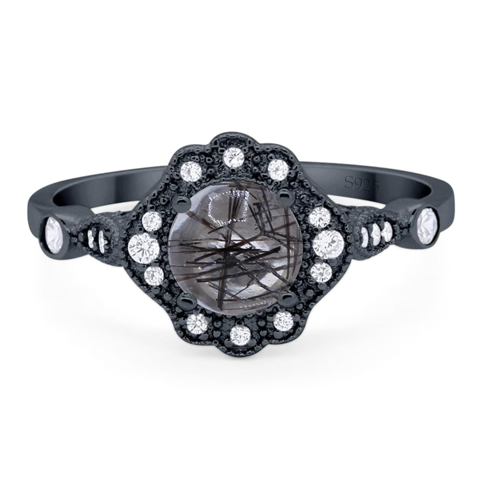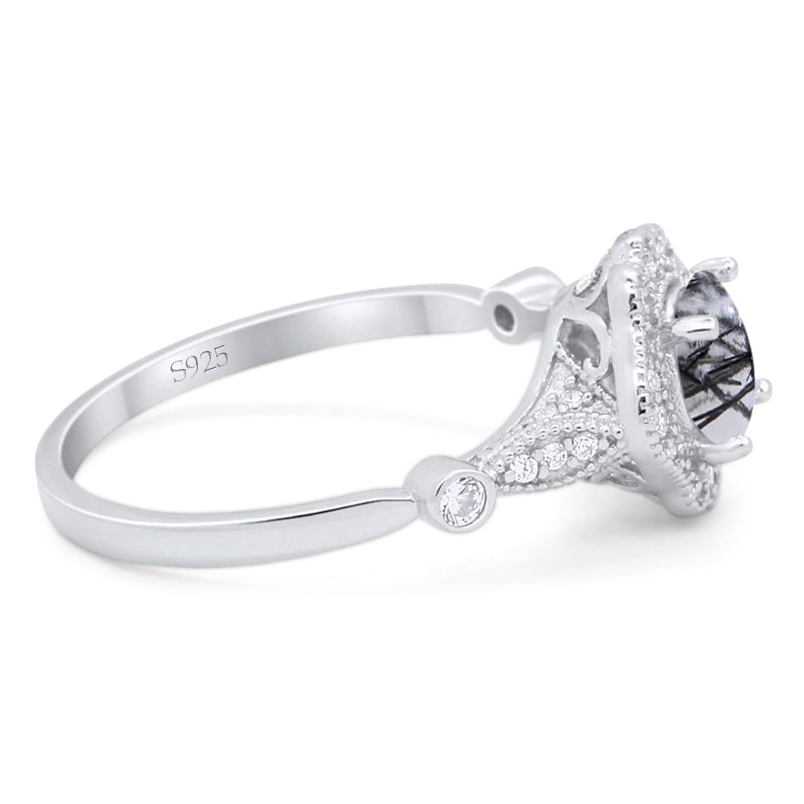 Vintage Style Round Natural Rutilated Quartz Art Deco Ring 925 Sterling Silver