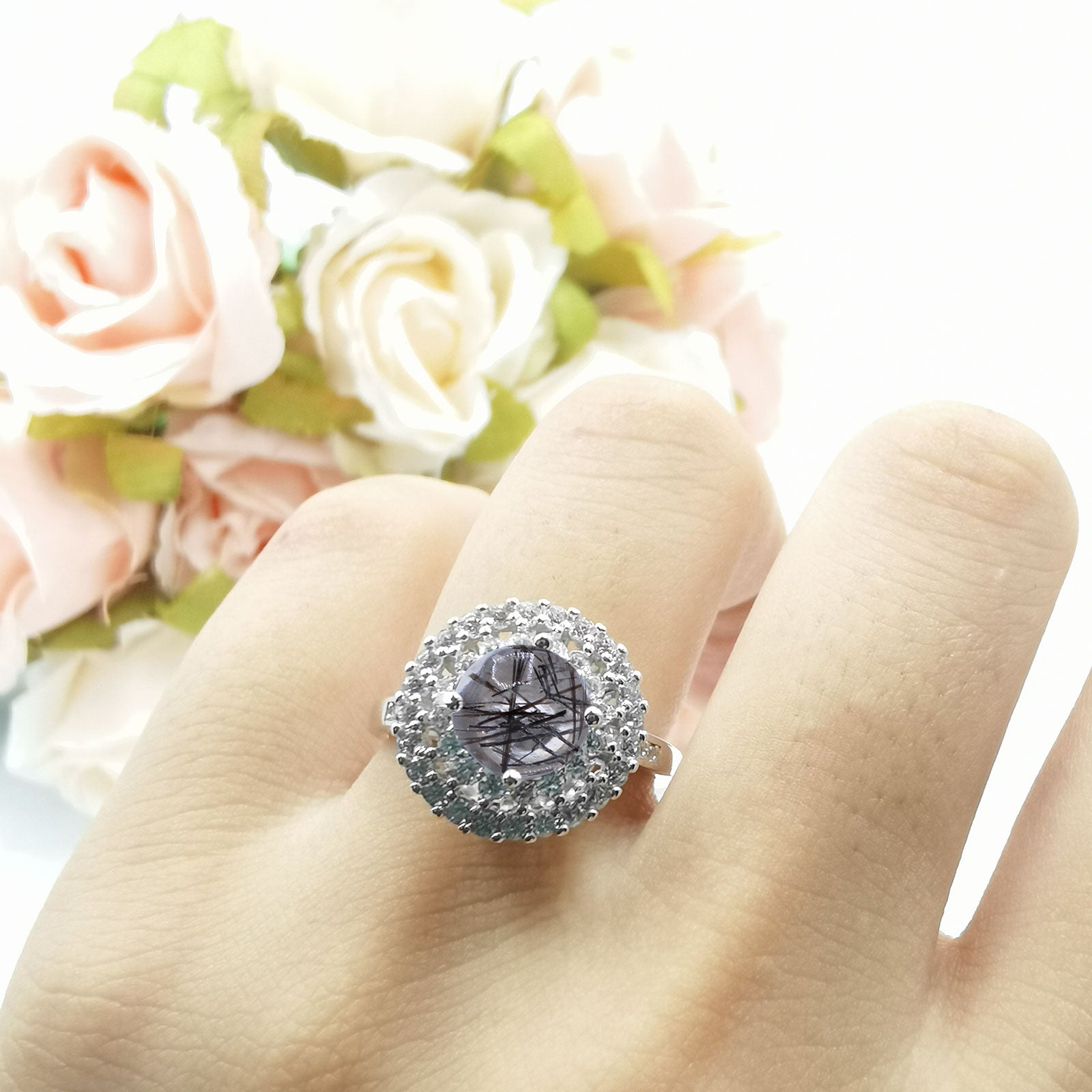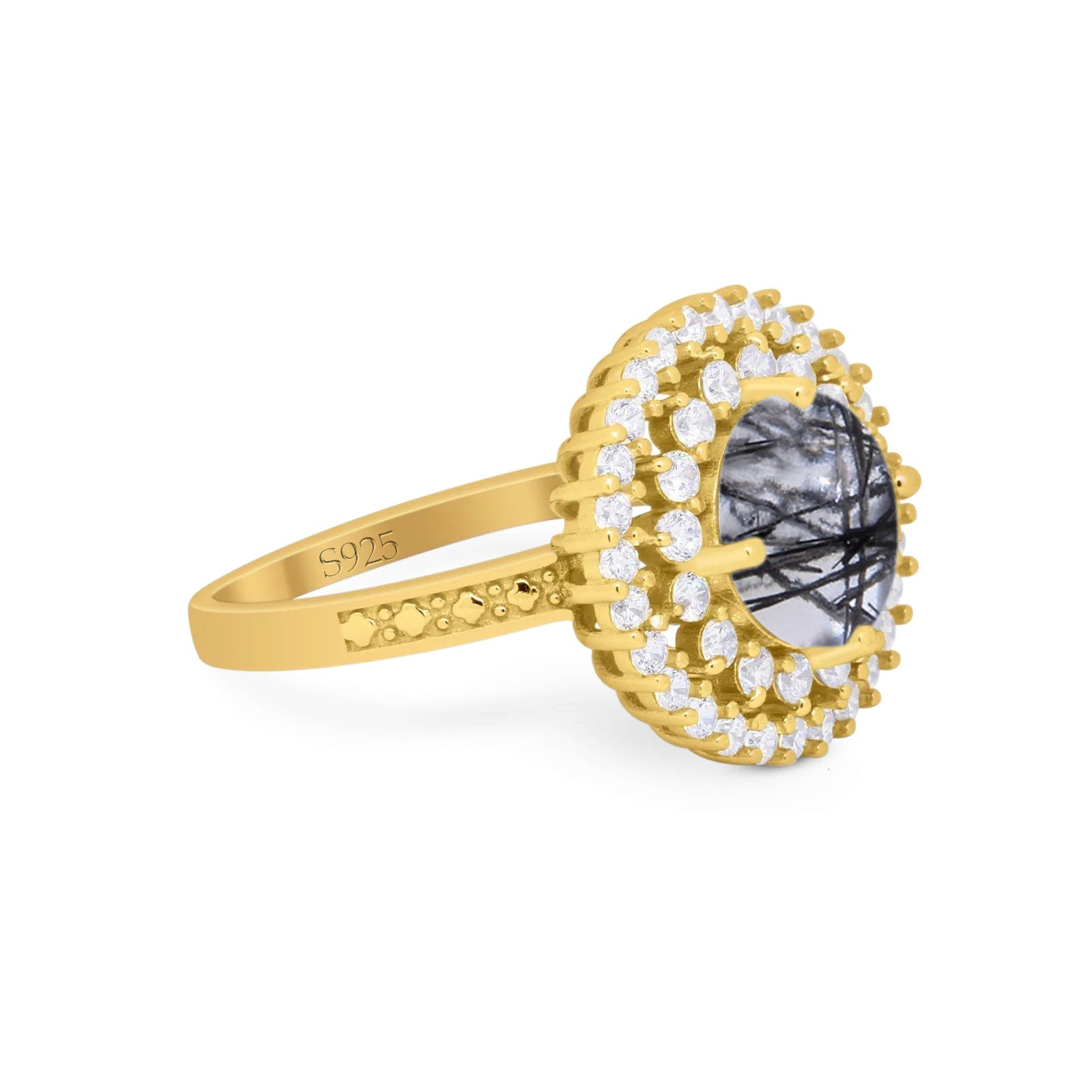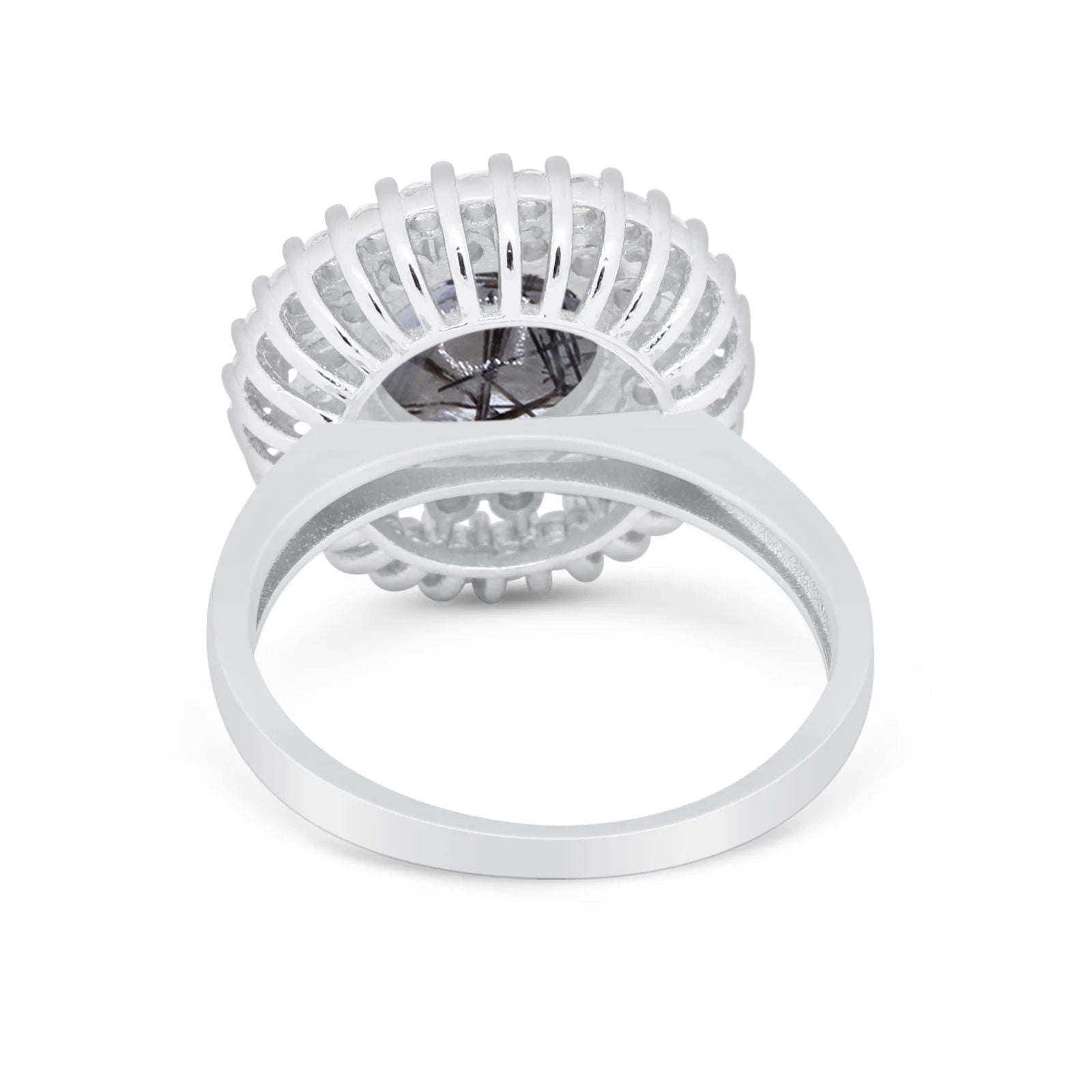 Vintage Style Round Natural Rutilated Quartz Cocktail Ring 925 Sterling Silver