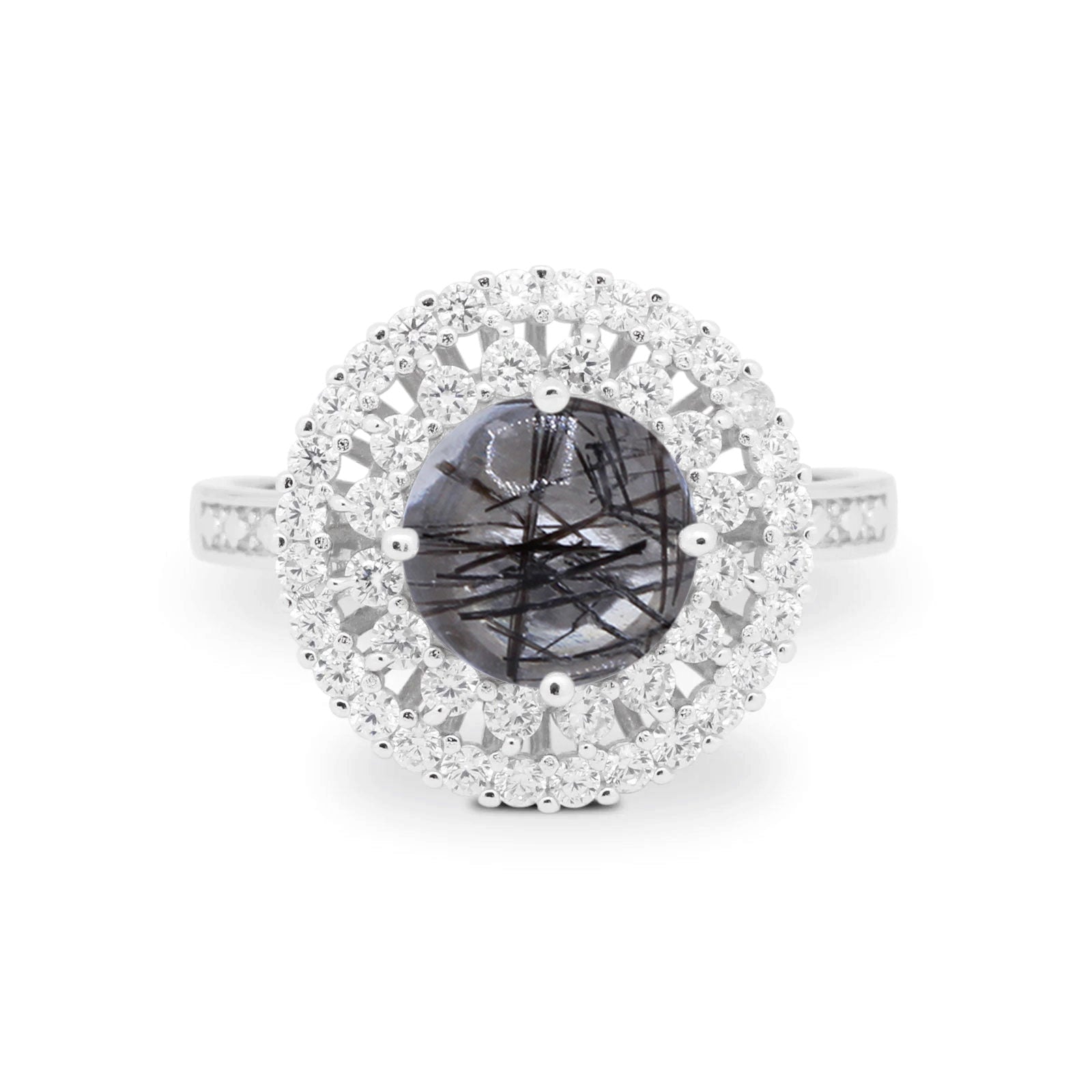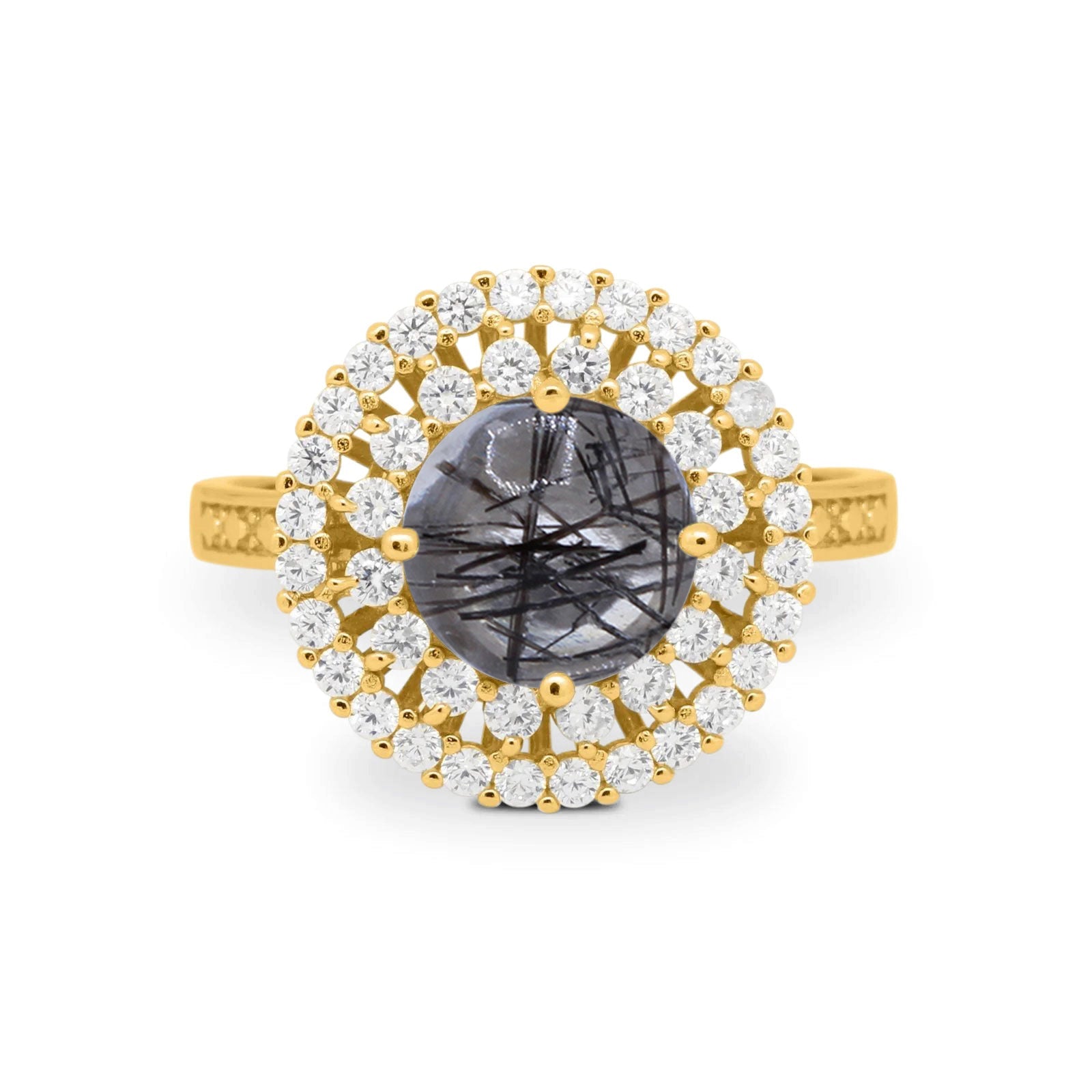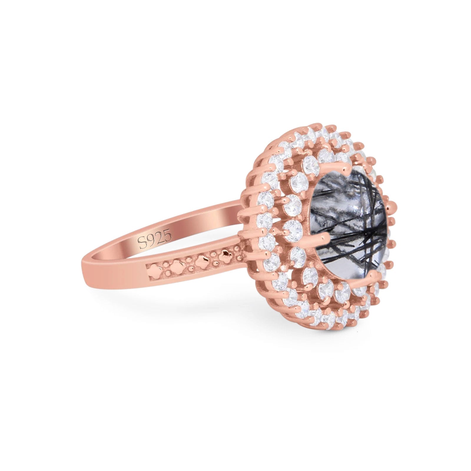 Vintage Style Round Natural Rutilated Quartz Cocktail Ring 925 Sterling Silver