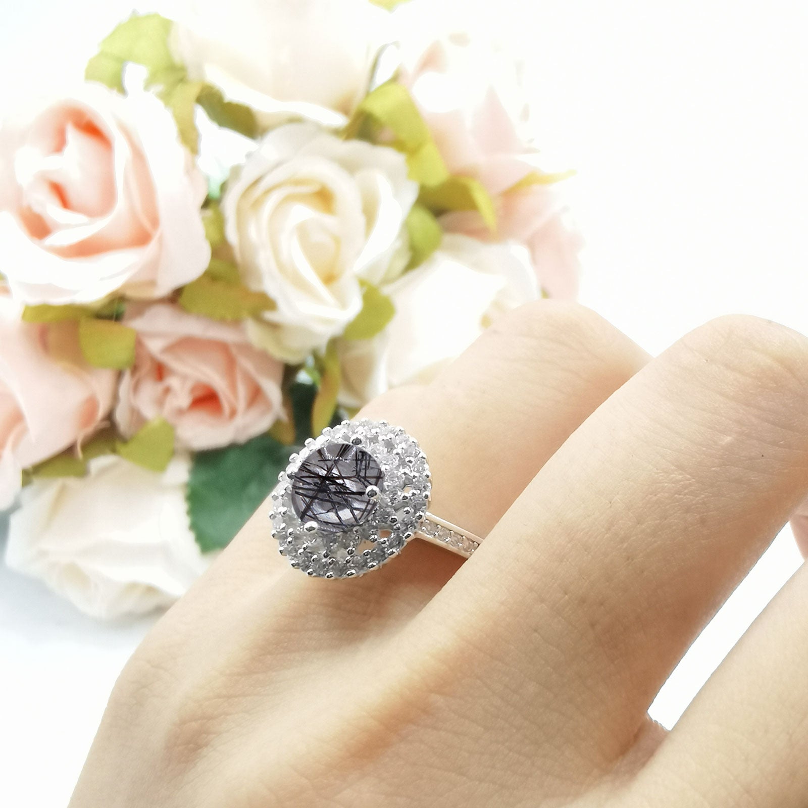 Natural Rutilated Quartz Engagement Ring