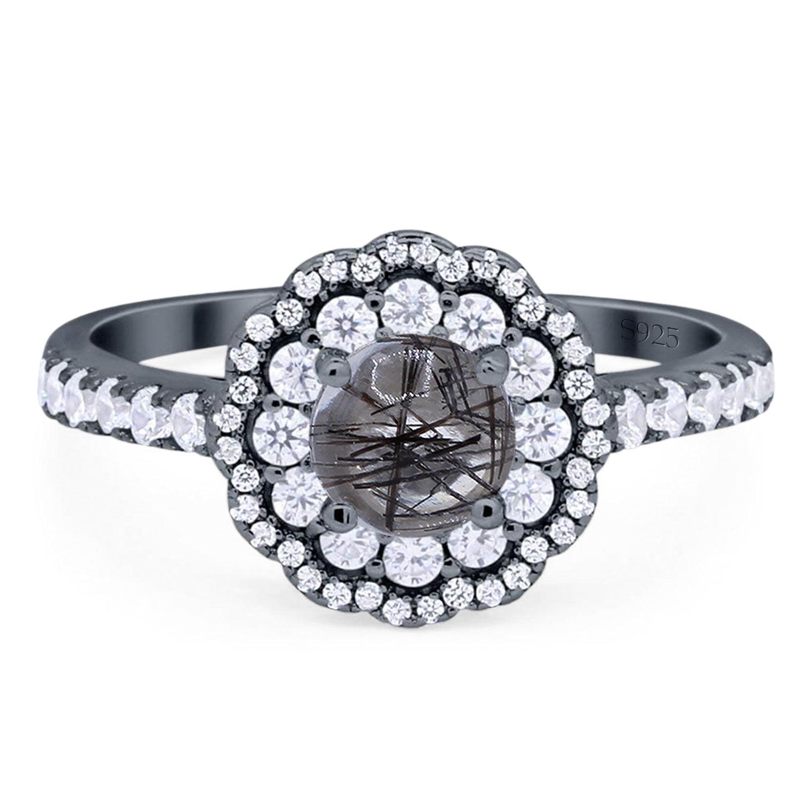 Natural Rutilated Quartz Black Tone Silver