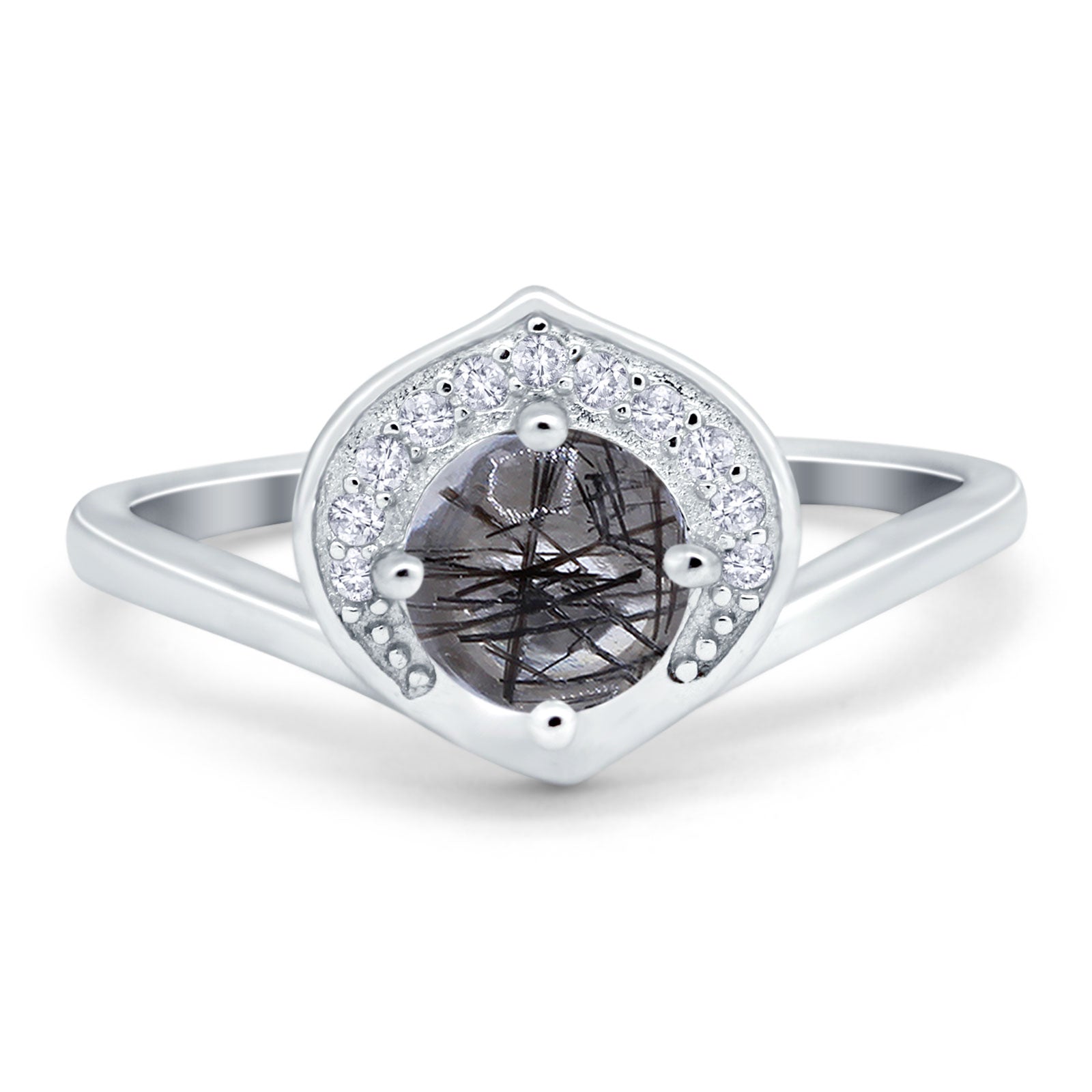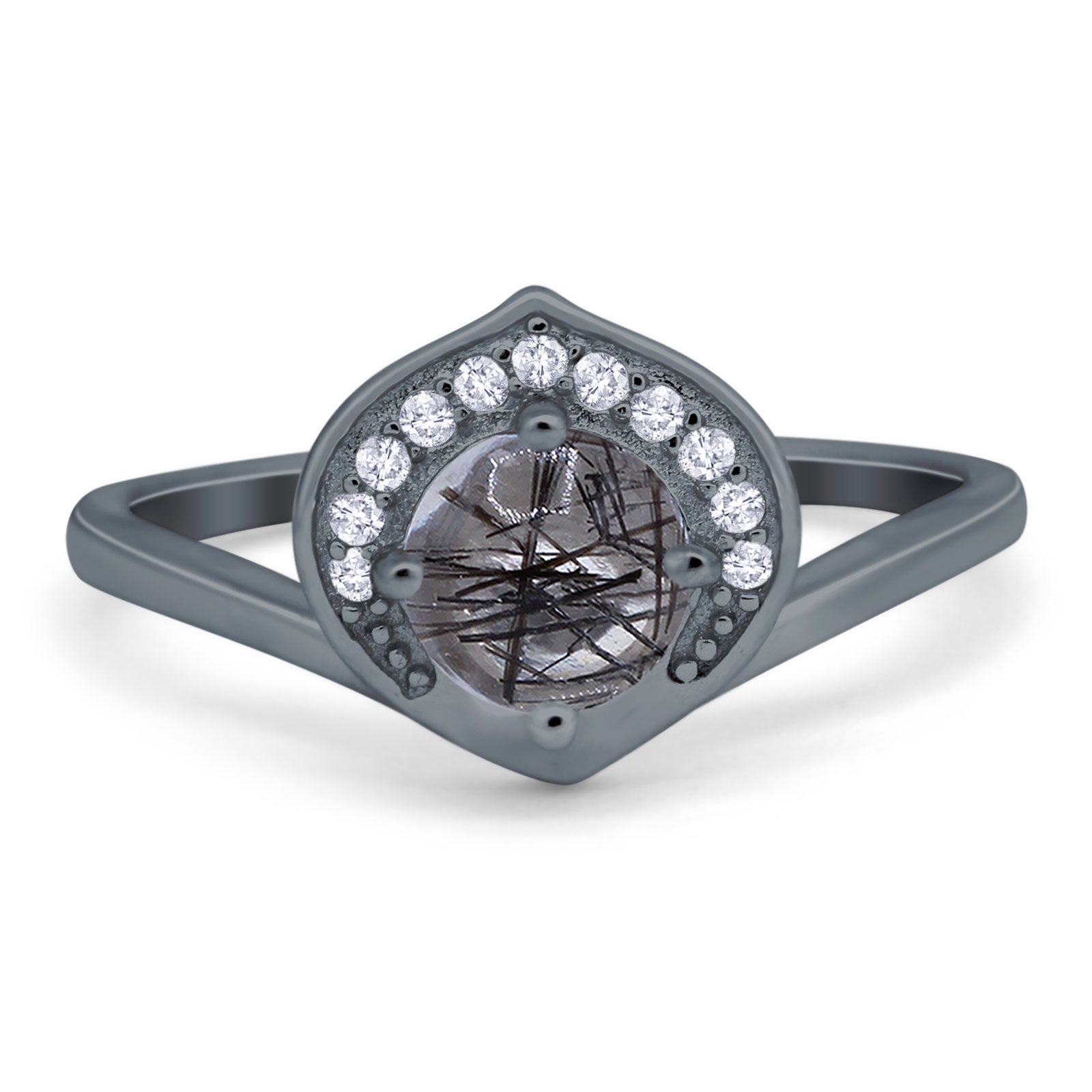 Natural Rutilated Quartz Black Tone Silver