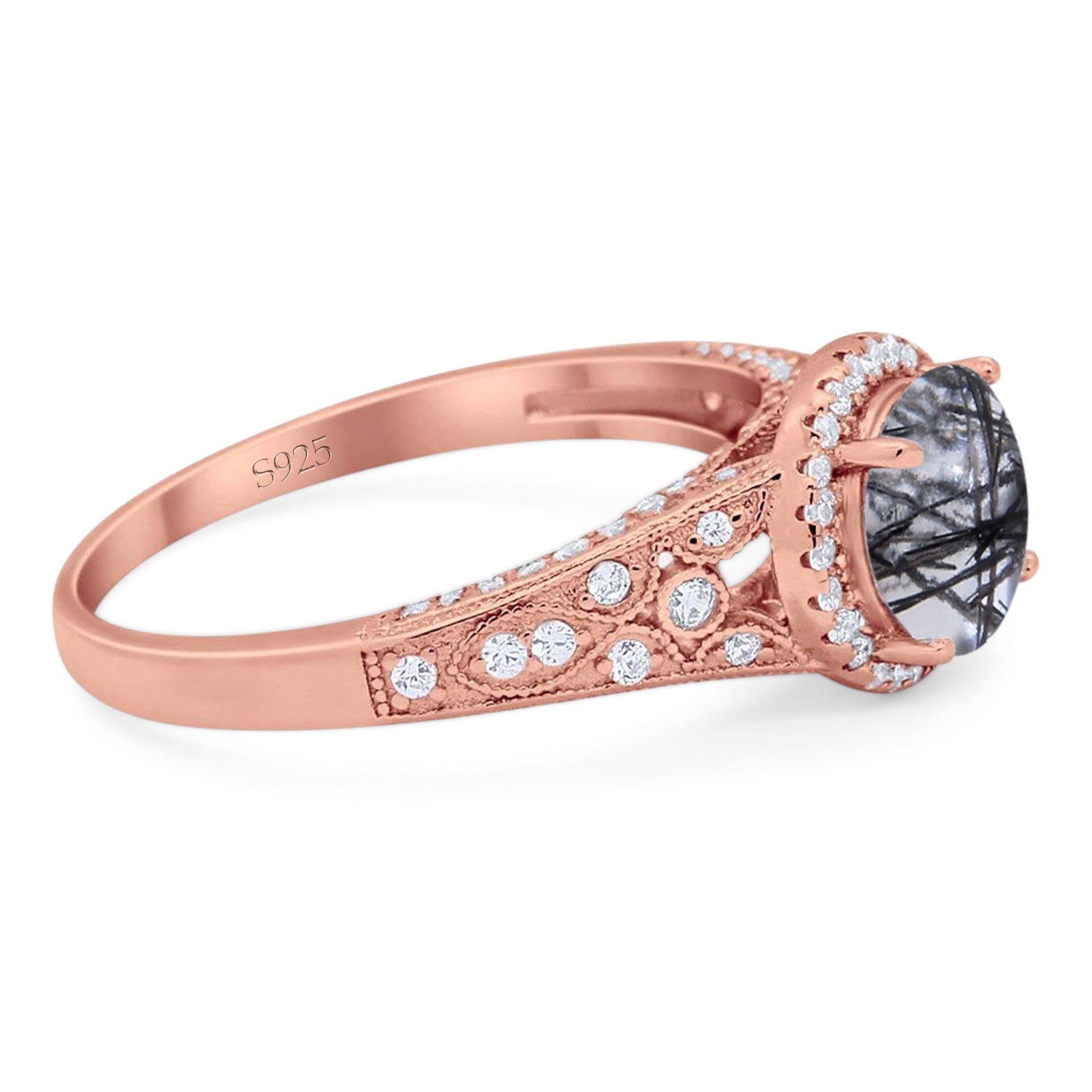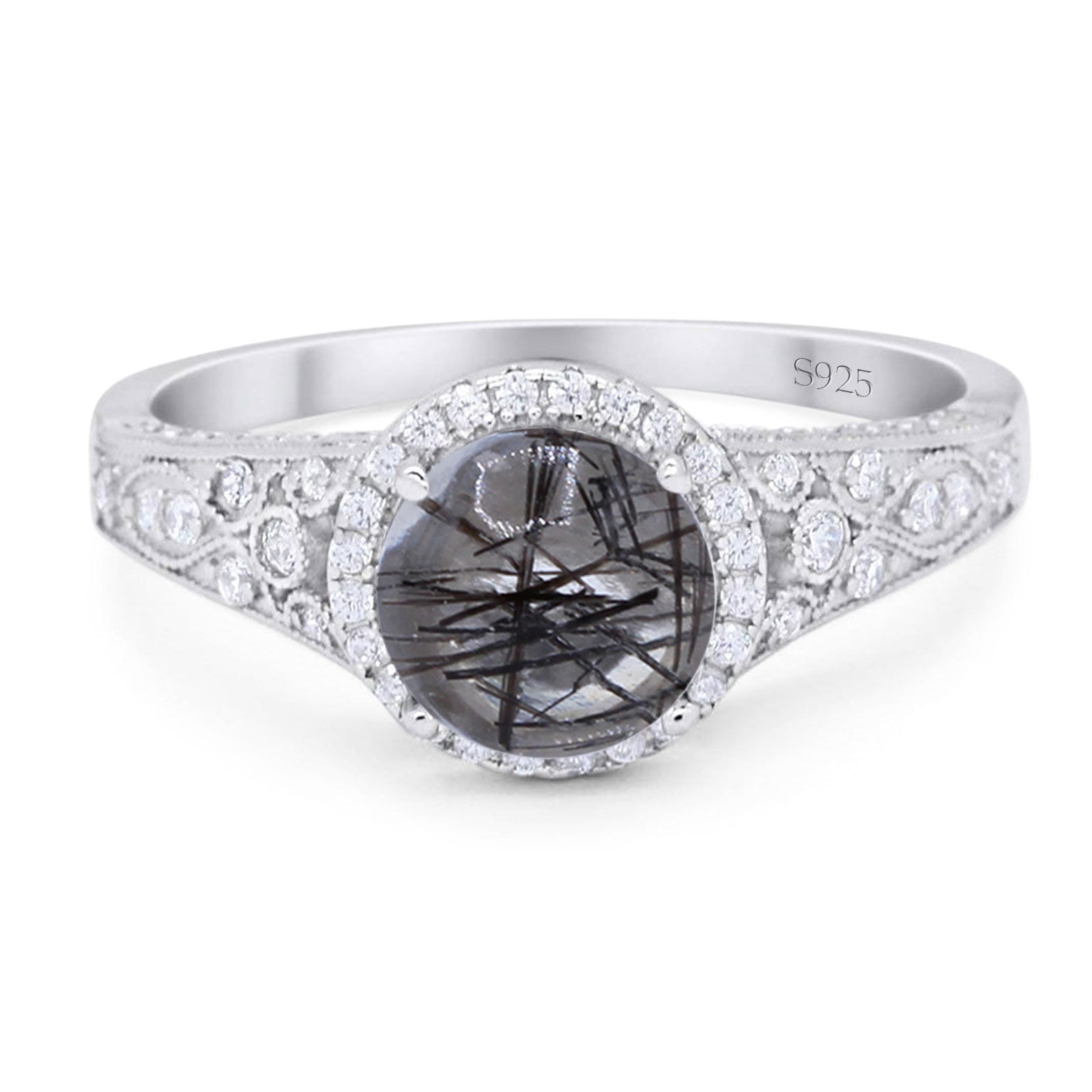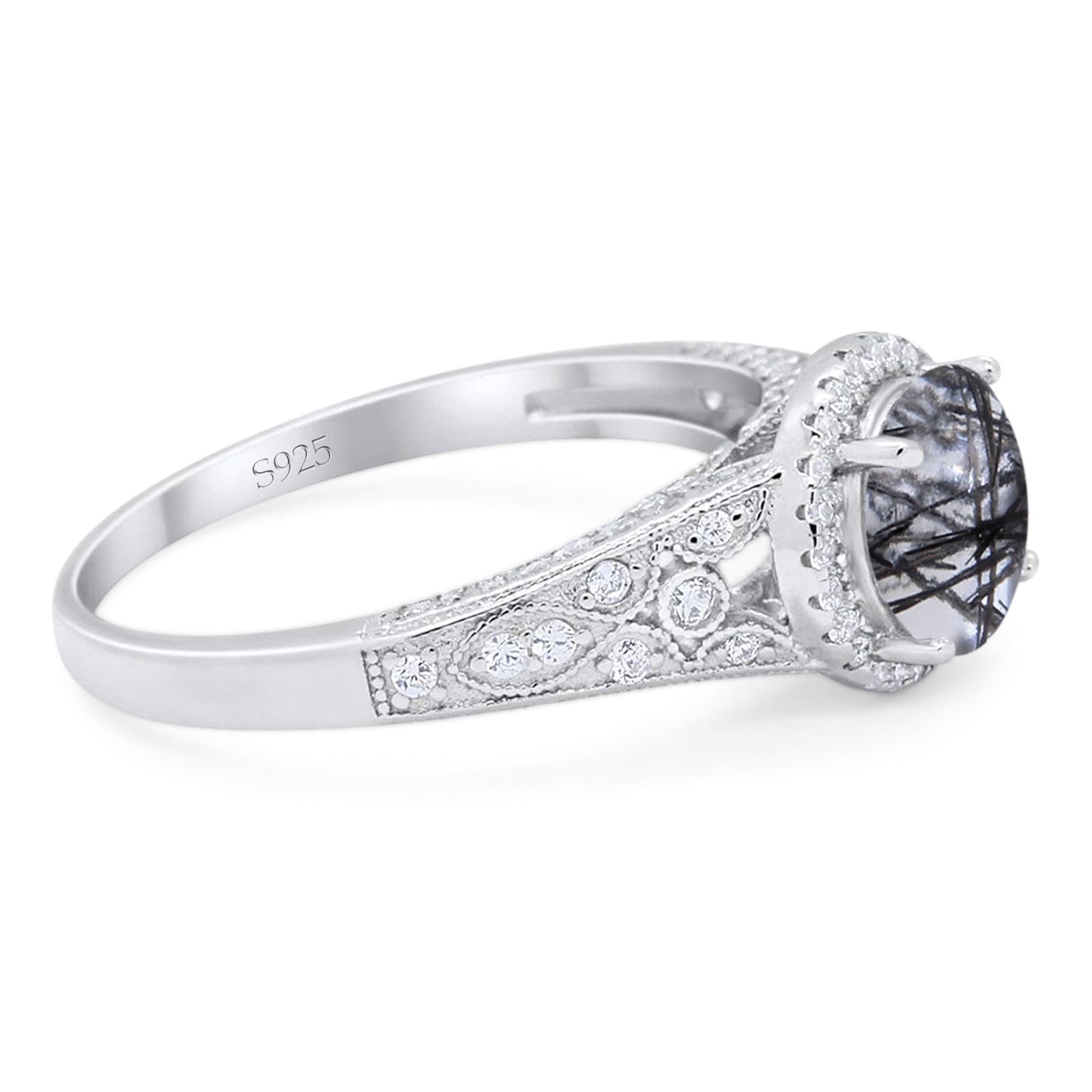 Vintage Style Round Natural Rutilated Quartz Wedding Ring 925 Sterling Silver