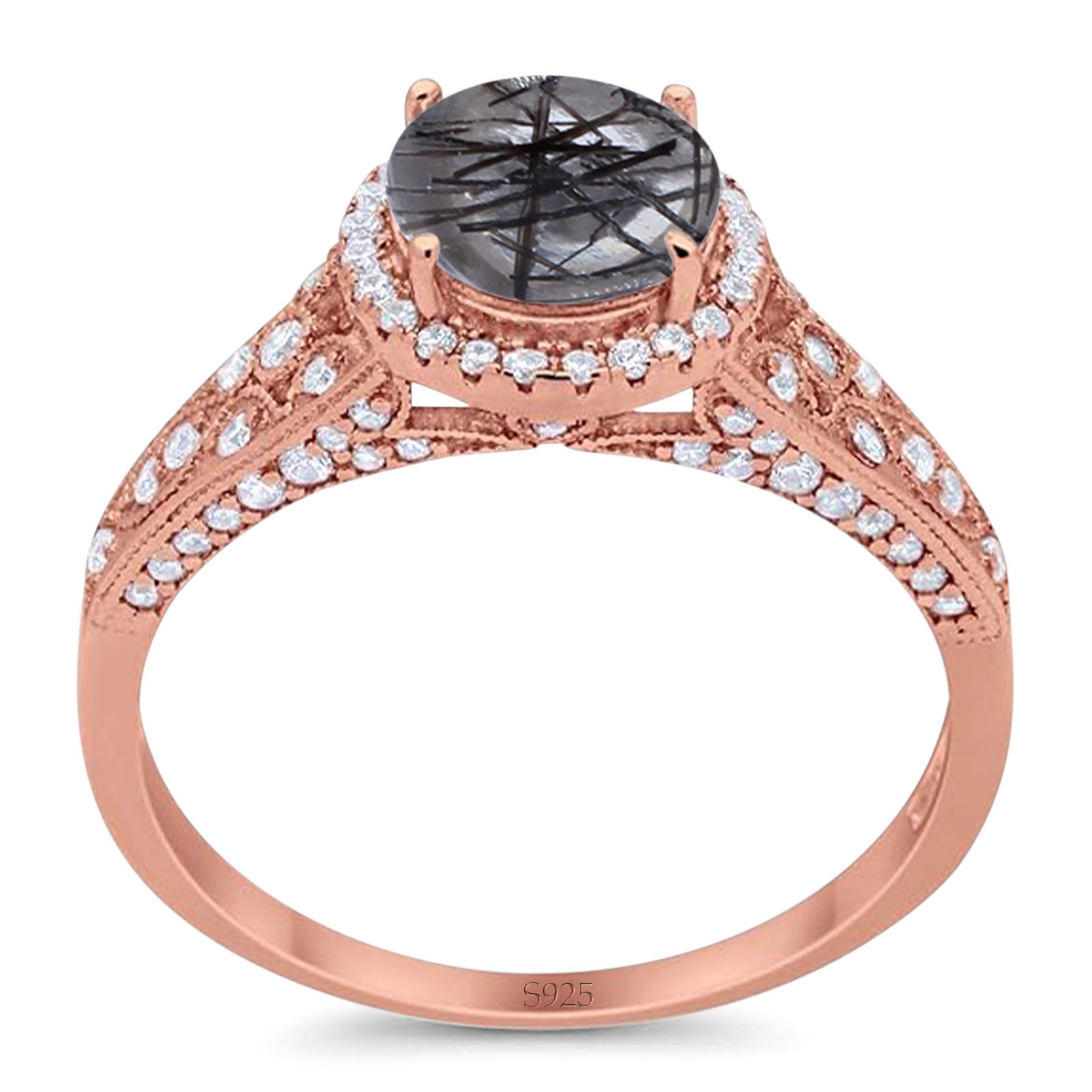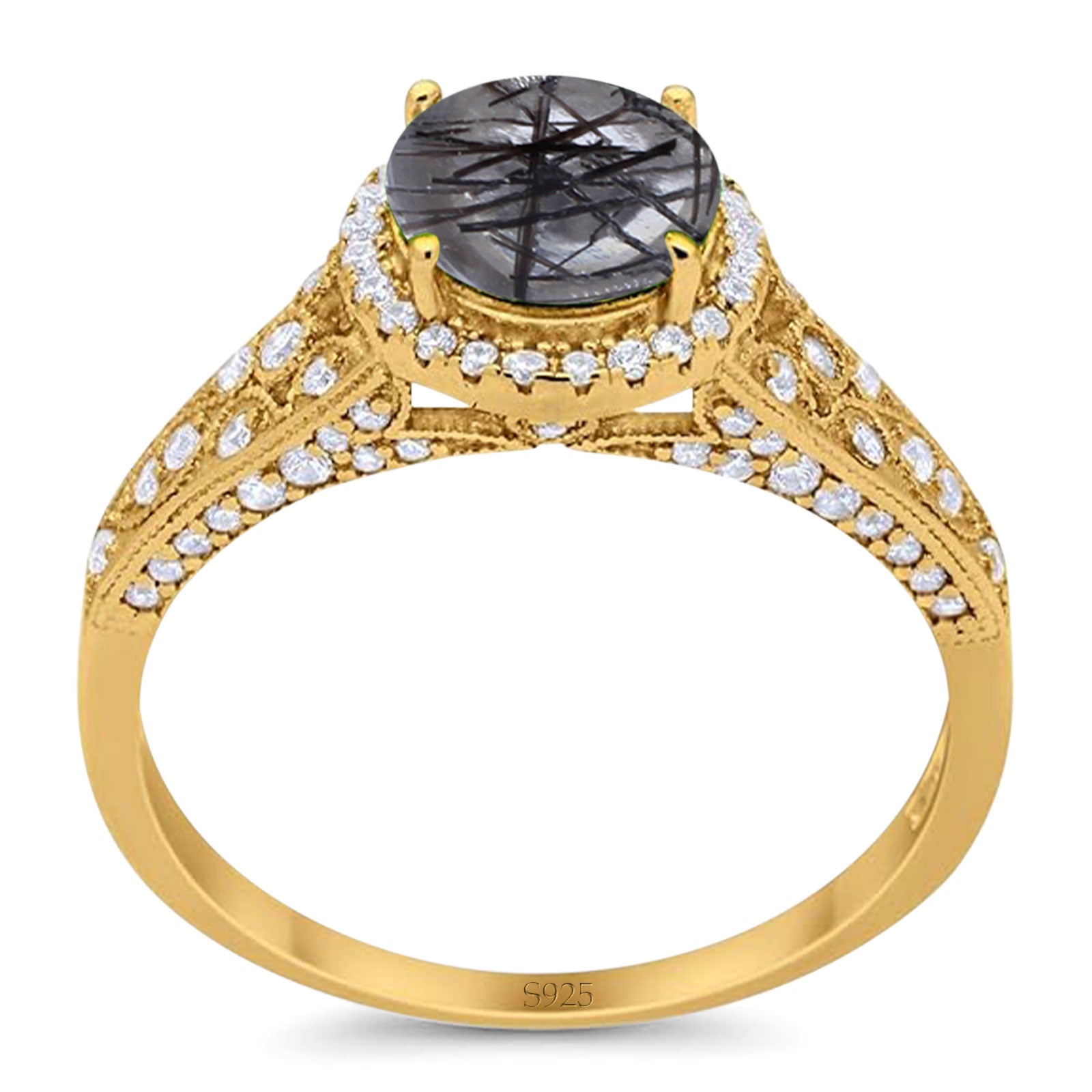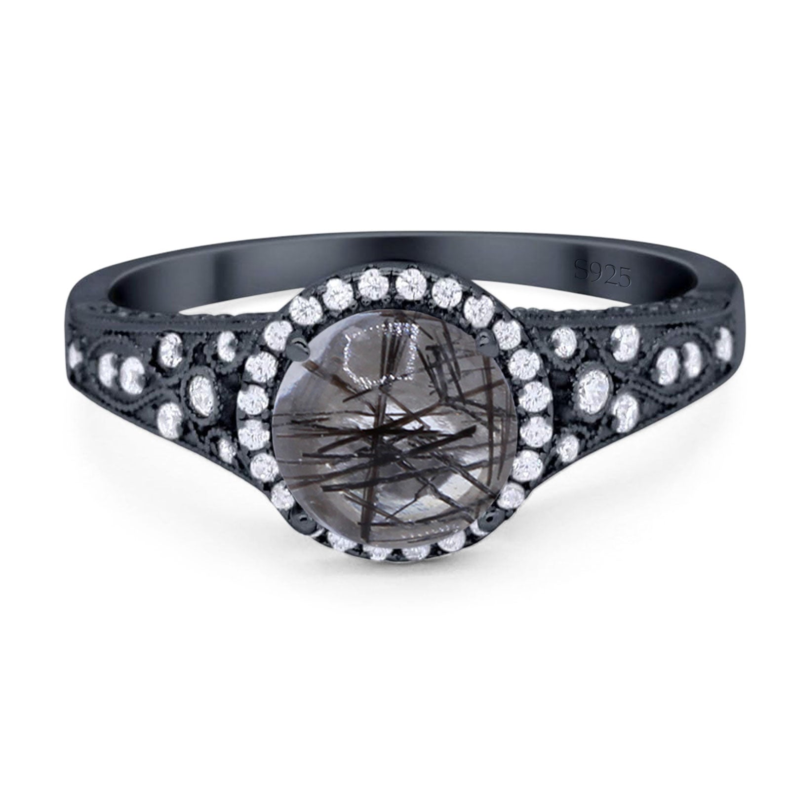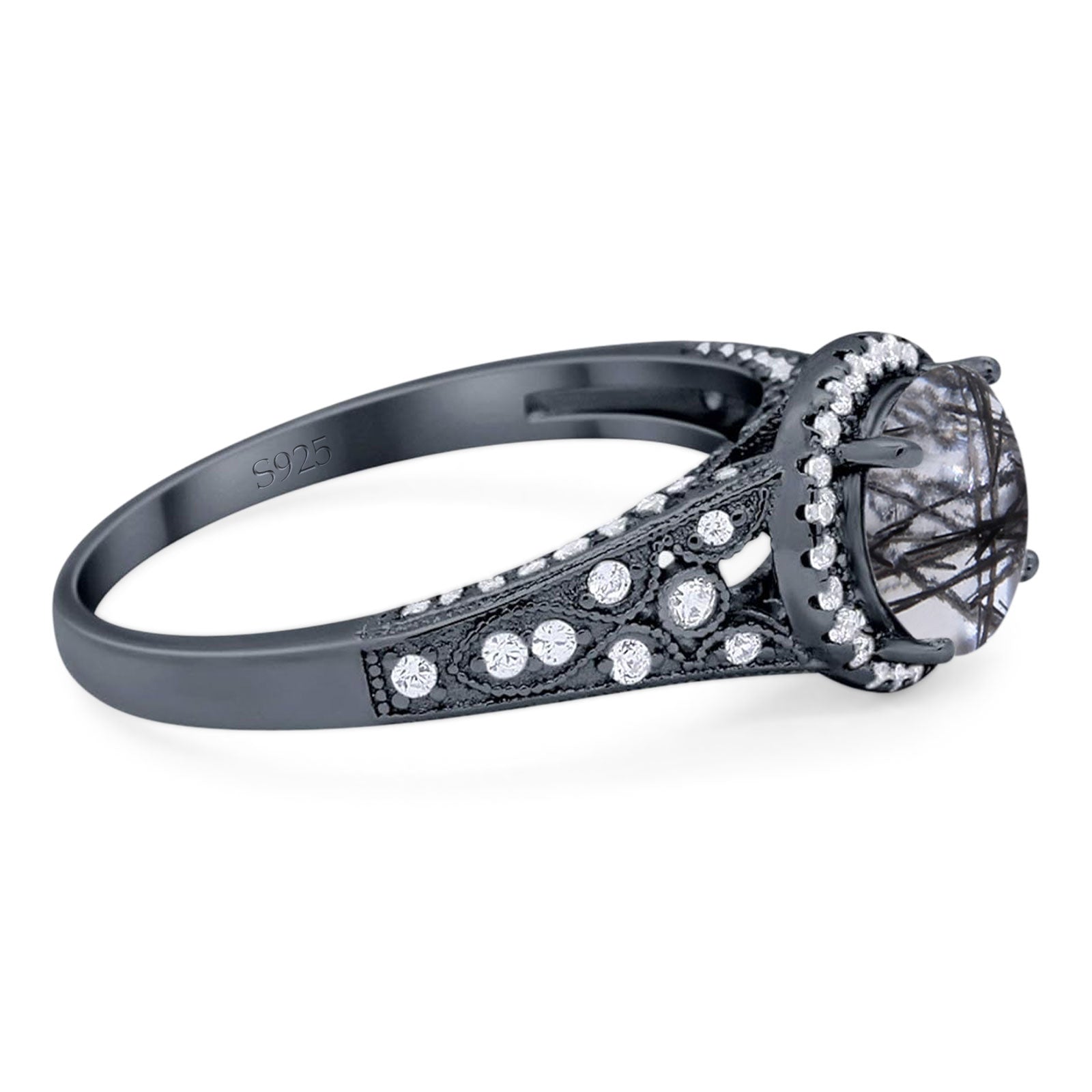 Vintage Style Round Natural Rutilated Quartz Wedding Ring 925 Sterling Silver