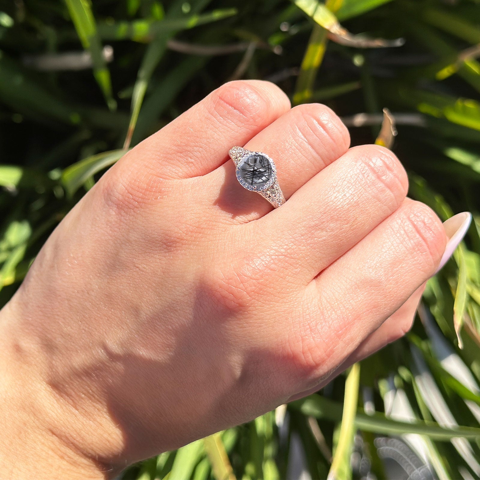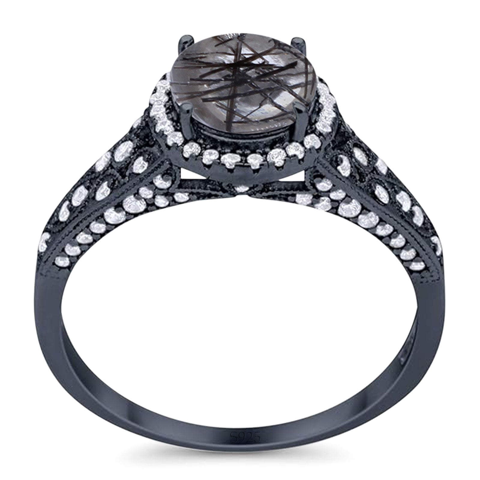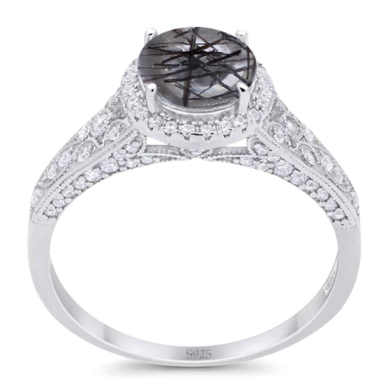 Natural Rutilated Quartz Black Tone Silver