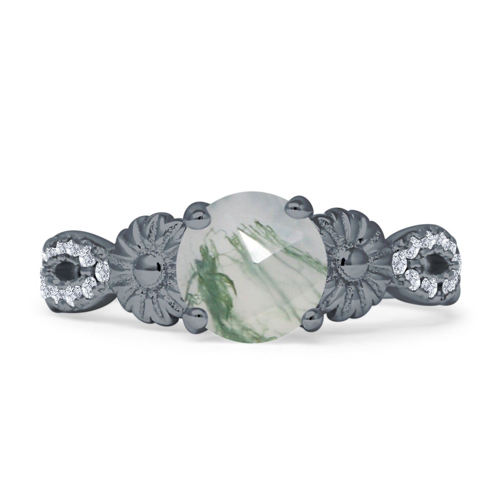 Product Description: Experience timeless elegance with our vintage style sunflower marquise round natural green moss agate ring. Crafted from solid 925 sterling silver, this ring features a captivating marquise-cut natural green moss agate, resembling a sunflower in bloom. The vintage-inspired design adds a touch of nostalgia, making it a perfect blend of classic and contemporary. Elevate your style and celebrate special moments with this exquisite piece that effortlessly combines sophistication and charm.
