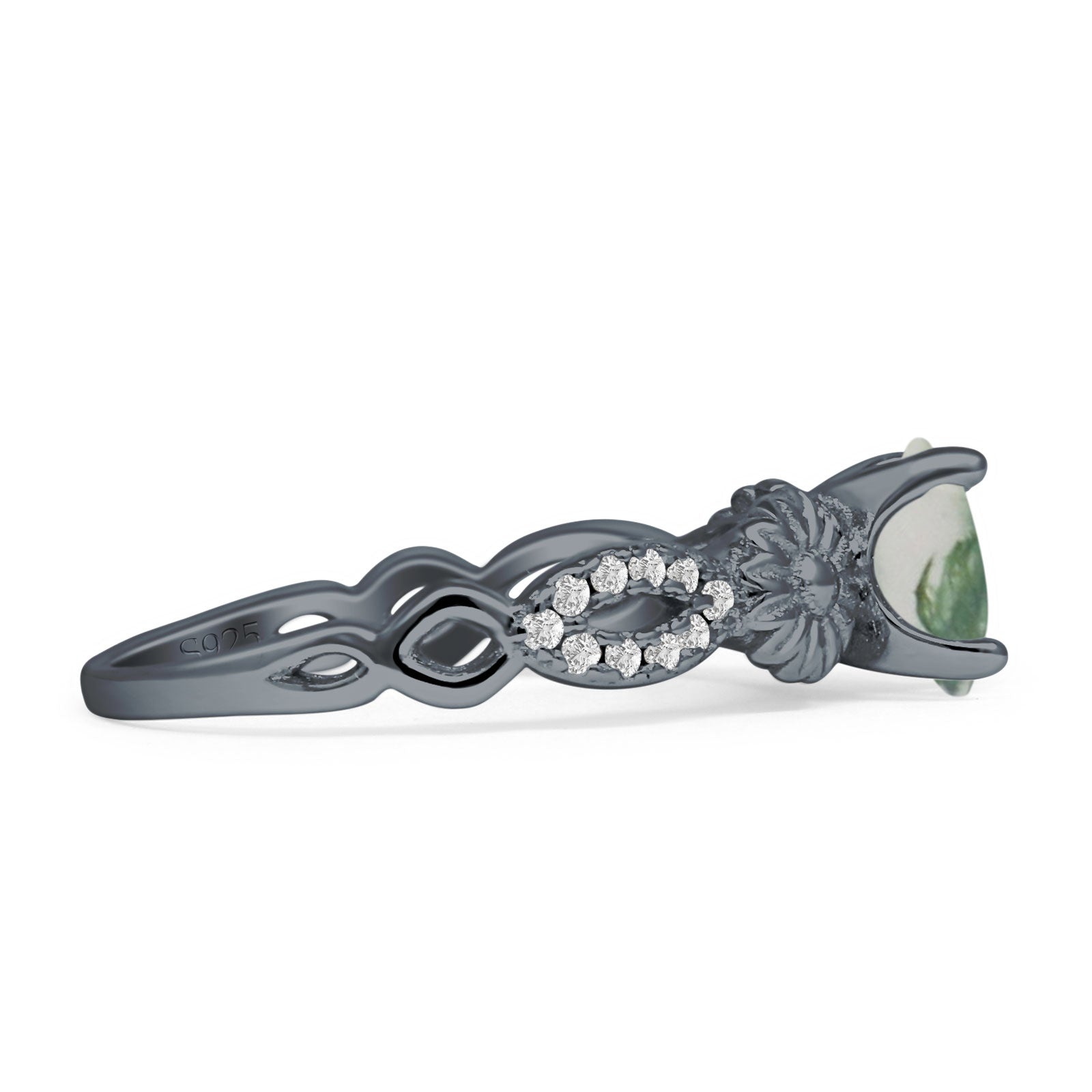 Natural Green Moss Agate Black Tone Silver