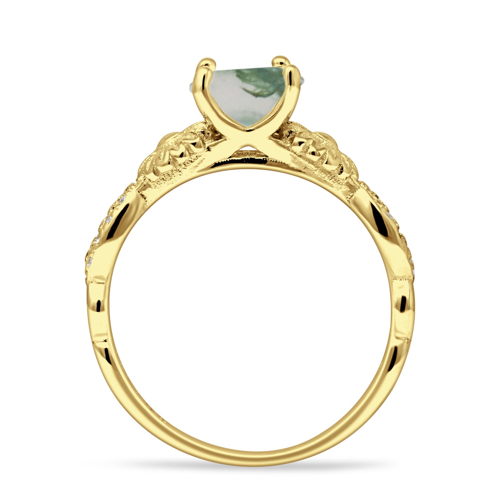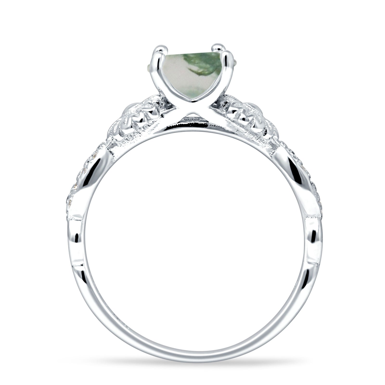 Natural Green Moss Agate Engagement Ring