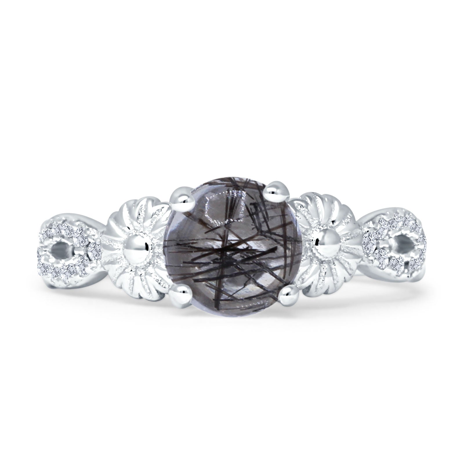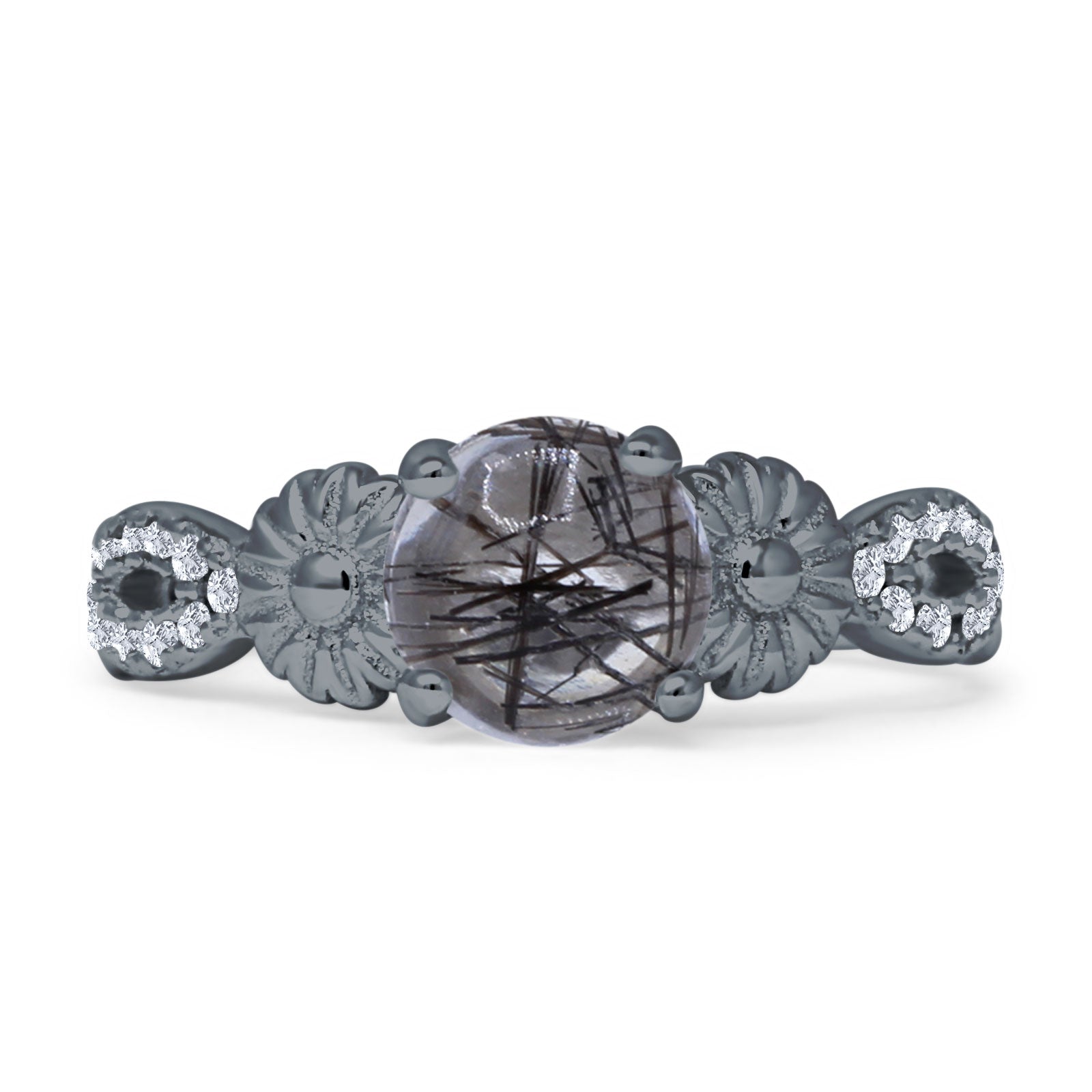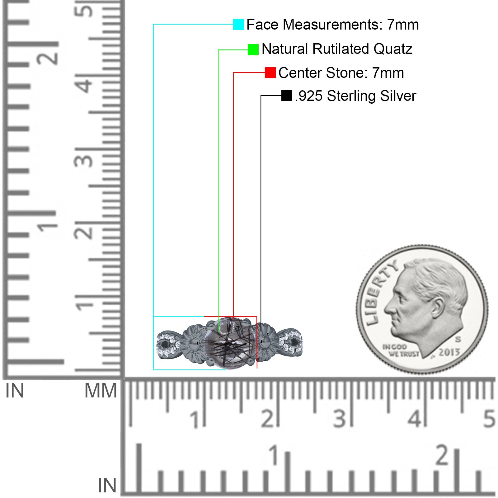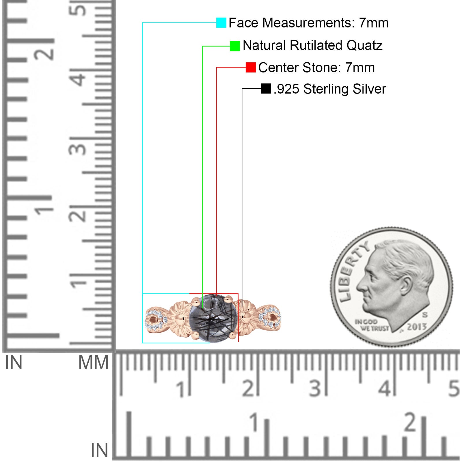 Vintage Style Sunflower Marquise Round Natural Rutilated Quartz Ring 925 Sterling Silver