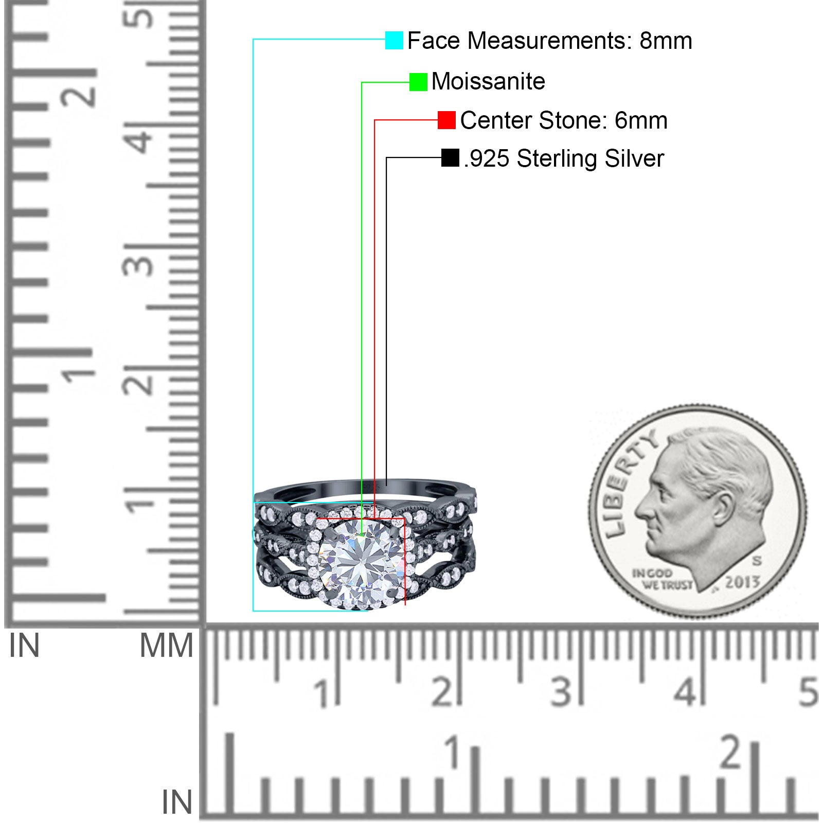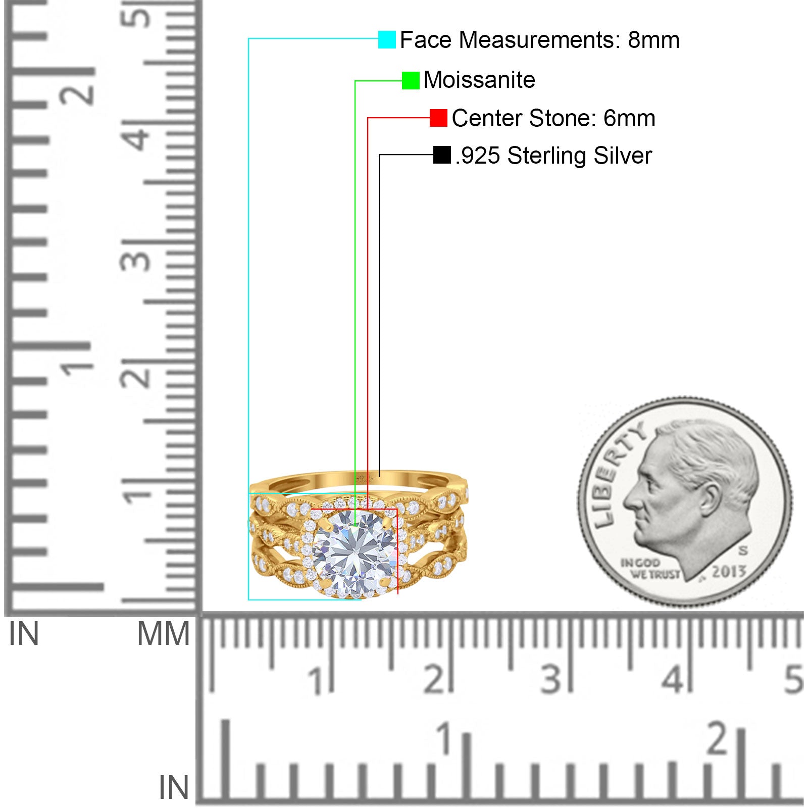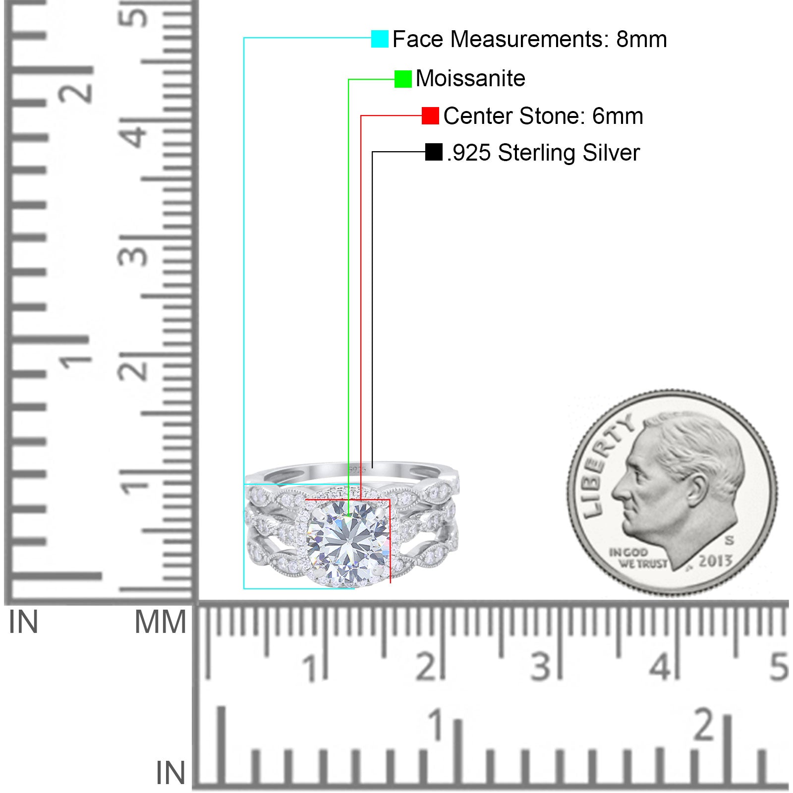 Vintage Style Three Piece Round Moissanite Bridal Ring 925 Sterling Silver