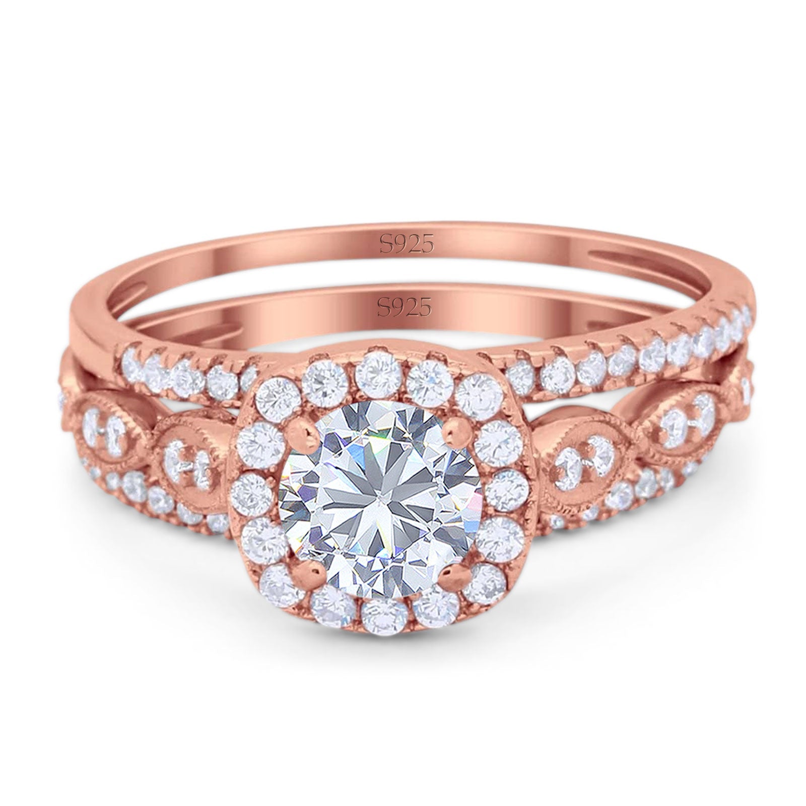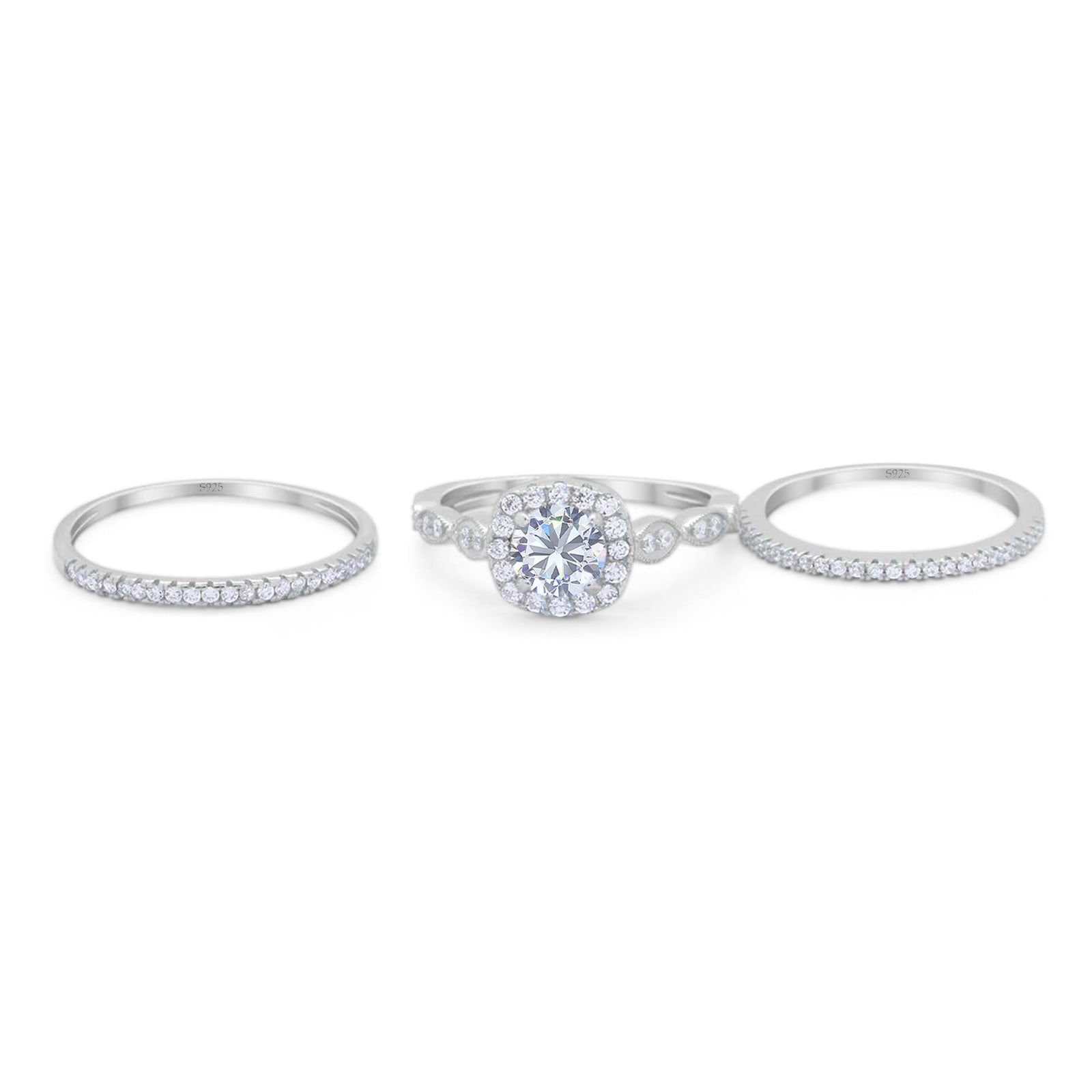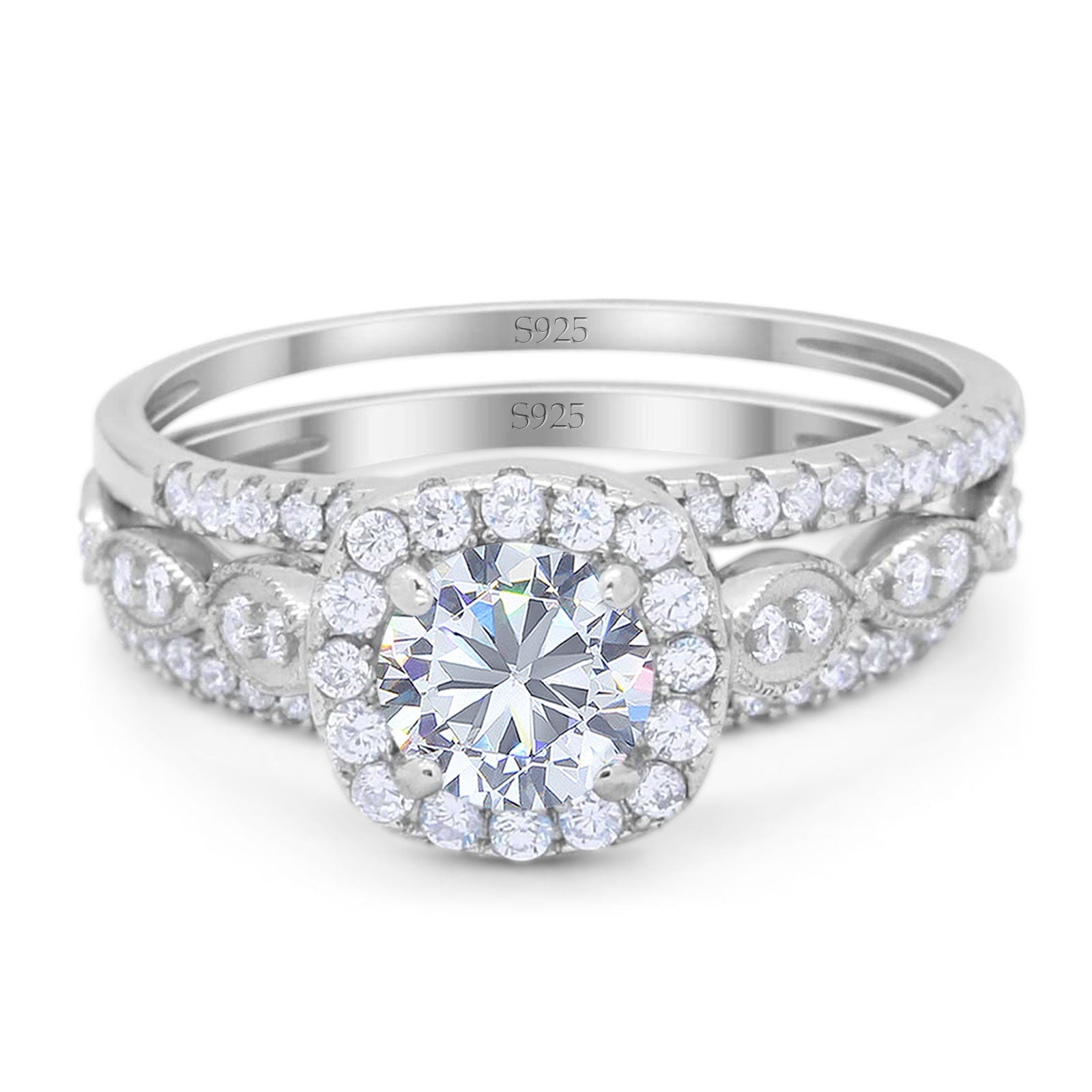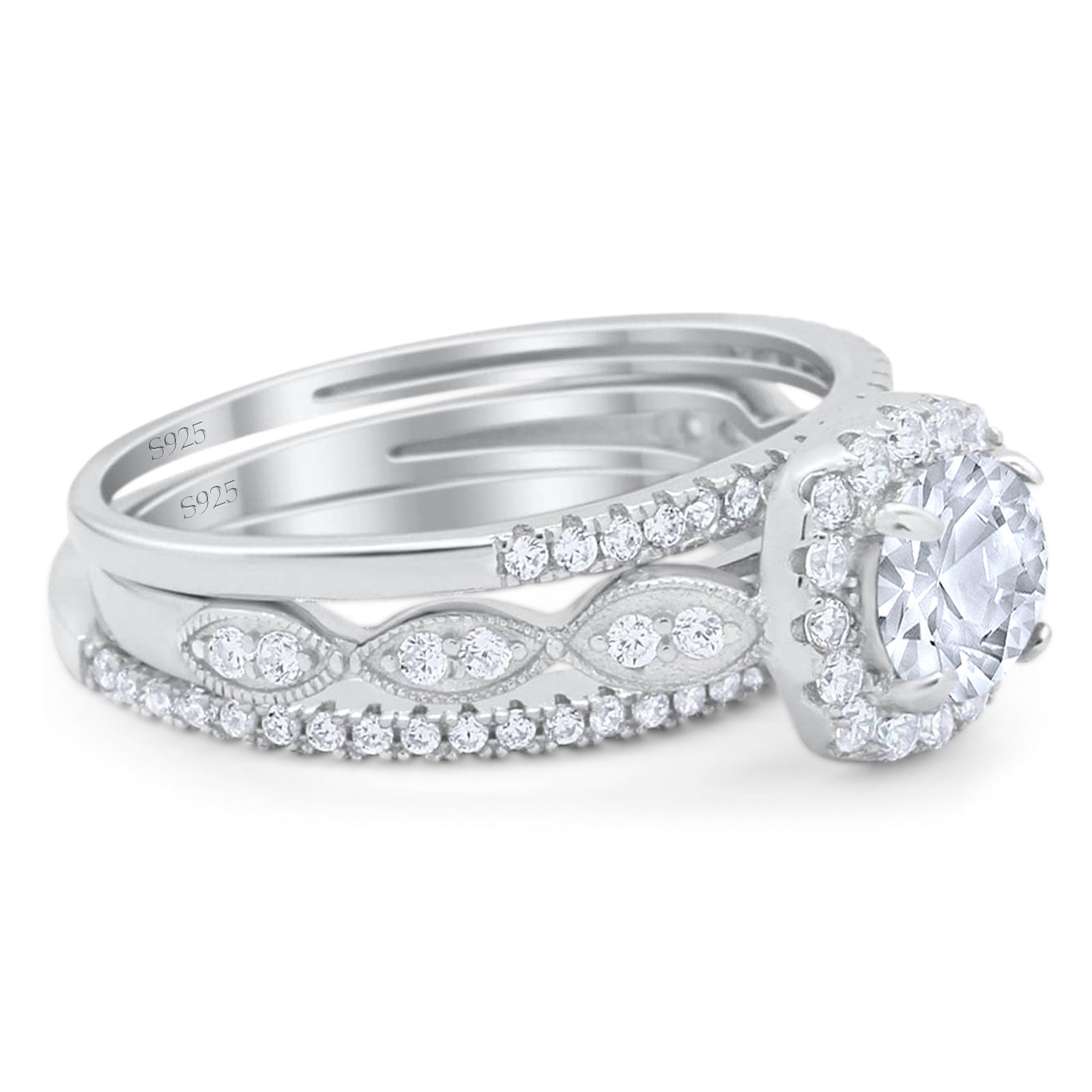 Vintage Style Three Piece Round Moissanite Bridal Ring 925 Sterling Silver