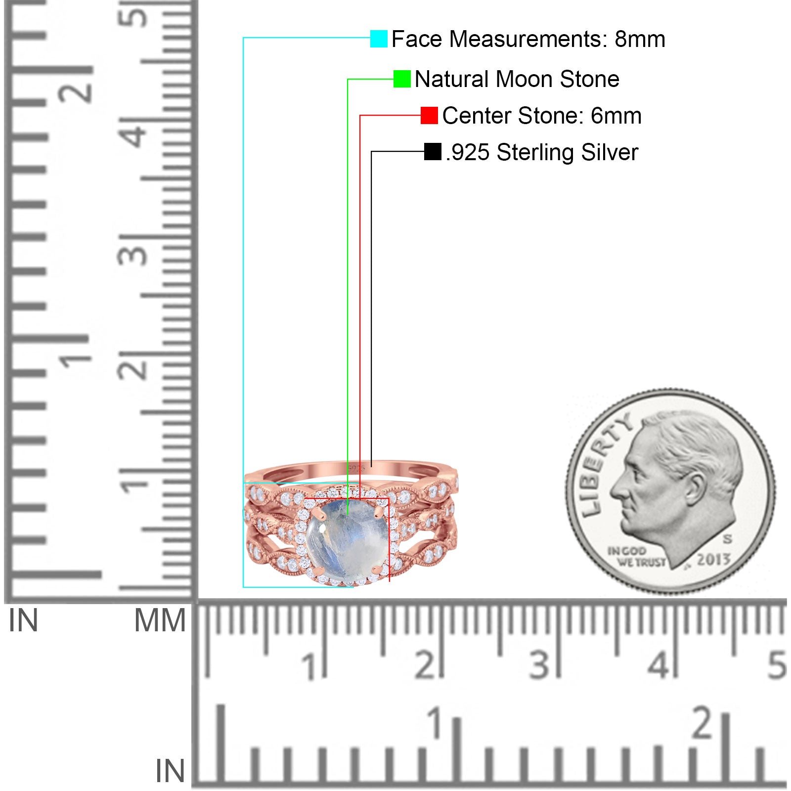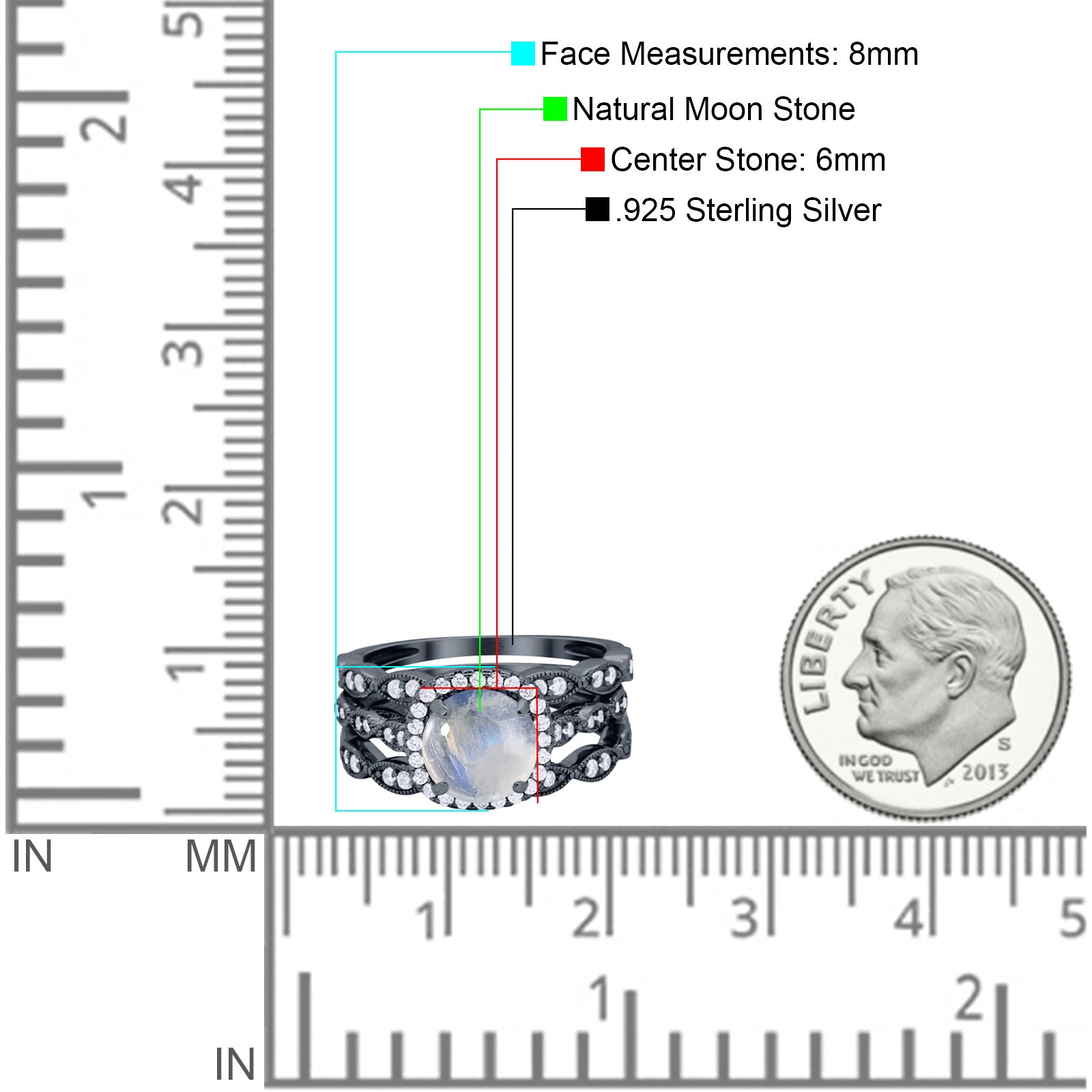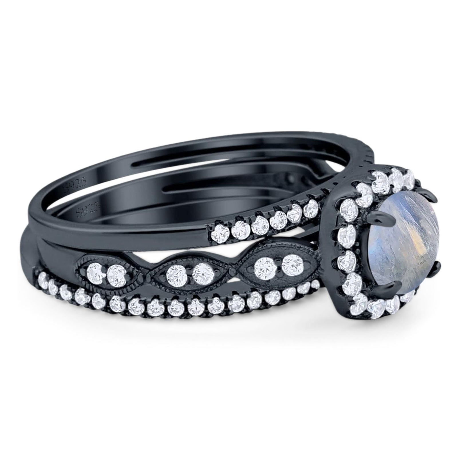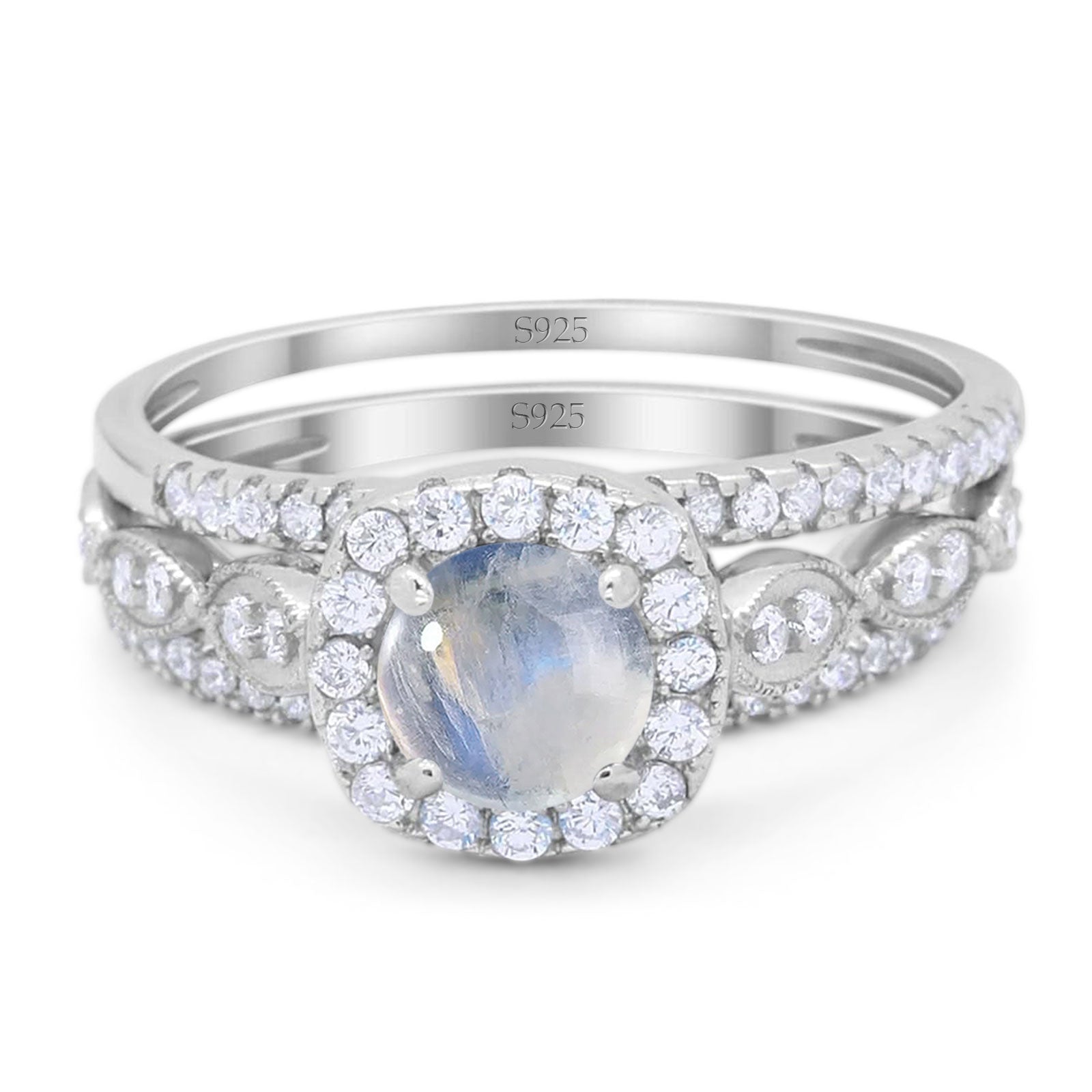 Vintage Style Three Piece Round Natural Moonstone Bridal Ring 925 Sterling Silver