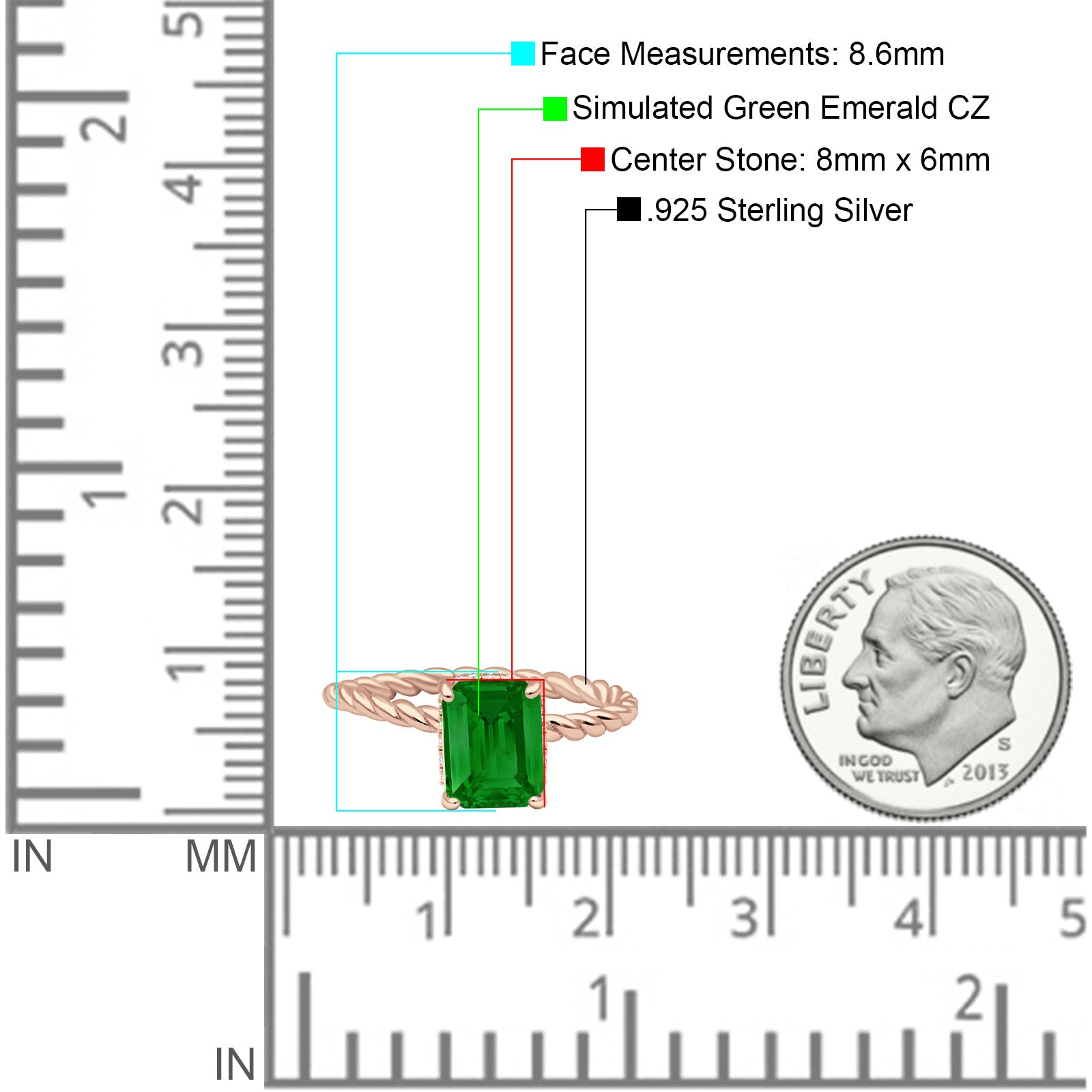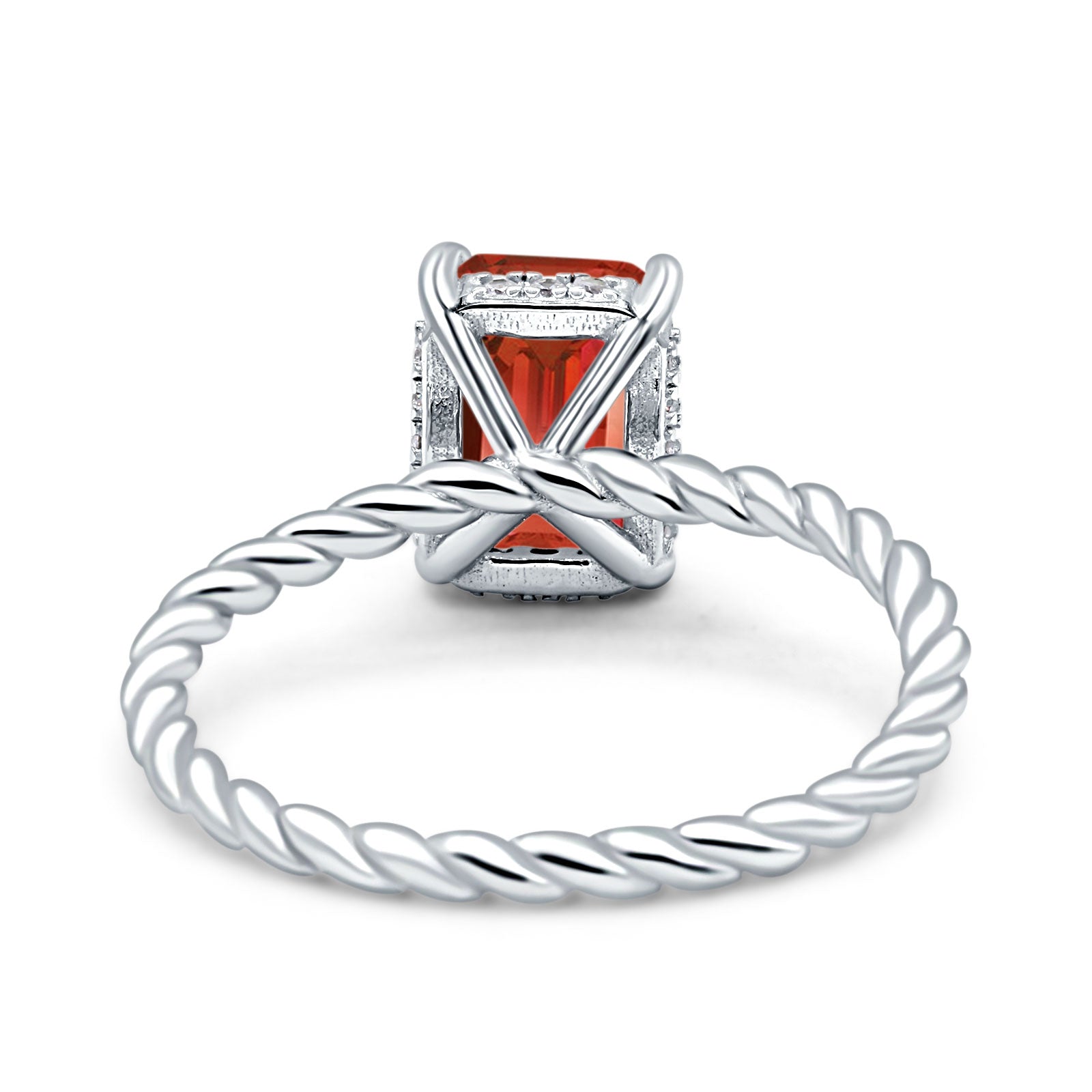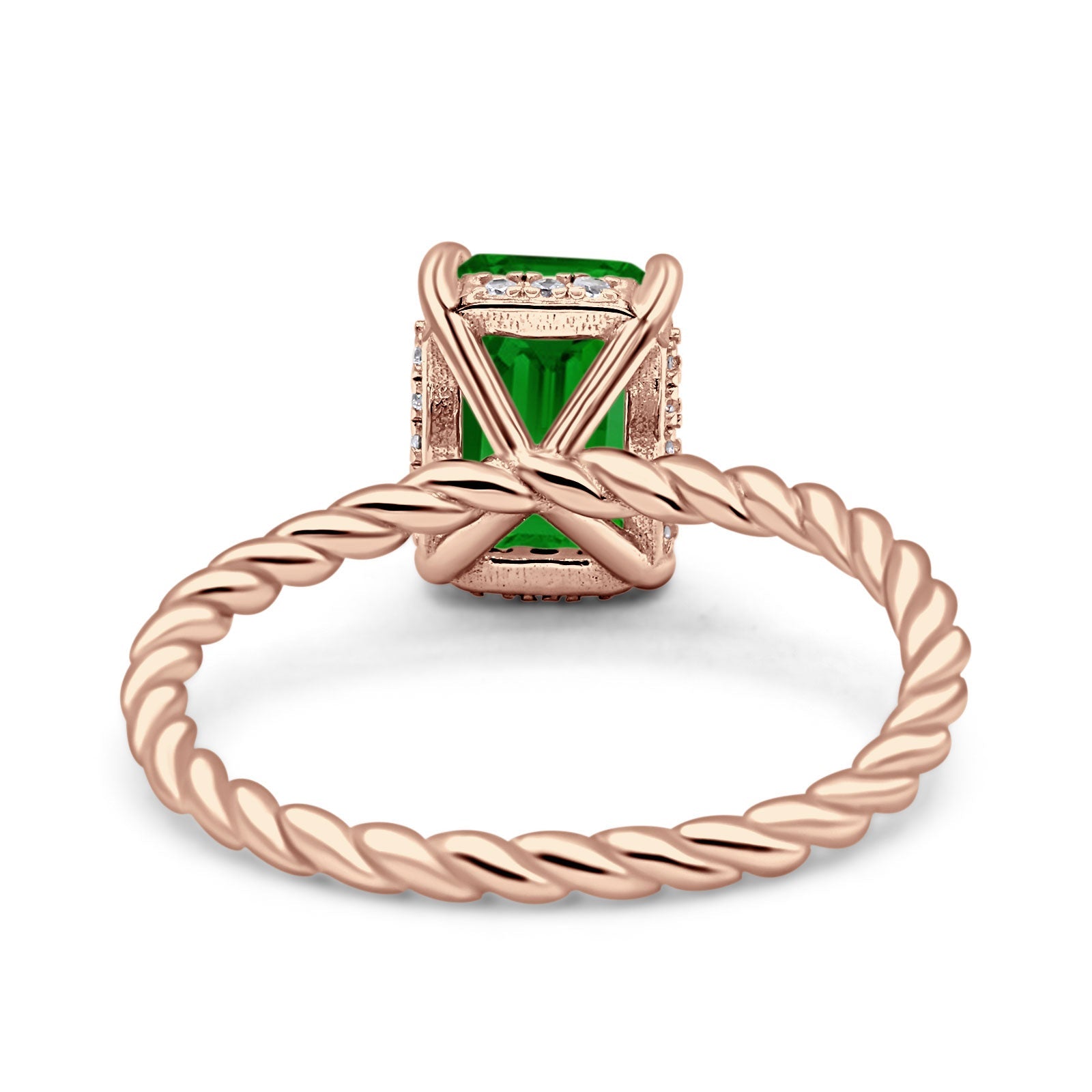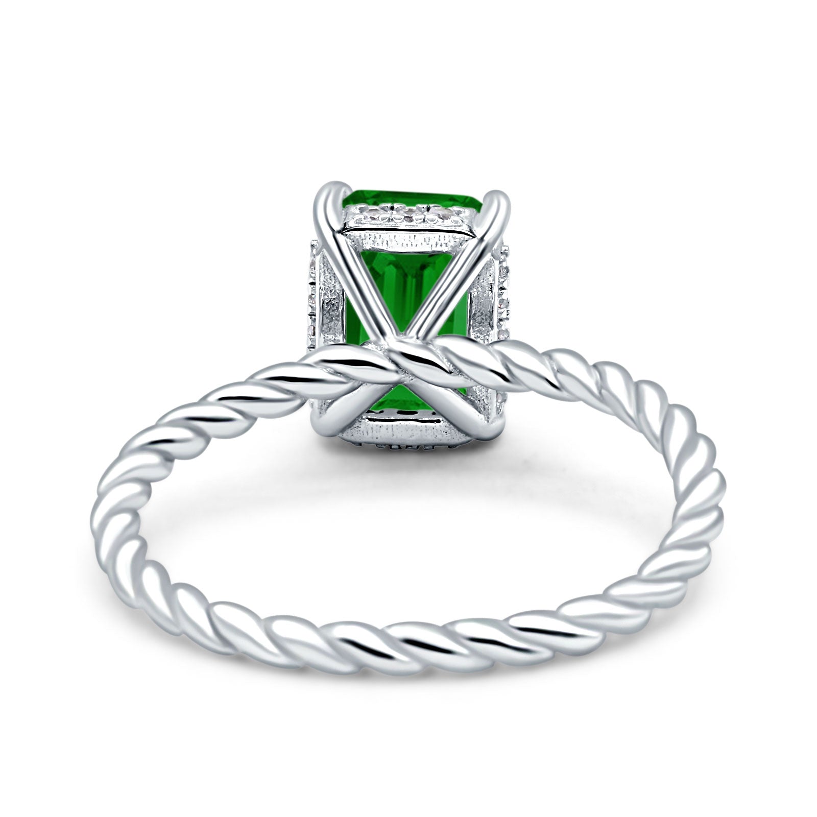 Vintage Twisted Band Emerald Cut Engagement Ring Simulated Cubic Zirconia 925 Sterling Silver