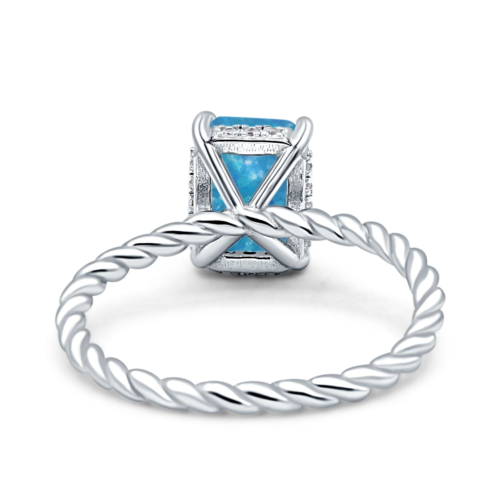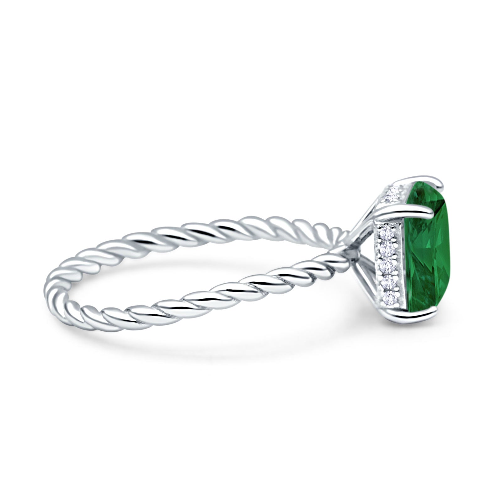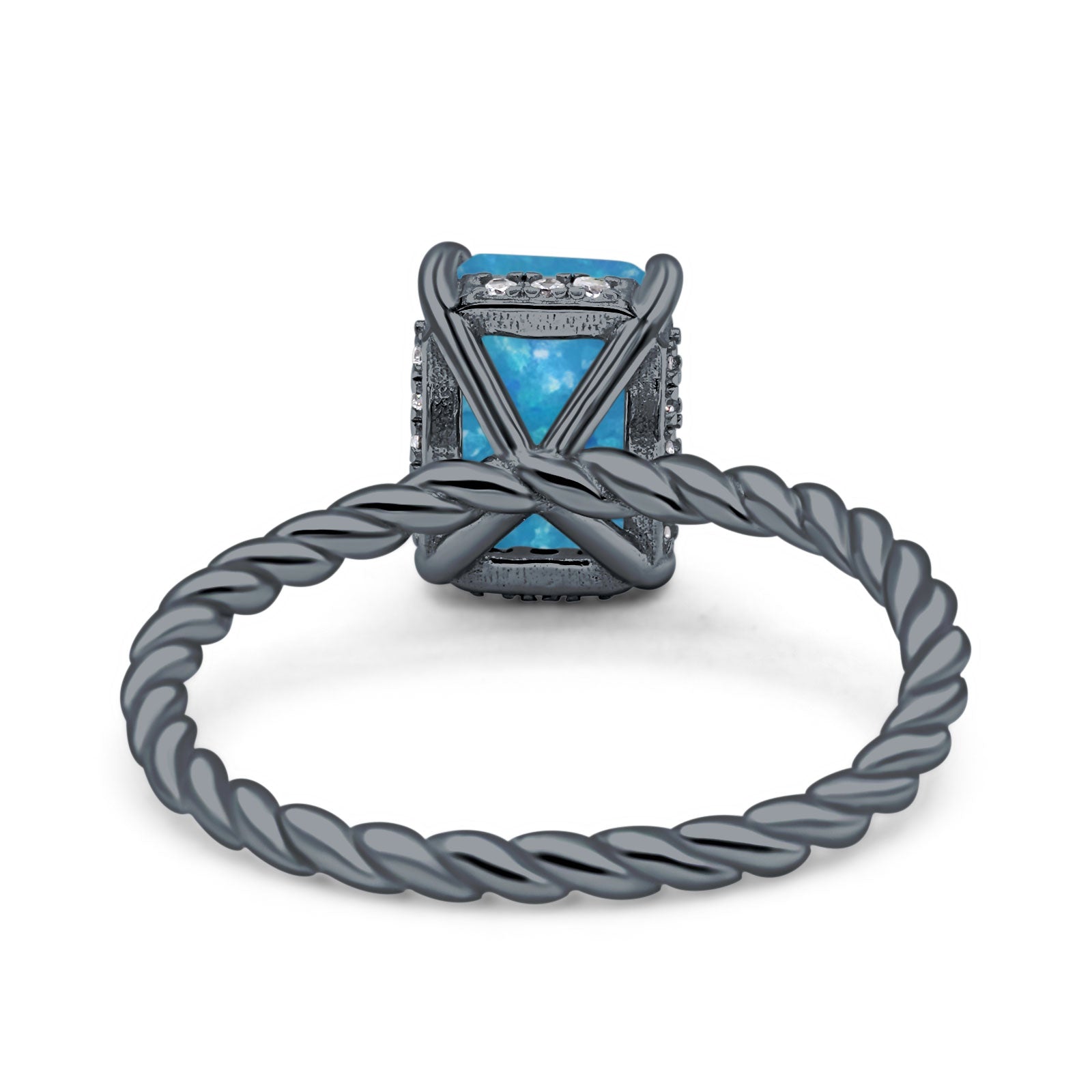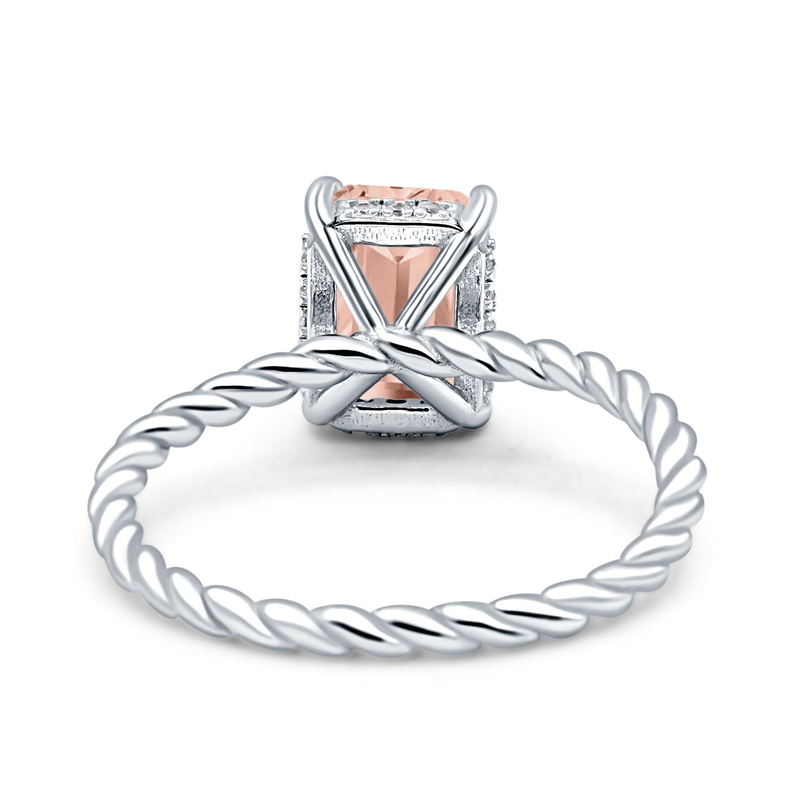 Vintage Twisted Band Emerald Cut Engagement Ring Simulated Cubic Zirconia 925 Sterling Silver