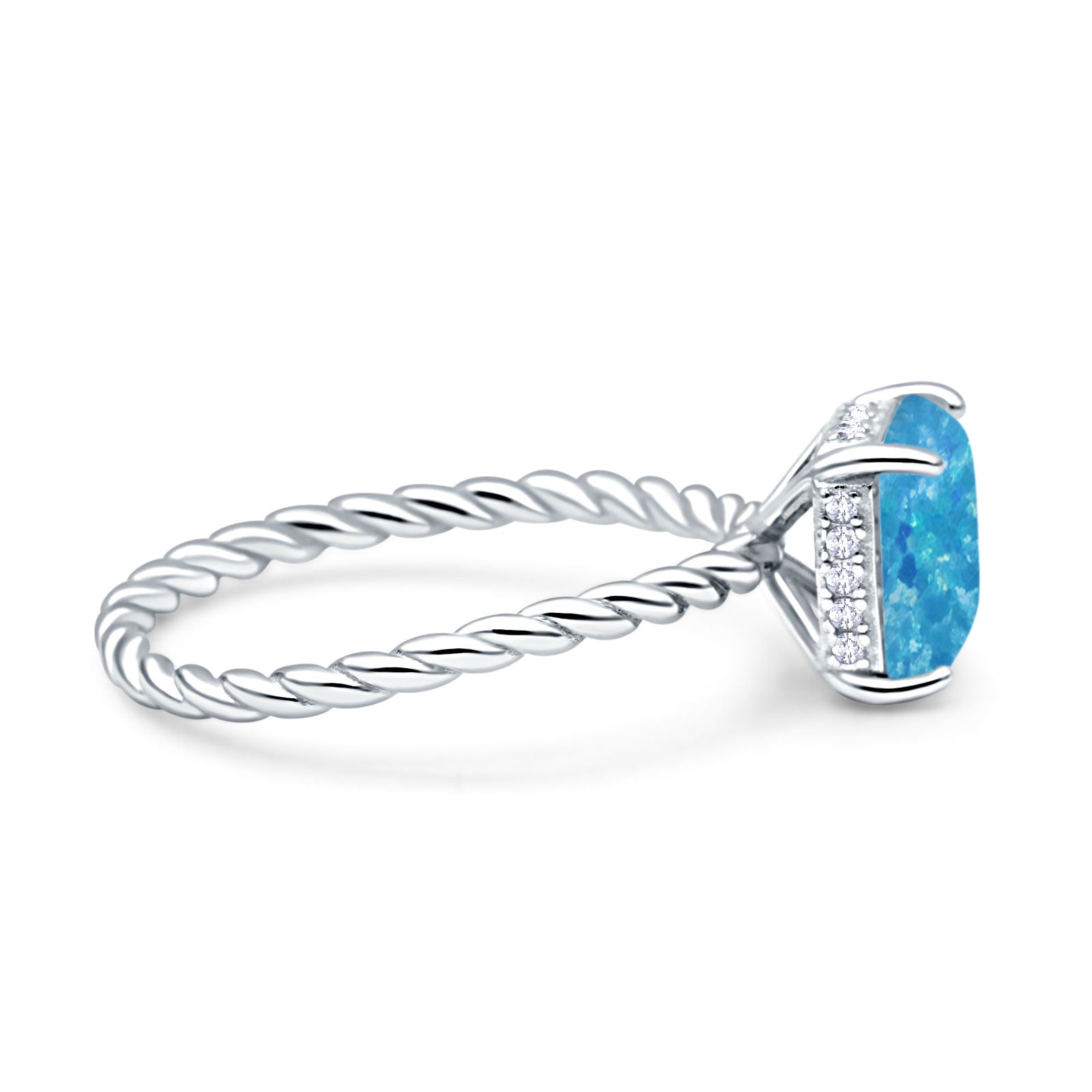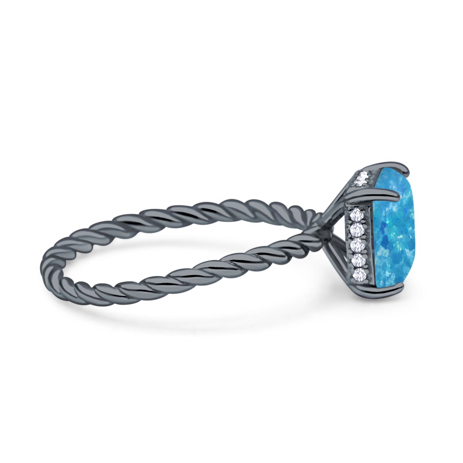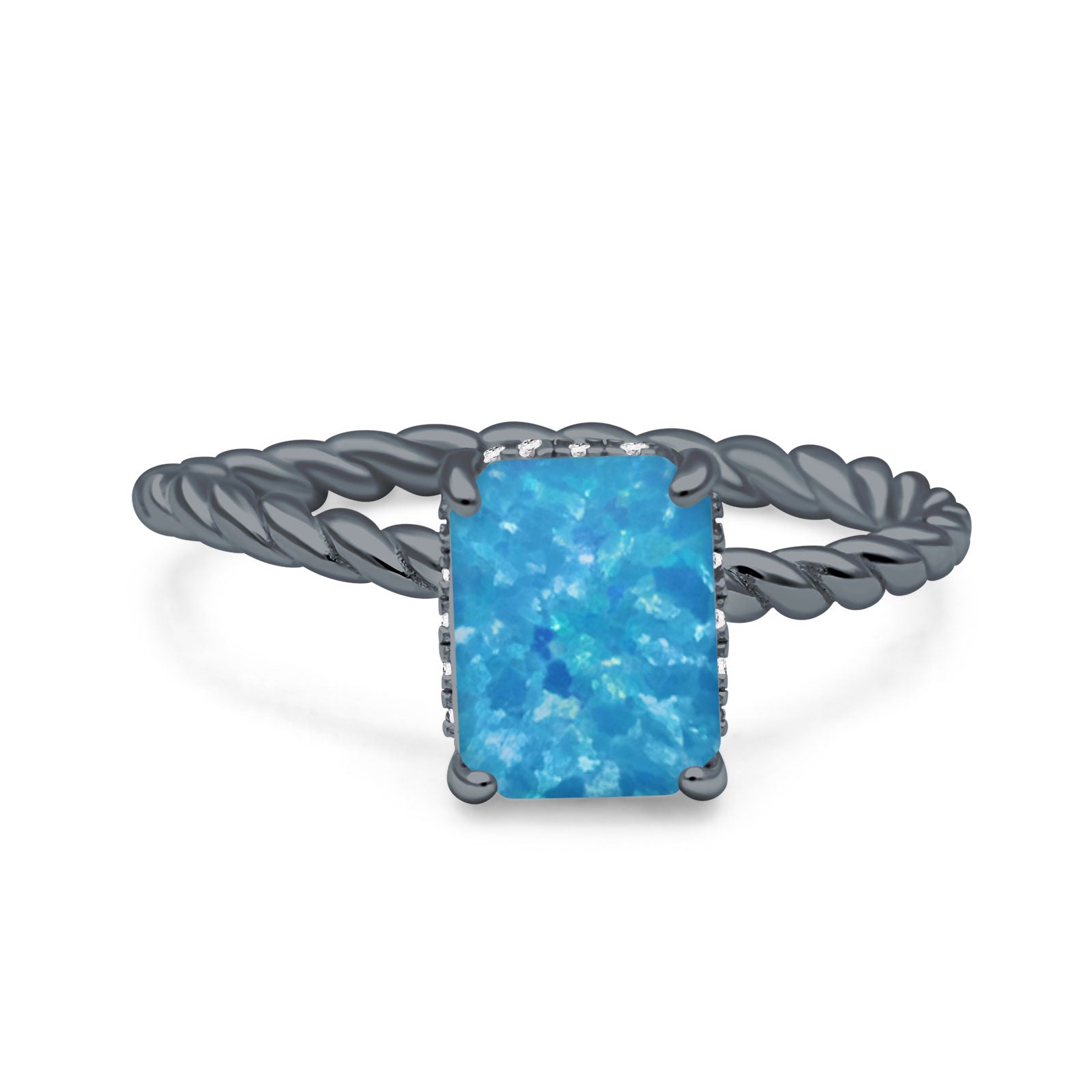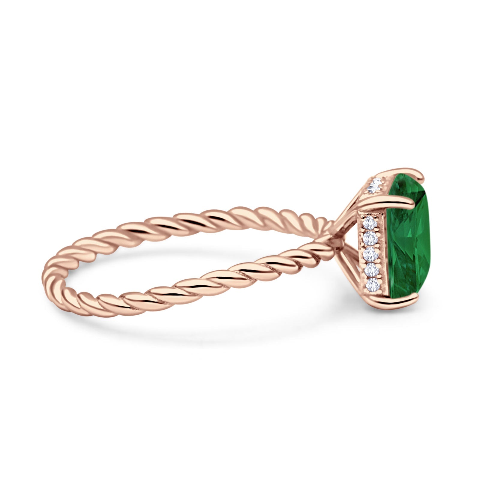 Vintage Twisted Band Emerald Cut Engagement Ring Simulated Cubic Zirconia 925 Sterling Silver