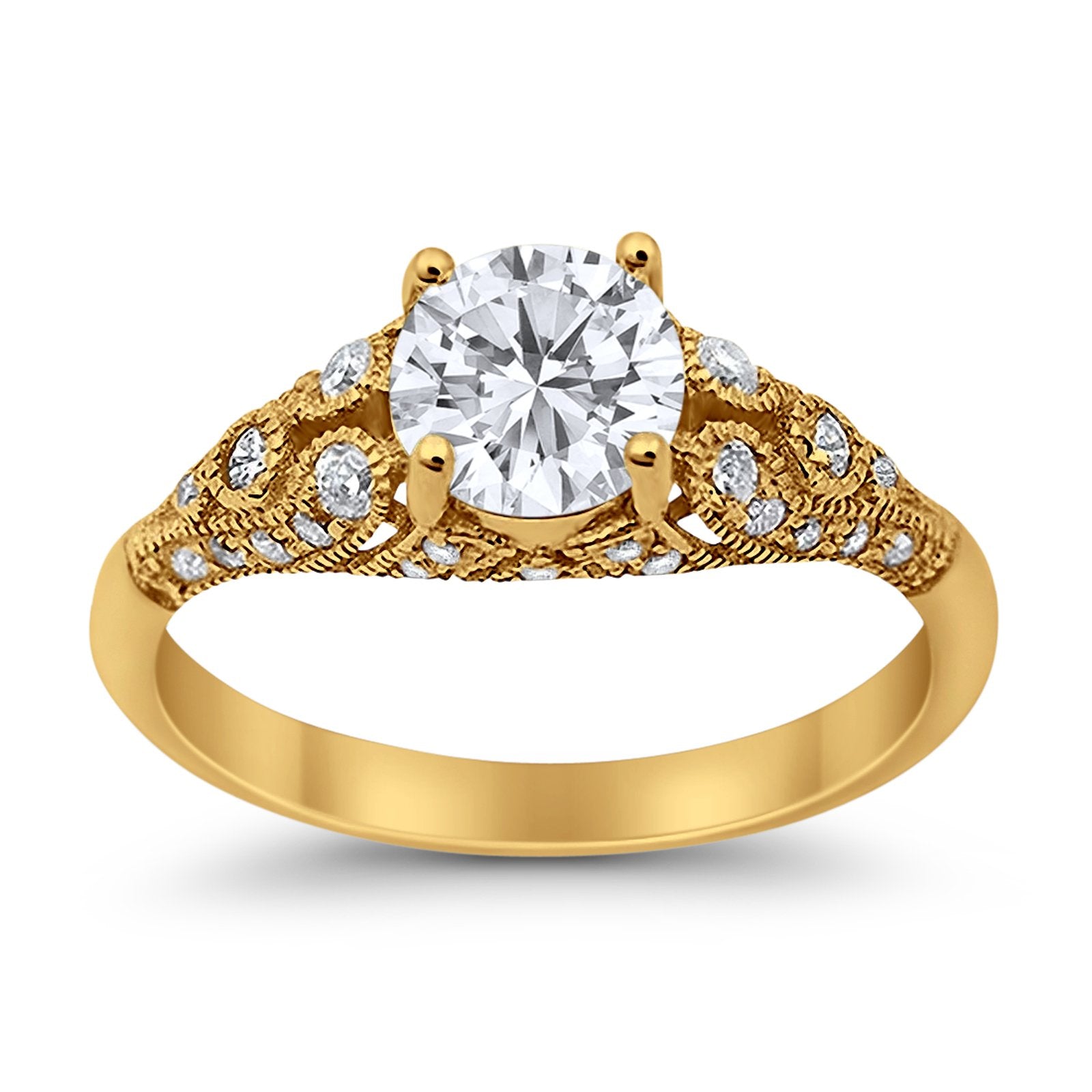 Vintage Wedding Ring Round Cubic Zirconia 925 Sterling Silver RC105152