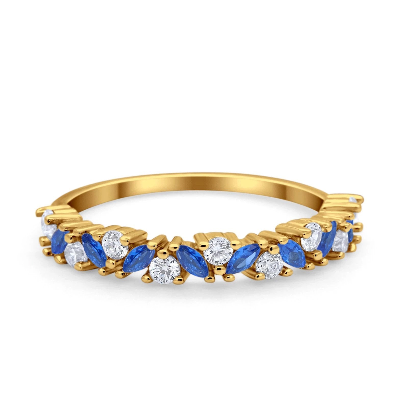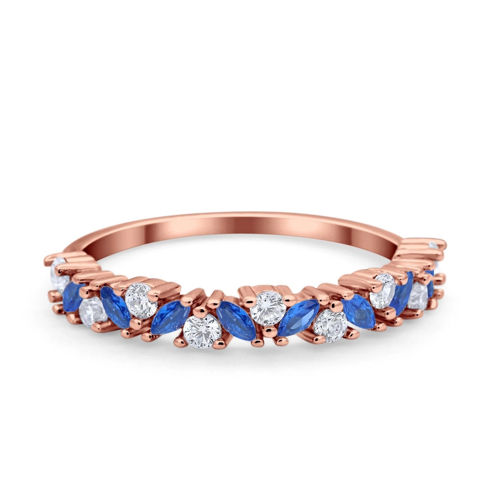 Wedding Band Eternity Ring Marquise Round Simulated Cubic Zirconia 925 Sterling Silver
