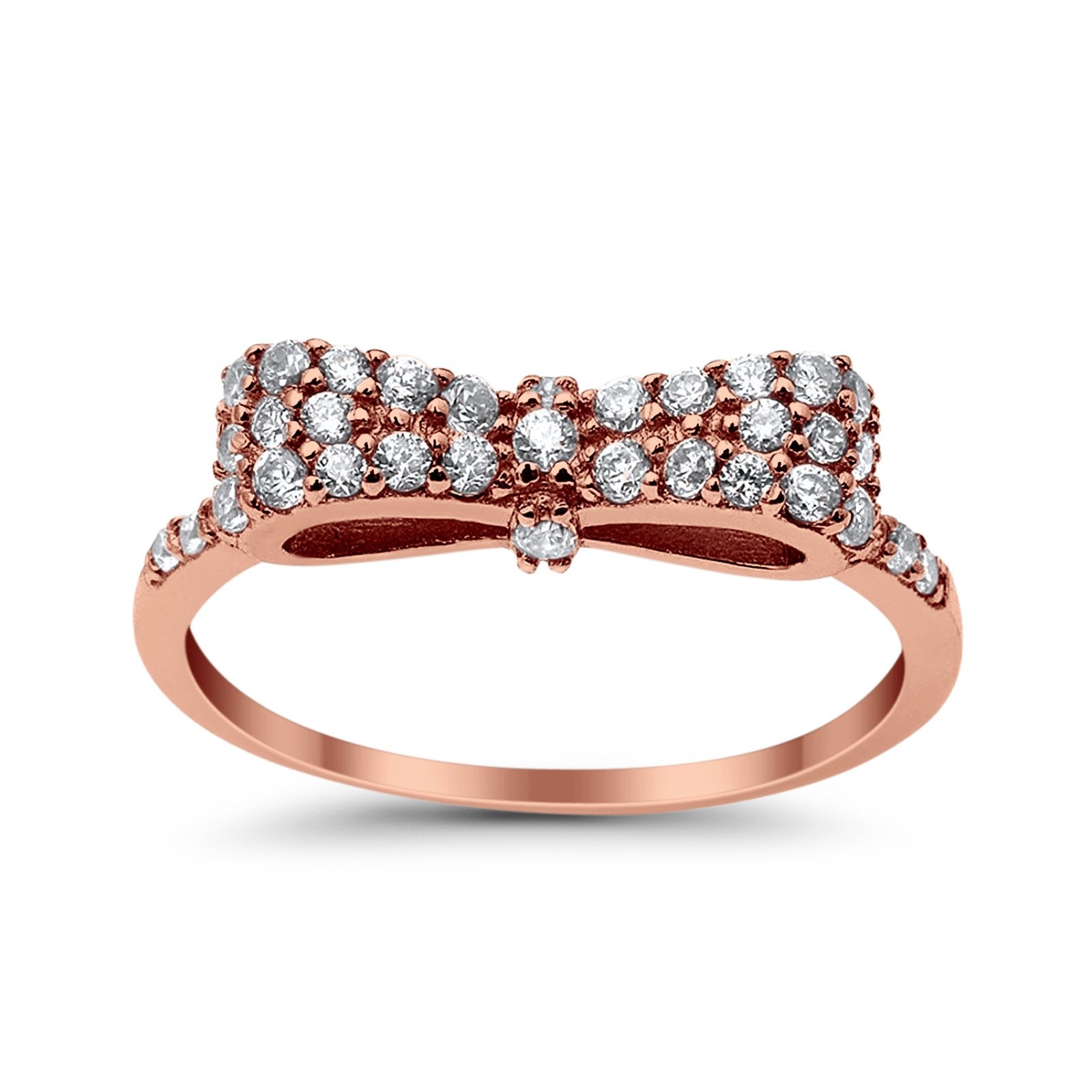 CZ & Blue Sapphire CZ Rose Tone Silver