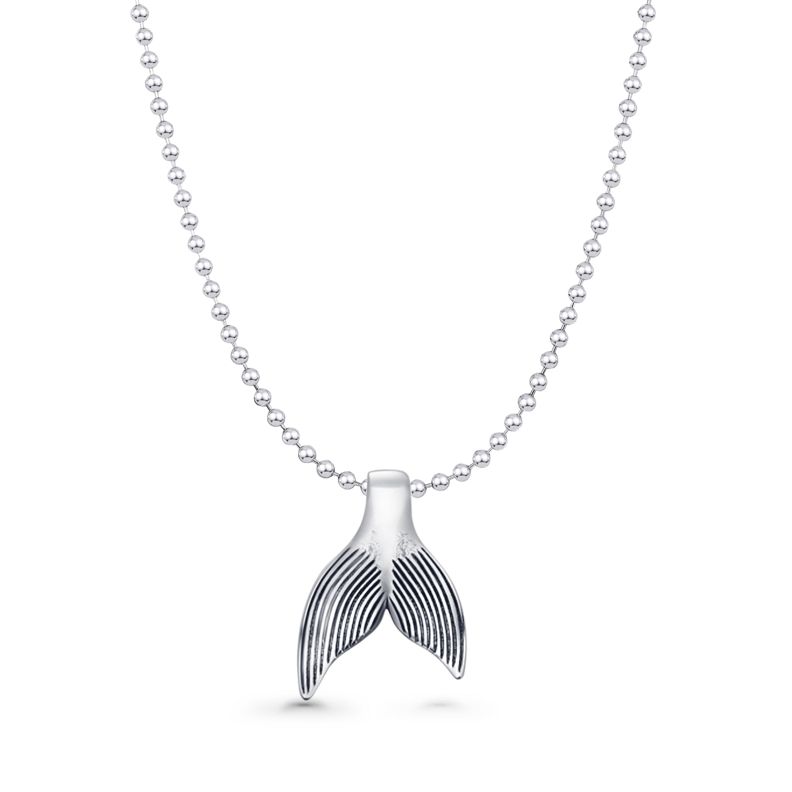 Whale Tail Pendant Bead Chain Necklace Oxidized 925 Sterling Silver