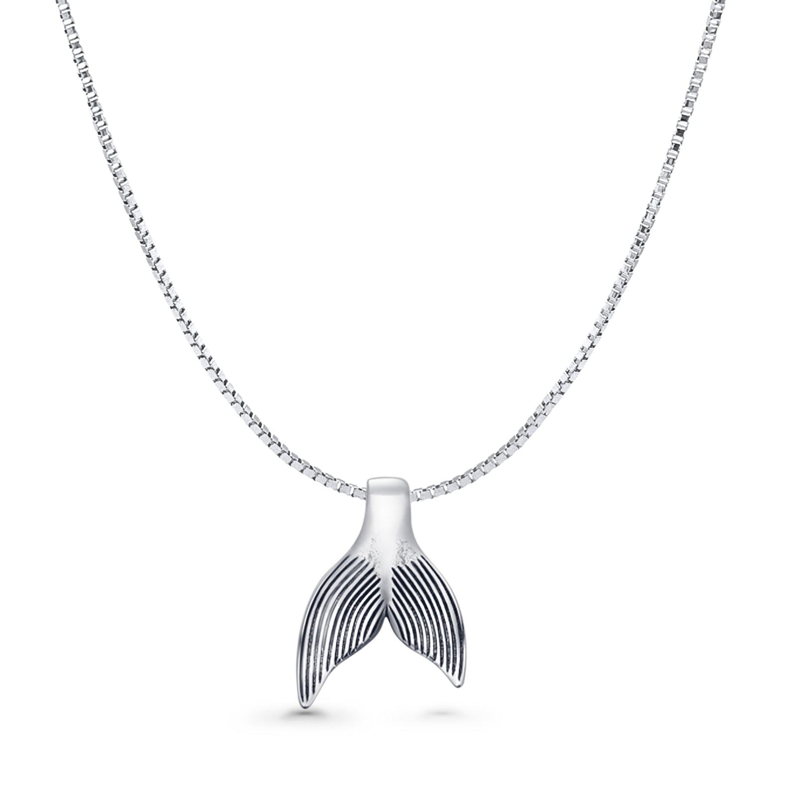 Whale Tail Pendant Box Chain Necklace Oxidized 925 Sterling Silver